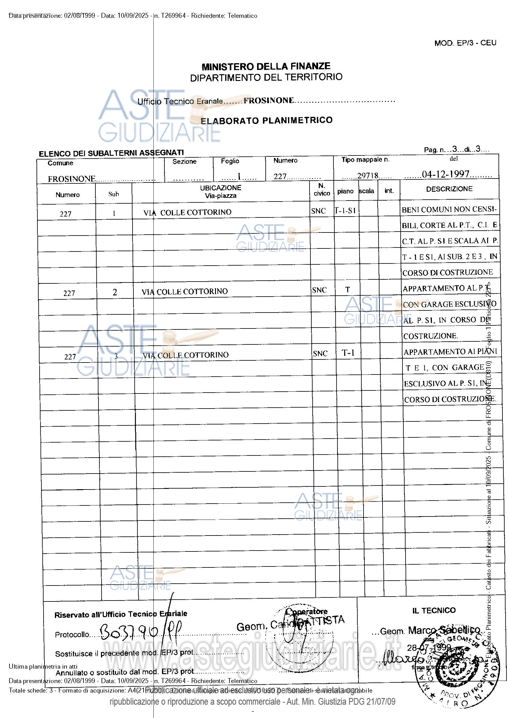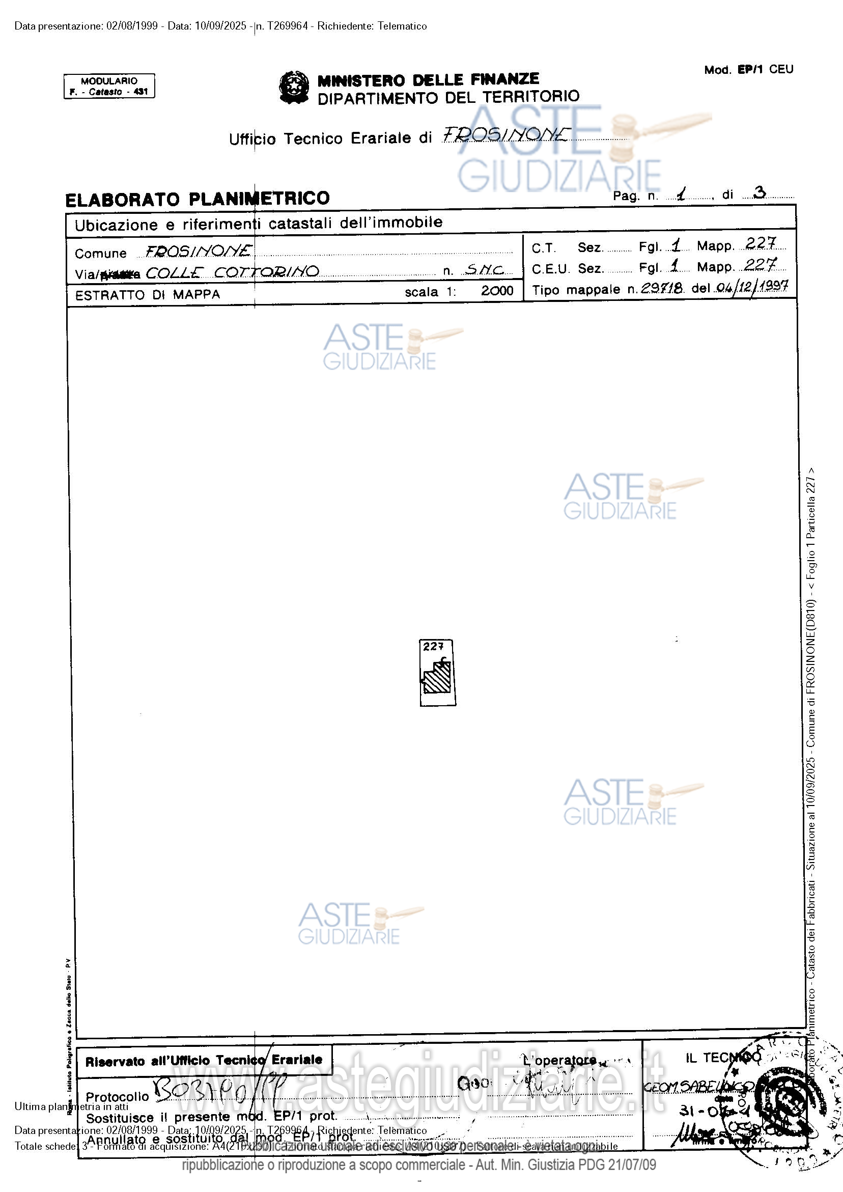 Bene N° 3 - Terreno ubicato a Frosinone (FR) - VIA COLLE COTTORINO , piano T - Identificato al catasto Terreni - Fg. 1, Part. 1316, Qualità Seminativo arborato. Prezzo base € 370.135,00 (offerta minima € 277.601,25). Data inizio operazioni di vendita: 11/06/2026 ore 16:00. Professionista delegato alla vendita Avv. Letizia Casale - Email "letizia.casale@hotmail.it"; Cell. 3494607645; Tel. 3494607645. Custode Giudiziario Avv. Letizia Casale - Email "letizia.casale@hotmail.it"; Cell. 3494607645; Tel. 3494607645. Rif. Tribunale di Frosinone - Esecuzione immobiliare n. 88/2025