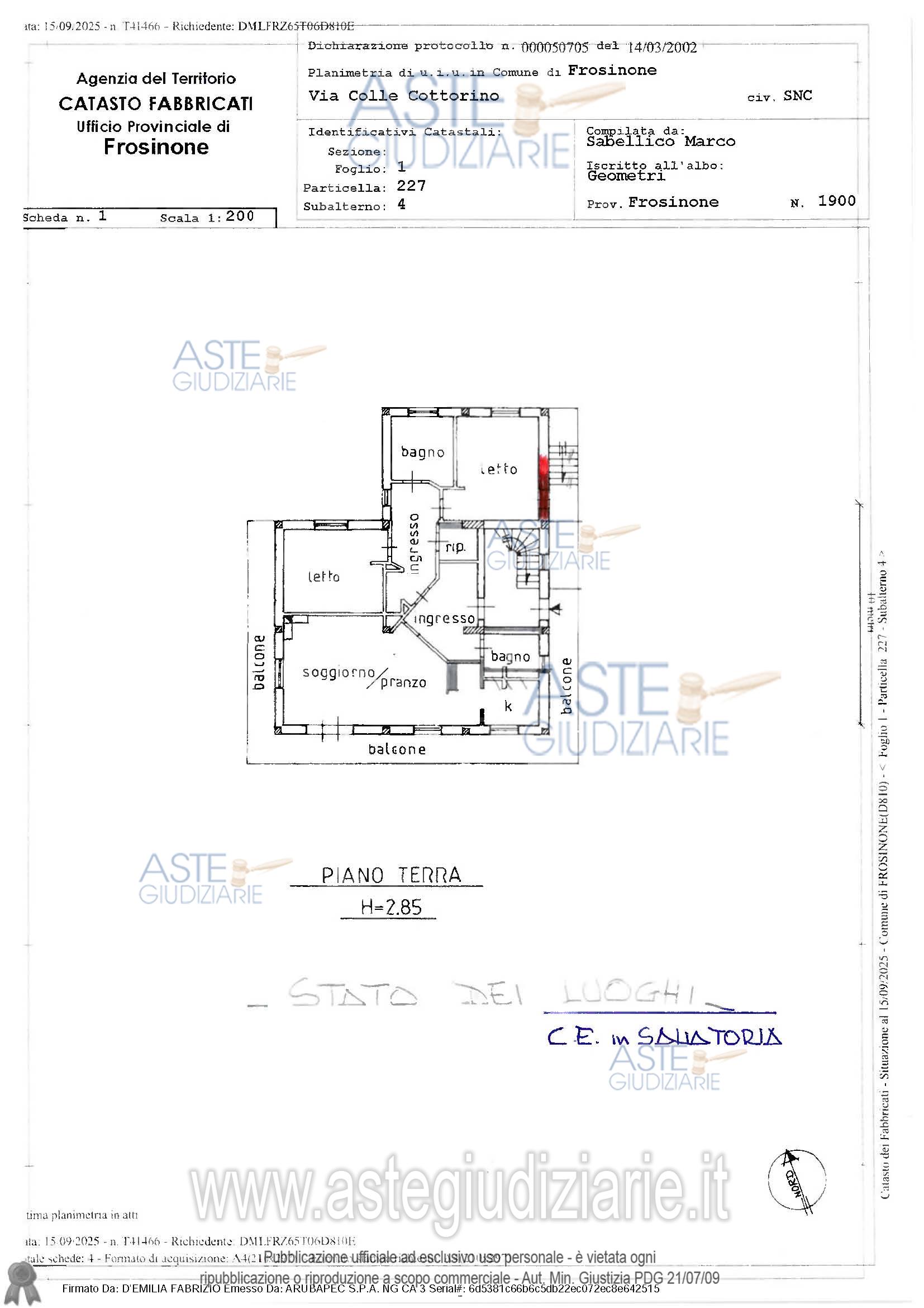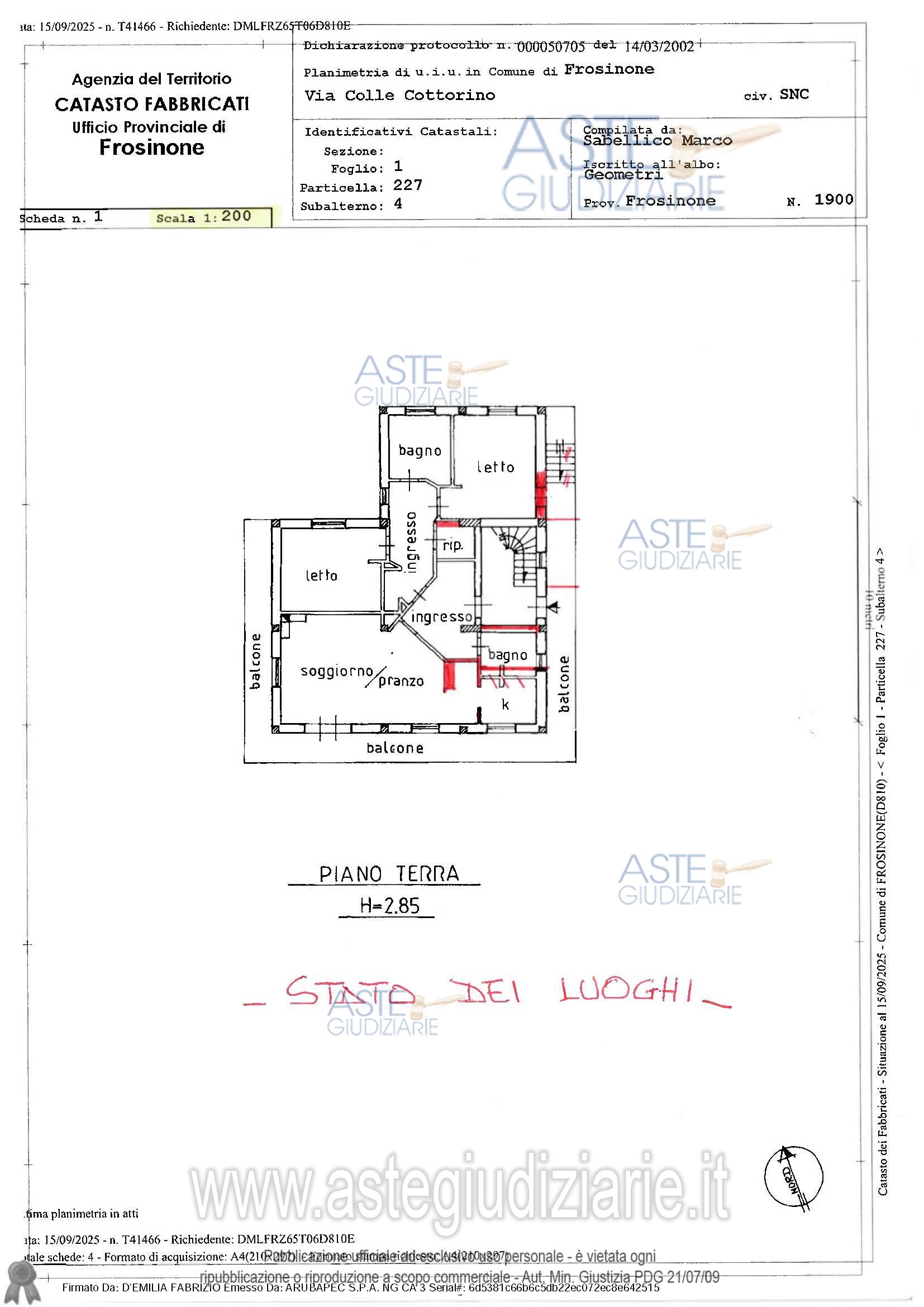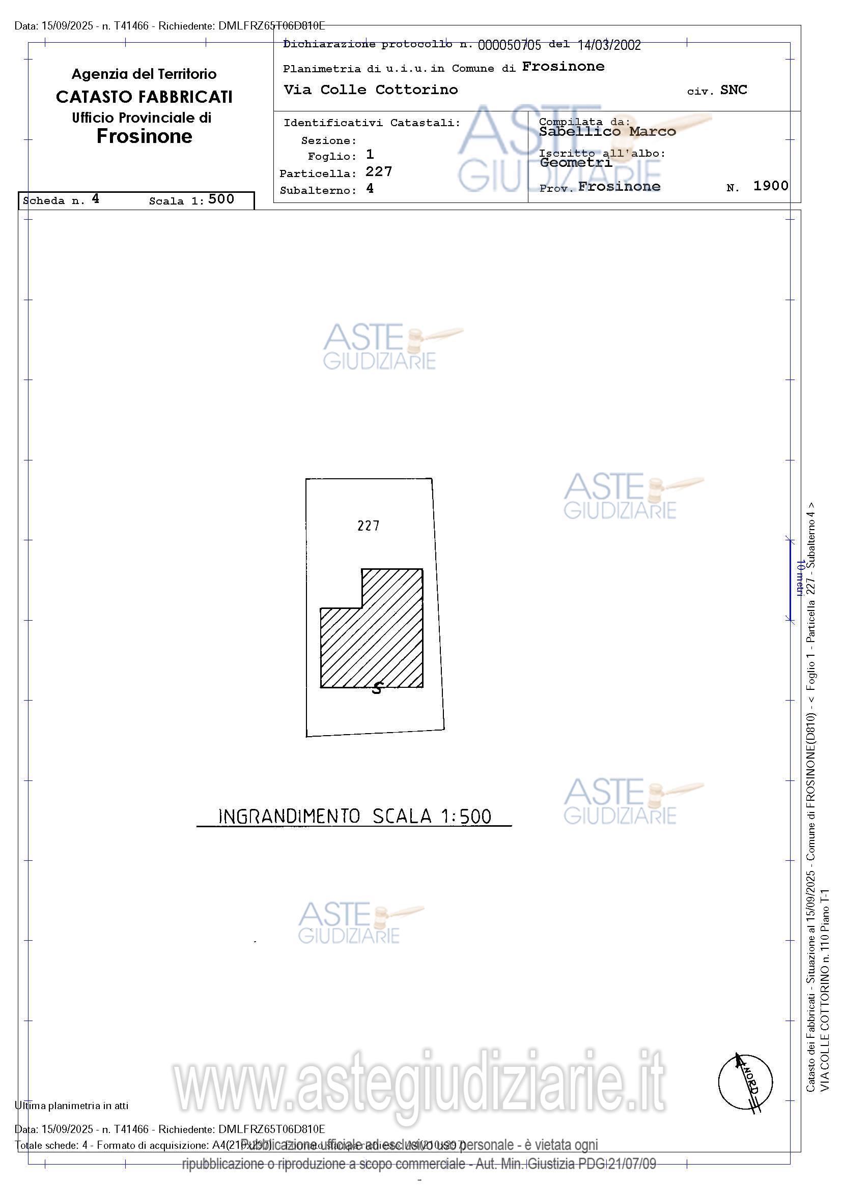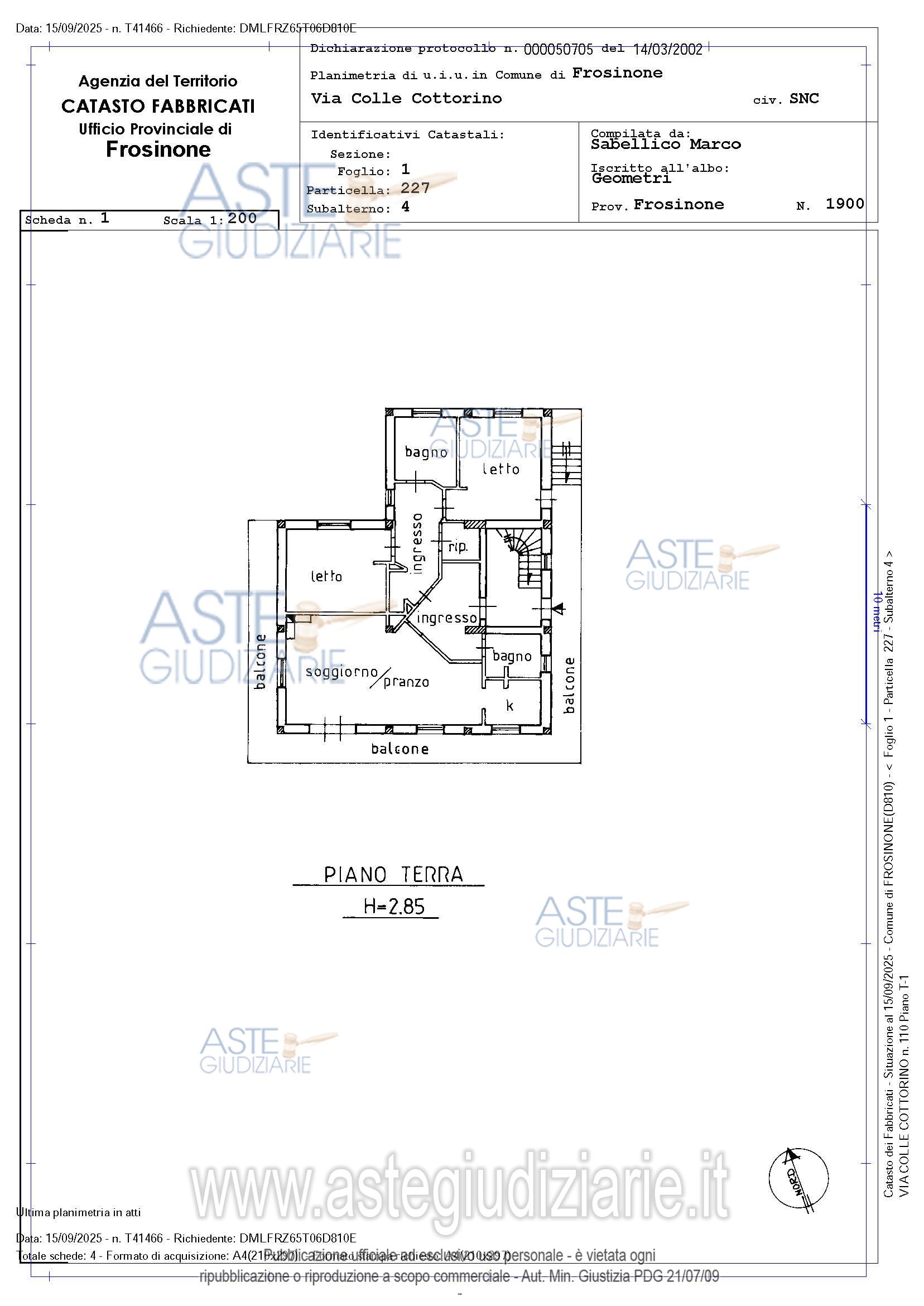 Bene N° 1 - Villetta ubicata a Frosinone (FR) - VIA COLLE COTTORINO N. 110, piano T-1-S1 - Identificato al catasto Fabbricati - Fg. 1, Part. 227, Sub. 4, Zc. 2, Categoria A7