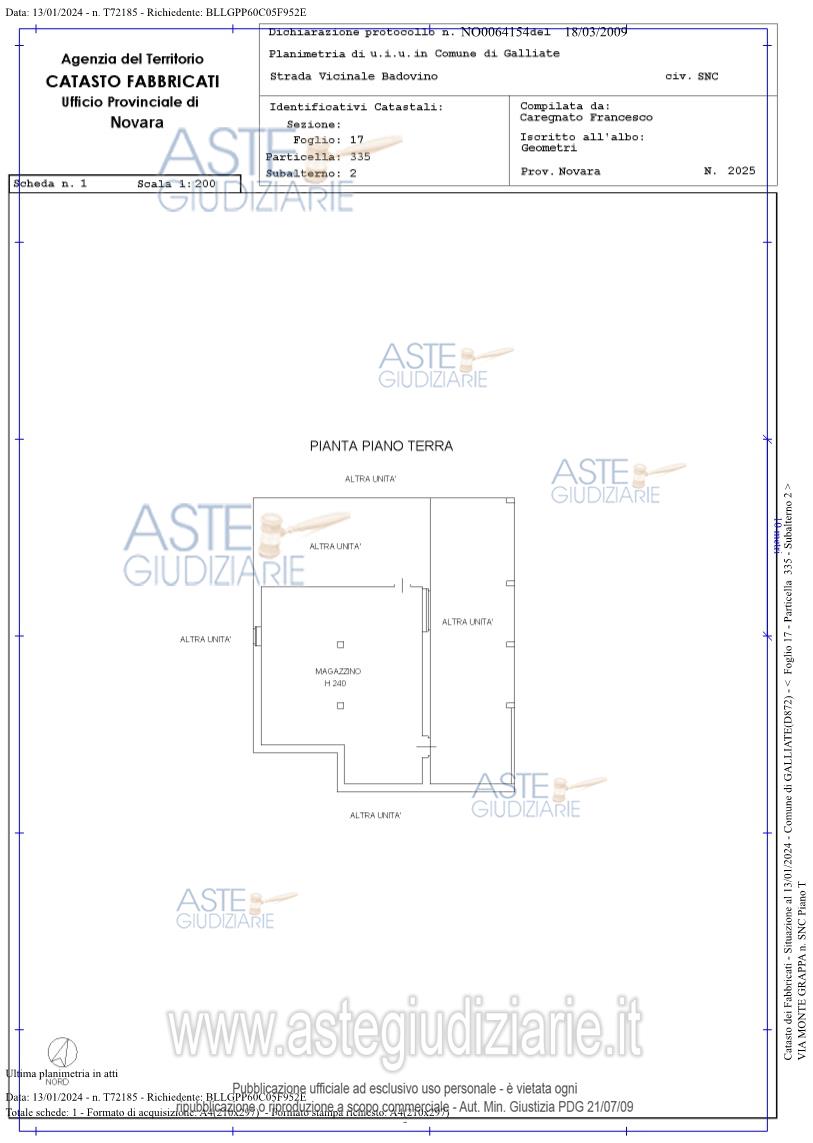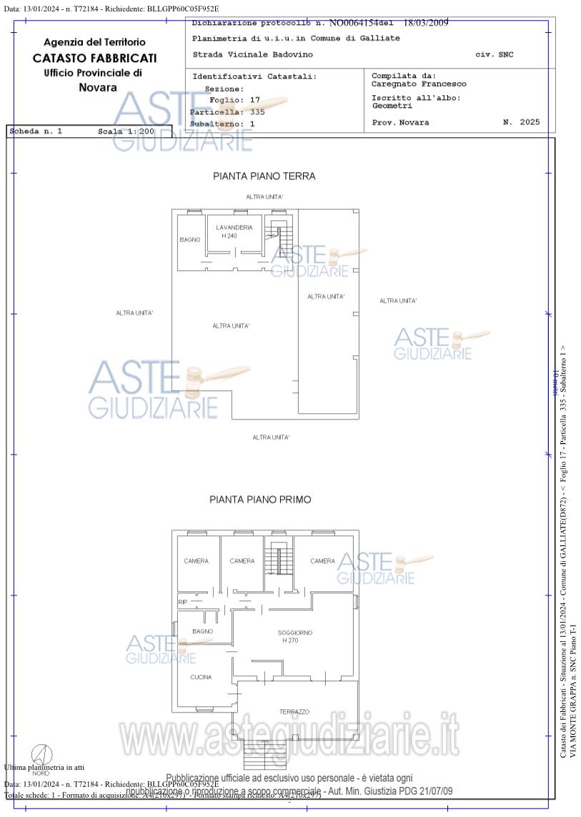 Vendita all'asta Senza incanto, con gara telematica asincrona - LOTTO 1: COMUNE DI GALLIATE (NO) – frazione Regione Badovino - Via Montegrappa 80LOTTO 1Quota intera di piena proprietàa) Villa singola sviluppata ai piani terreno e primo.COMUNE DI GALLIATE (NO) – frazione Regione Badovinob) Terreno agricolo della superficie complessiva di circa mq. 1.535.c) Terreno agricolo della superficie complessiva di circa mq. 335. Prezzo base € 154.000,00 (offerta minima € 115.500,00). Data inizio operazioni di vendita: 20/05/2026 ore 12:00. Professionista delegato alla vendita Not. Ursula Spini - Email "novaraprocedureesecutive@gmail.com"; Tel. 0321640095. Custode Giudiziario Ifir Piemonte Ivg - Email "richiestevisite.novara@ivgpiemonte.it"; Tel. 0321628676. Rif. Tribunale di Novara - Espropriazione immobiliare (cartabia) n. 138/2023