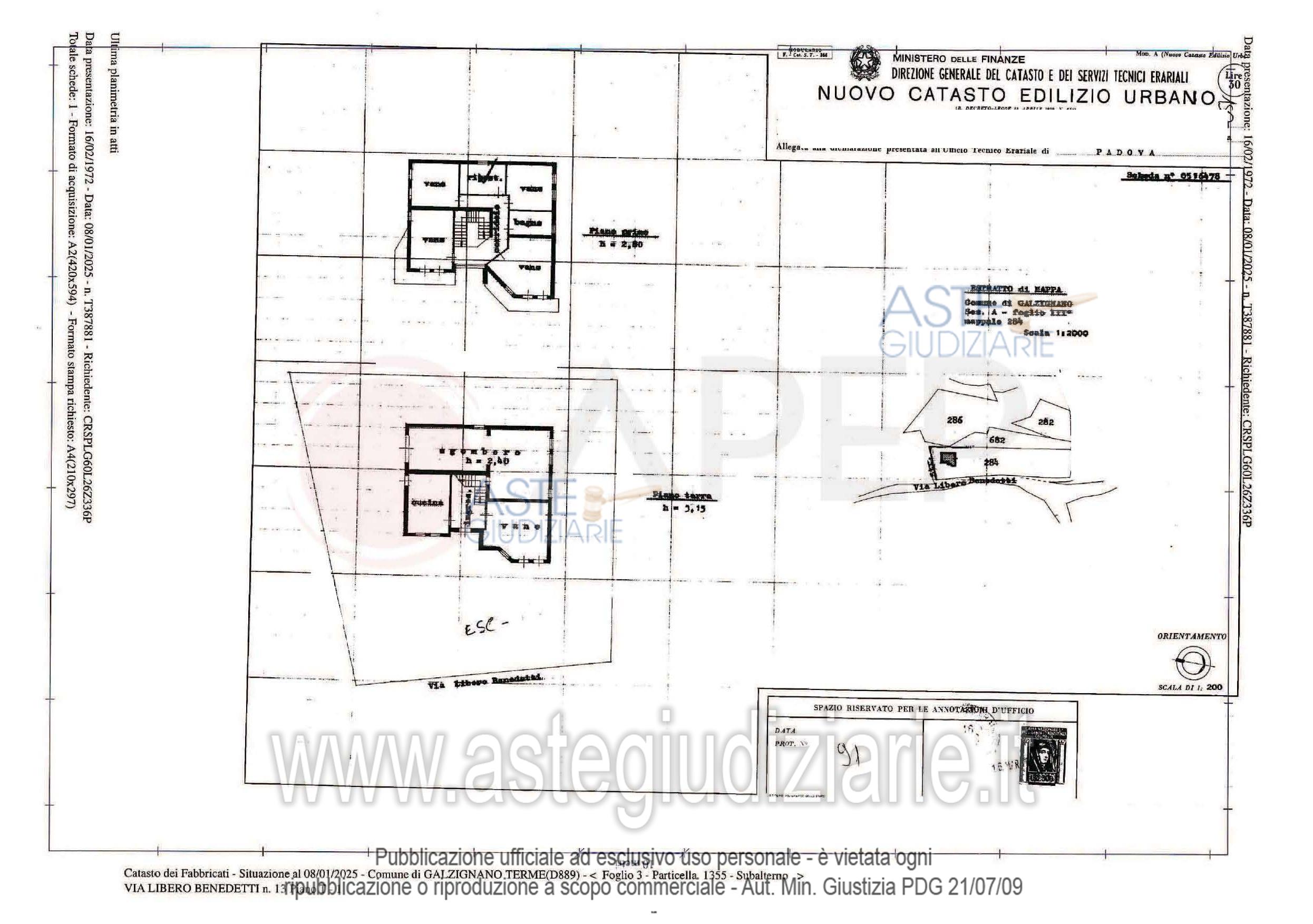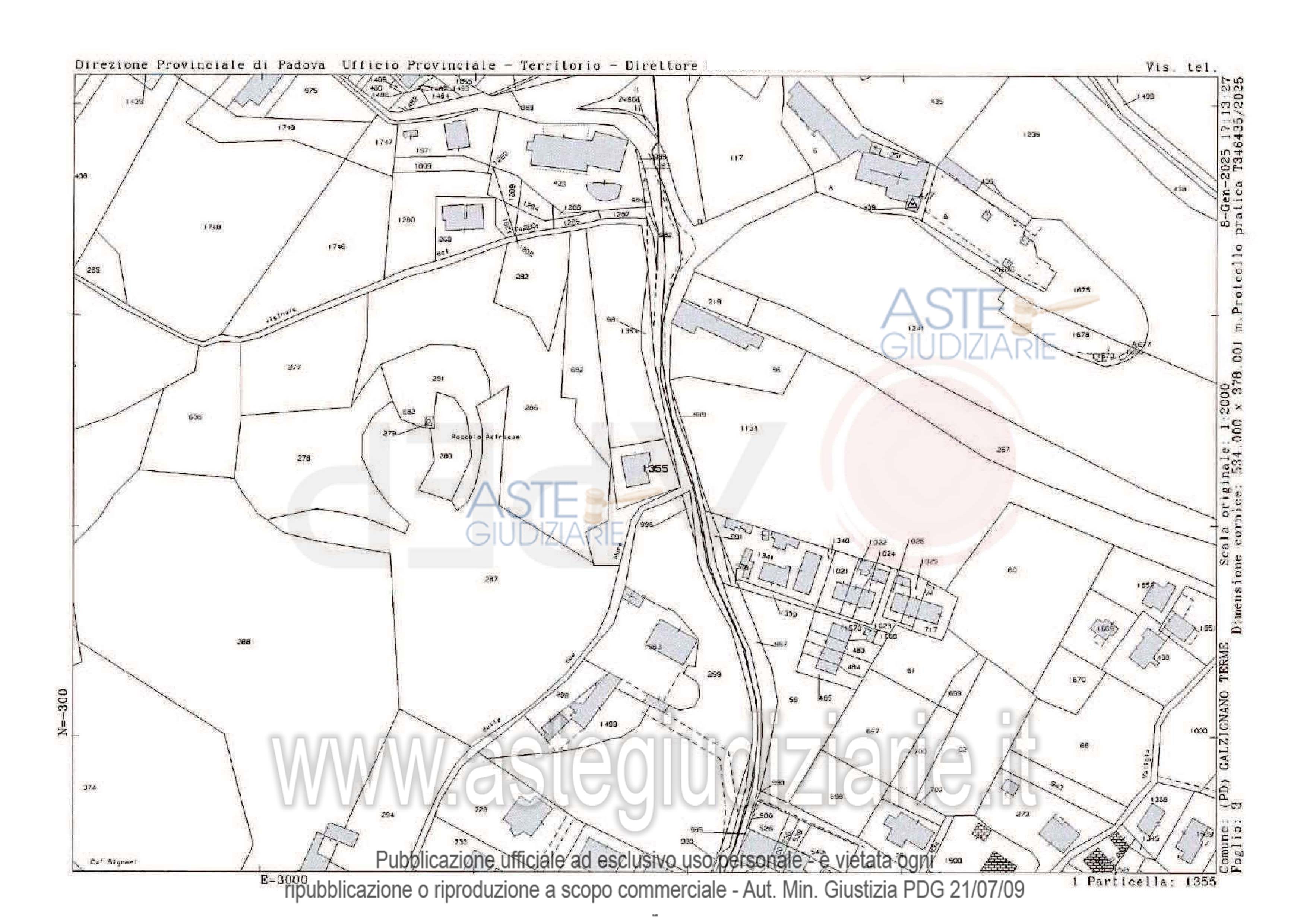 Vendita all'asta Senza incanto, con gara telematica sincrona - LOTTO 3: Lotto 3 (già Lotto 2/C) - piena proprietà di villa singola di due piani fuori terra di commerciali mq. 302 ca. con scoperto esclusivo di commerciali mq. 598 ca. ed adiacente terreno di proprietà, coltivato ad ulivi di catastali mq. 2.429, il tutto sito in Comune di Galzignano Terme (PD), via L. Benedetti n. 27; quota di 3/5 (tre quinti) (quota pignorata) di piena proprietà dell'adiacente area, destinata a strada pubblica. Libero. Prezzo base € 288.000,00 (offerta minima € 216.000,00). Data vendita 28/04/2026 ore 10:00. Giudice Amenduni. Professionista delegato alla vendita Not. Elena Bressan - Email "aste@apepnotai.it"; Tel. 049651228. Custode Giudiziario Apep - Email "visita@apepnotai.it"; Tel. 049651228. Rif. Tribunale di Padova - Esecuzione immobiliare post legge 80 n. 563/2007