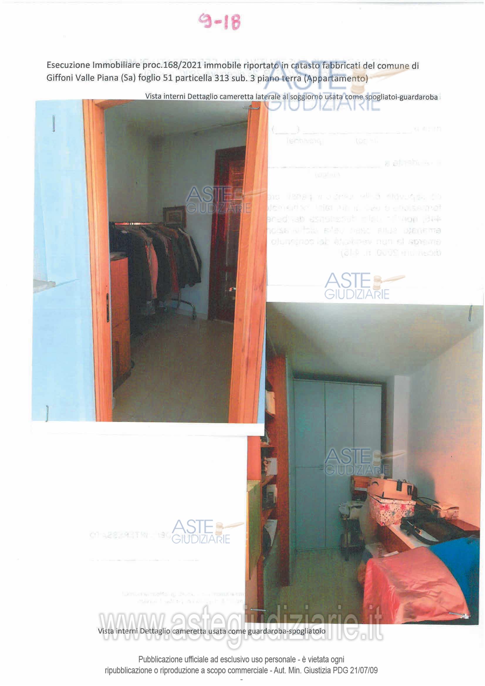 Vendita all'asta Senza incanto, con gara telematica asincrona - LOTTO 1: Piena proprietà di appartamento posto al piano terra con due balconi ed una zona porticata annessa. Prezzo base € 67.210,50 (offerta minima € 50.407,87). Data inizio operazioni di vendita: 11/11/2025 ore 17:00. Professionista delegato alla vendita Dott. Manuela Mascia - Email "mascia.manuela@tiscali.it"; Cell. 3382478045; Tel. 089233366. Custode Giudiziario Dott. Manuela Mascia - Email "mascia.manuela@tiscali.it"; Cell. 3382478045; Tel. 089233366. Rif. Tribunale di Salerno - Esecuzione immobiliare post legge 80 n. 168/2021