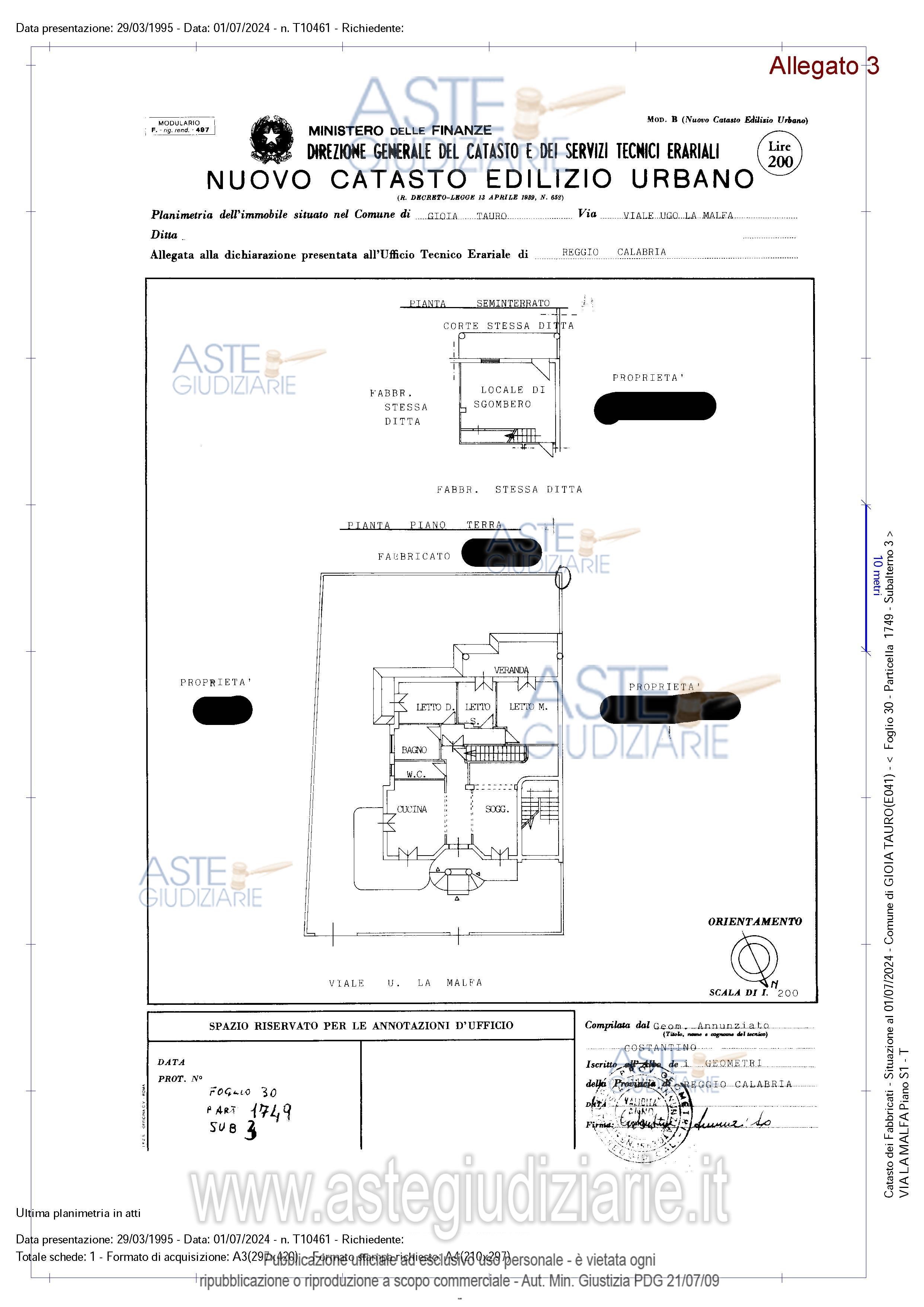 Vendita all'asta Senza incanto, con gara telematica asincrona - LOTTO 1: Diritto di piena ed intera proprietà di una abitazione composta da un piano seminterrato e un piano terra, porzione di un fabbricato più grande non compreso nel pignoramento. Prezzo base € 80.512,00 (offerta minima € 60.384,00). Data inizio operazioni di vendita: 16/06/2026 ore 16:30. Giudice Dott. Marta Caineri. Professionista delegato alla vendita Dott. Angela Speranza - Email "dott_angelasperanza@libero.it"; Cell. 3395731808; Tel. 0966614976. Custode Giudiziario Dott. Angela Speranza - Email "dott_angelasperanza@libero.it"; Cell. 3395731808; Tel. 0966614976. Rif. Tribunale di Palmi - Espropriazione immobiliare (cartabia) n. 73/2023