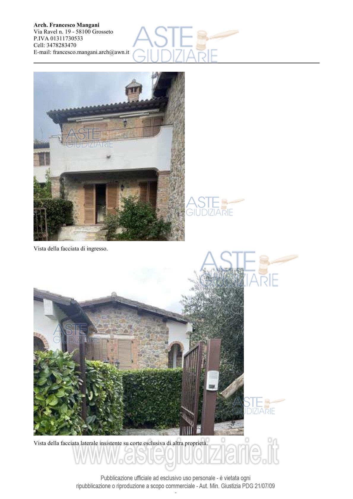 Vendita all'asta Senza incanto, con gara telematica asincrona - LOTTO 2: appartamento indipendente, rapportabile alla tipologia villino, sito in Manciano, Fraz. Poggio Capanne, Loc Ferro di Cavallo –, composto da soggiorno con angolo cottura, due disimpegni, due camere da letto, due bagni, corte esclusiva per complessivi mq. 96,00. Prezzo base € 148.000,00 (offerta minima € 111.000,00). Data inizio operazioni di vendita: 13/05/2026 ore 10:30. Professionista delegato alla vendita Avv. Yuri Forgione. Custode Giudiziario Lucia Ghelli - Email "ivggrosseto@astagiudiziaria.com"; Cell. 3426598791. Rif. Tribunale di Grosseto - Espropriazione immobiliare (cartabia) n. 142/2024