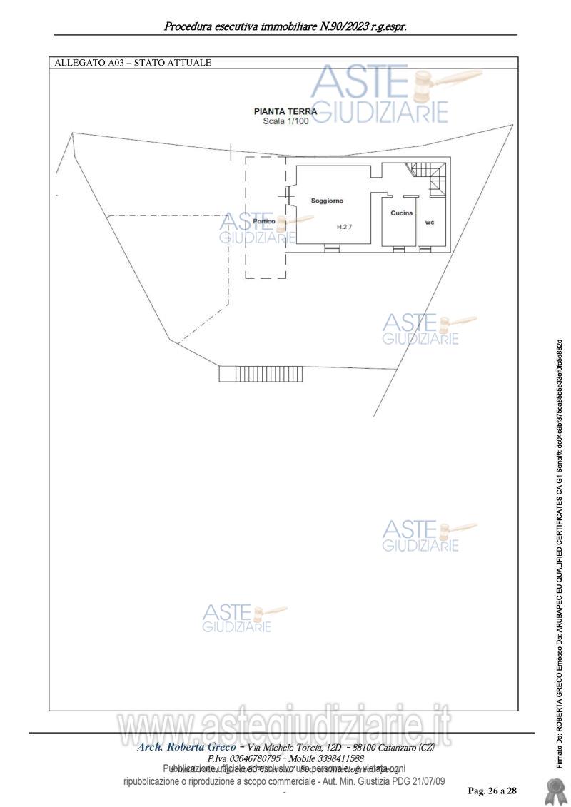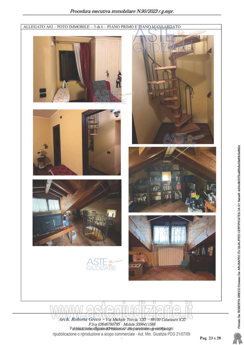 Vendita all'asta Senza incanto, con gara telematica asincrona - LOTTO Unico: Villetta con terreno disposta su due livelli, al piano terra, in cui si sviluppa la zona living è presente ingresso – soggiorno, cucina abitabile e bagno, al piano primo, al quale si accede tramite una scala interna e dove si sviluppa la zona notte composta da due camere da letto, cabina armadio e bagno, al piano mansardato vi si accede tramite una scala a chiocciola e si trova una zona studio. L’area esterna al fabbricato, ha una consistenza di circa 1.880 m2. Consultare avviso di vendita. Prezzo base € 116.100,00 (offerta minima € 88.000,00). Data inizio operazioni di vendita: 24/03/2026 ore 14:00. Giudice Dott. Elais Mellace. Professionista delegato alla vendita Avv. Rosanna Amendola. Custode Giudiziario Avv. Rosanna Amendola - Email "rosanna.amendola@libero.it"; Cell. 3486816488; Tel. 0961050237. Rif. Tribunale di Catanzaro - Esecuzione immobiliare n. 90/2023