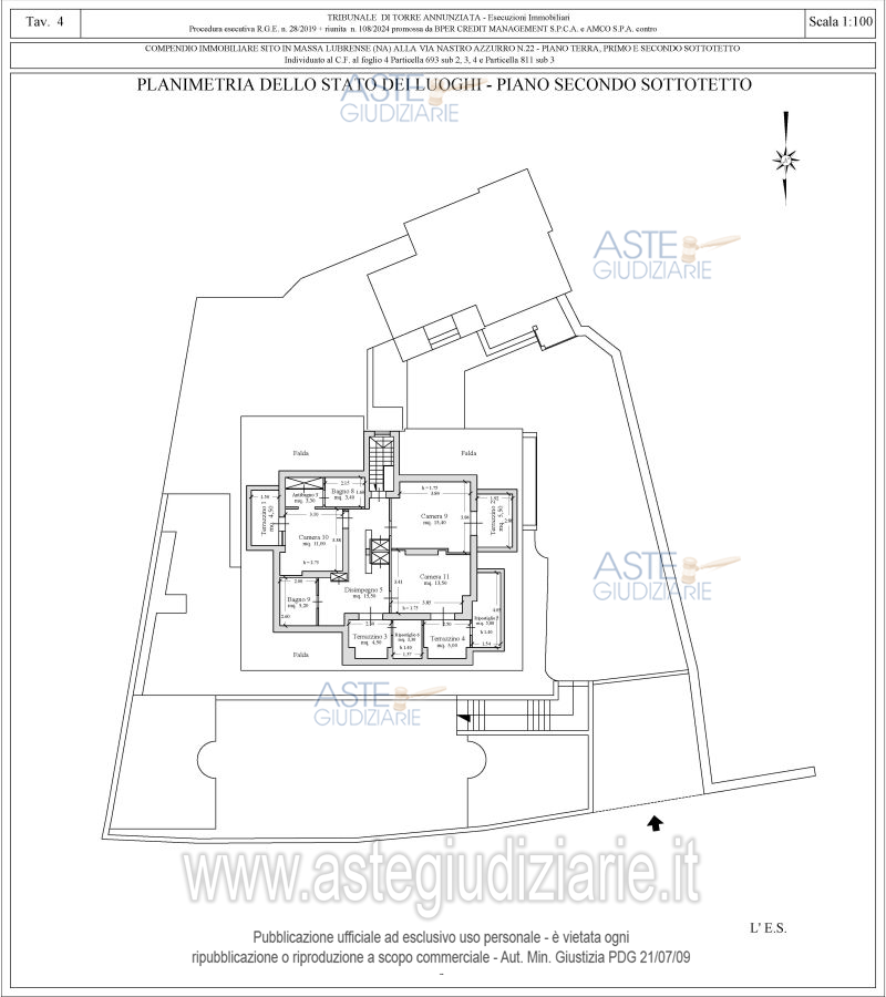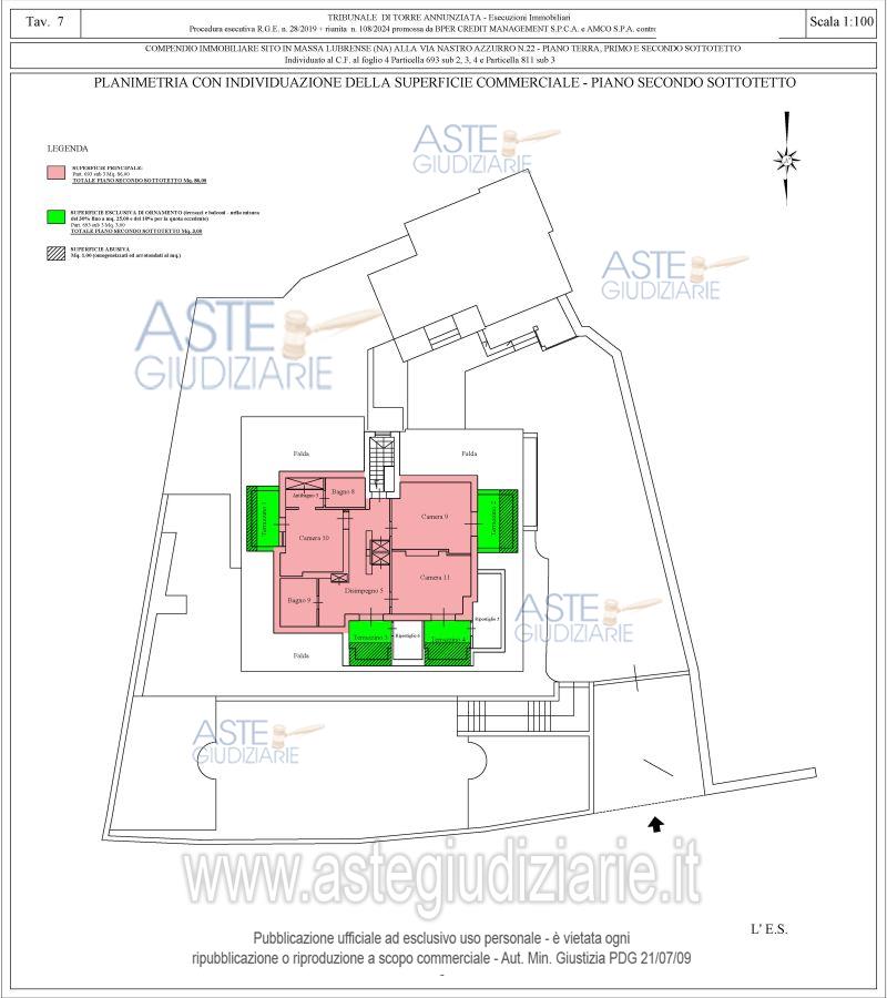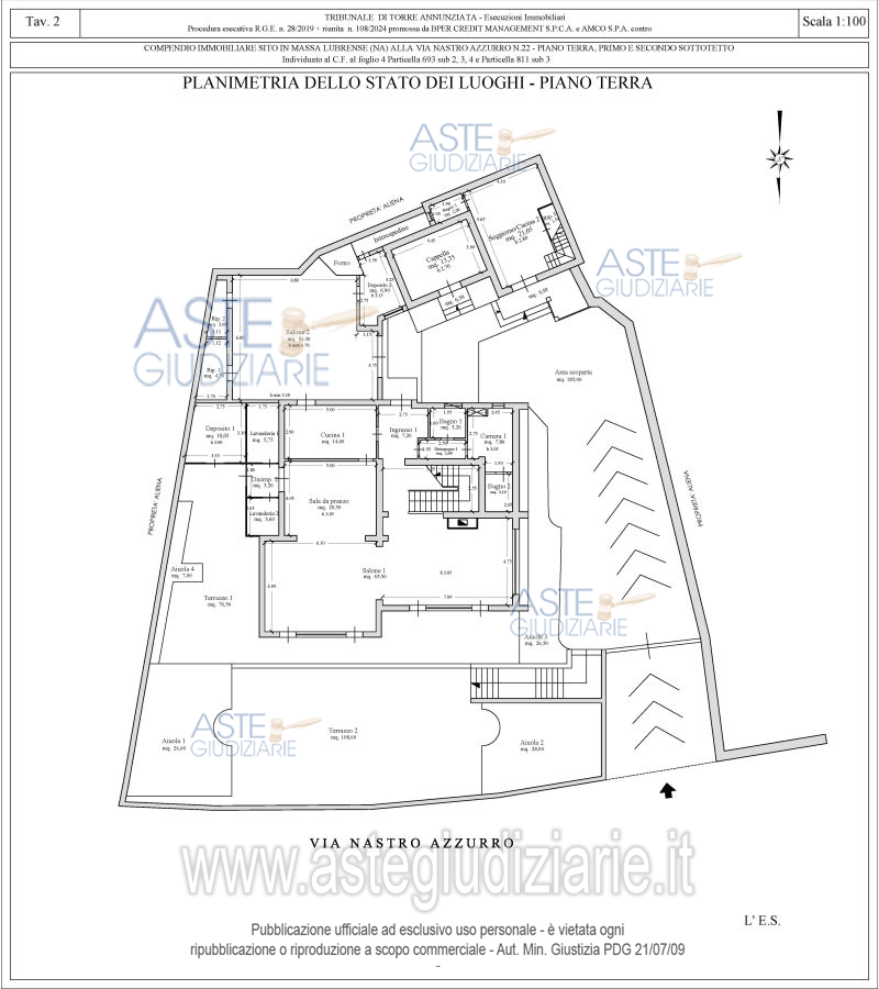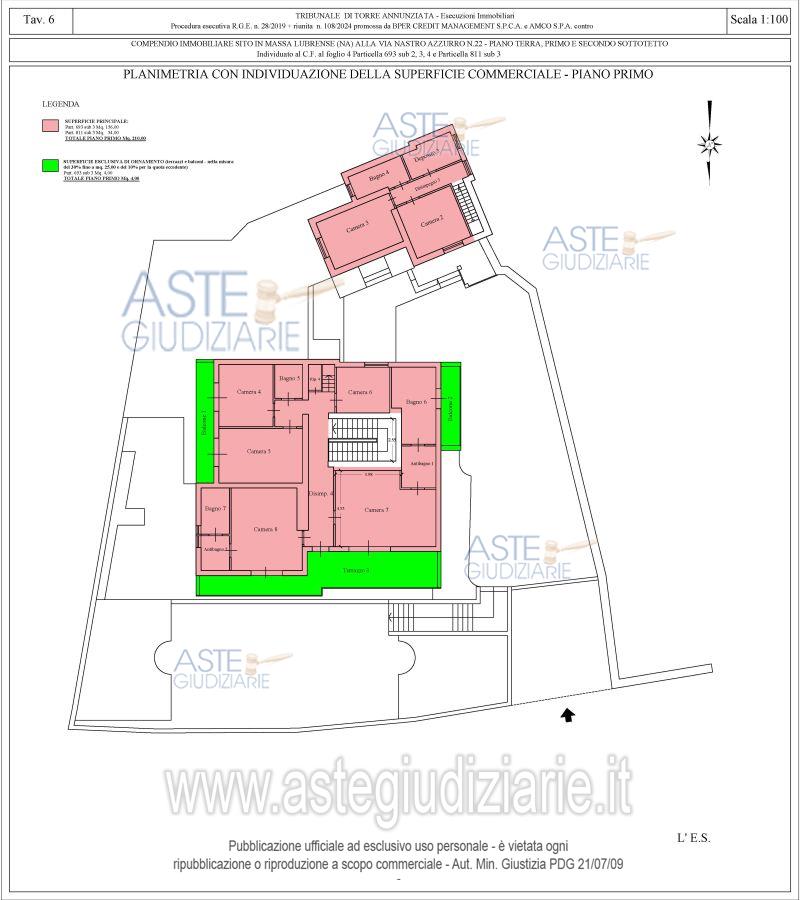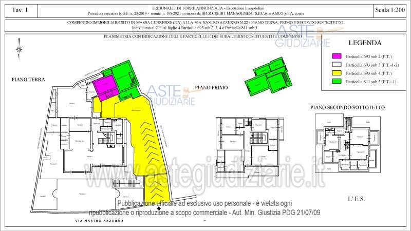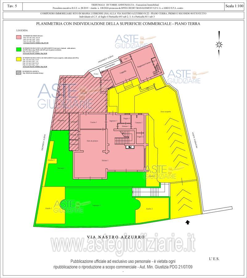 Vendita all'asta Senza incanto, con gara telematica asincrona - LOTTO UNICO: Piena ed esclusiva proprietà di compendio immobiliare composto da: A) corpo di fabbrica principale (particella 693 sub 3), sviluppantesi su tre livelli, ossia piano terra, piano primo e piano secondo sottotetto;B) corpo di fabbrica secondario (particella 693 sub 2 e particella 811 sub 3), sviluppantesi su due livelli, ossia piano terra e piano primo; C) area esterna (particella 693 sub 4). Al compendio si accede dalla via Nastro Azzurro, al civico n.22, tramite cancello automatico pedonale e carrabile. Prezzo base € 1.387.500,00 (offerta minima € 1.040.625,00). Data inizio operazioni di vendita: 20/05/2026 ore 13:00. Giudice Anita Carughi. Professionista delegato alla vendita Avv. Rosalba Micera - Email "rosamice@libero.it"; Cell. 3492928841. Custode Giudiziario Avv. Rosalba Micera - Email "rosamice@libero.it"; Cell. 3492928841. Rif. Tribunale di Torre Annunziata - Esecuzione immobiliare post legge 80 n. 28/2019