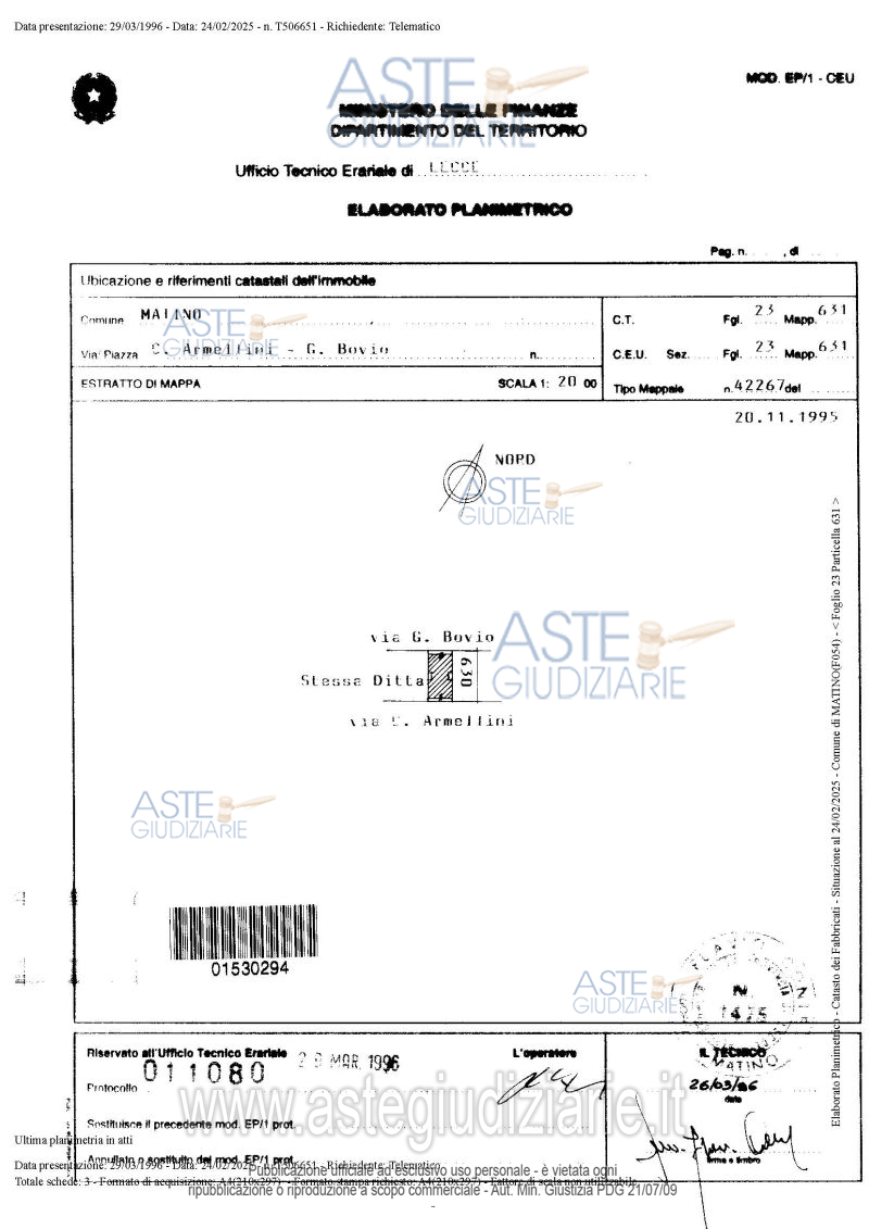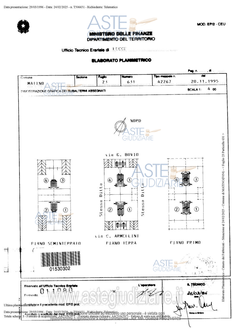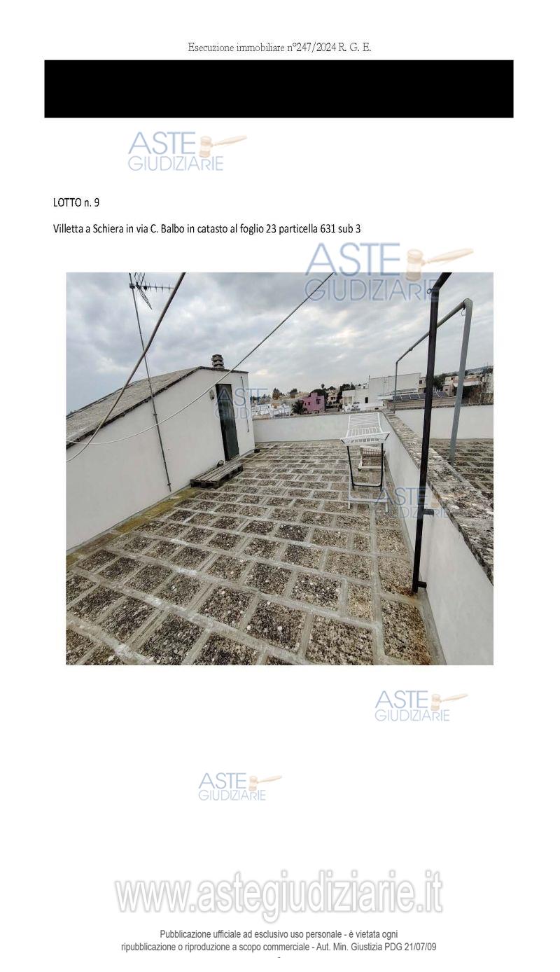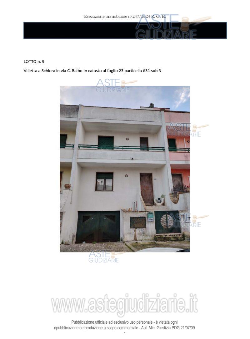 Vendita all'asta Senza incanto, con gara telematica asincrona - LOTTO 9: Villetta a schiera sita a MATINO VIA CESARE BALBO 29, della superficie commerciale di 156,61 mq per la quota di 1/1 di piena proprietà. Prezzo base € 55.875,00 (offerta minima € 41.906,25). Data inizio operazioni di vendita: 06/05/2026 ore 12:00. Giudice Dott. Anna Francesca Capone. Professionista delegato alla vendita Avv. Gabriele Toma - Tel. 3493932555 - 3928274. Custode Giudiziario Avv. Gabriele Toma - Tel. 3493932555 - 3928274. Rif. Tribunale di Lecce - Esecuzione immobiliare n. 247/2024