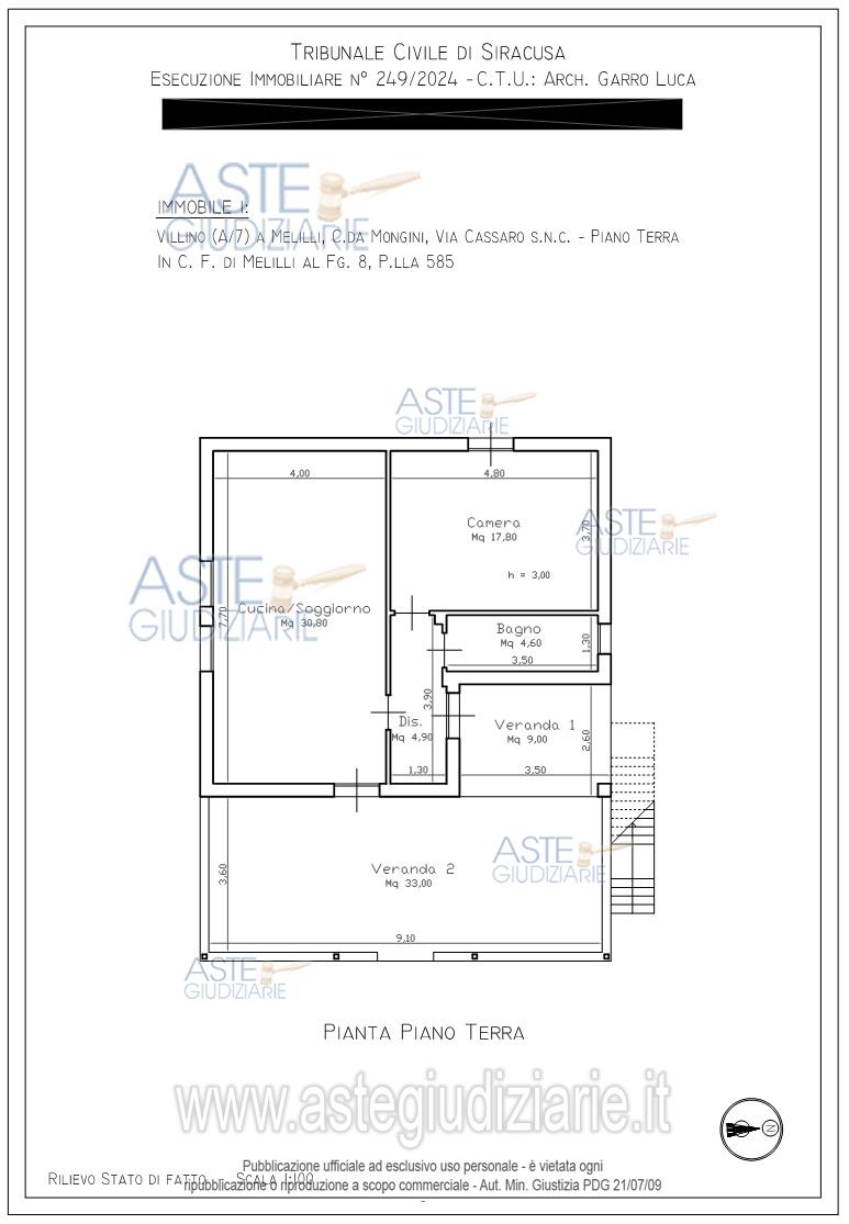 Vendita all'asta Senza incanto, con gara telematica sincrona mista - LOTTO 1: Piena proprietà del fabbricato sito nel Comune di Melilli (SR), c.da Mungina, Via Cassaro snc, posto a piano terra, composto da due vani e accessori, con annesso terreno di pertinenza esteso nell’intero metri quadrati 1.773 circa. Nel Catasto Fabbricati di detto Comune al Foglio 8, p.lla 585, cat. A/7, classe 1, vani 3, superficie mq 73, escluse aree scoperte mq 70, R.C. € 348,61. Per ogni più specifica descrizione si rinvia all'avviso di vendita ed alla perizia di stima. Prezzo base € 21.375,00 (offerta minima € 16.031,25). Data vendita 16/06/2026 ore 12:00. Professionista delegato alla vendita Avv. Guido Di Franco Gambuzza - Email "g.difrancogambuzza@gmail.com"; Cell. 3207542319; Tel. 09311851525. Custode Giudiziario Avv. Guido Di Franco Gambuzza - Email "g.difrancogambuzza@gmail.com"; Cell. 3207542319; Tel. 09311851525. Rif. Tribunale di Siracusa - Esecuzione immobiliare post legge 80 n. 249/2024