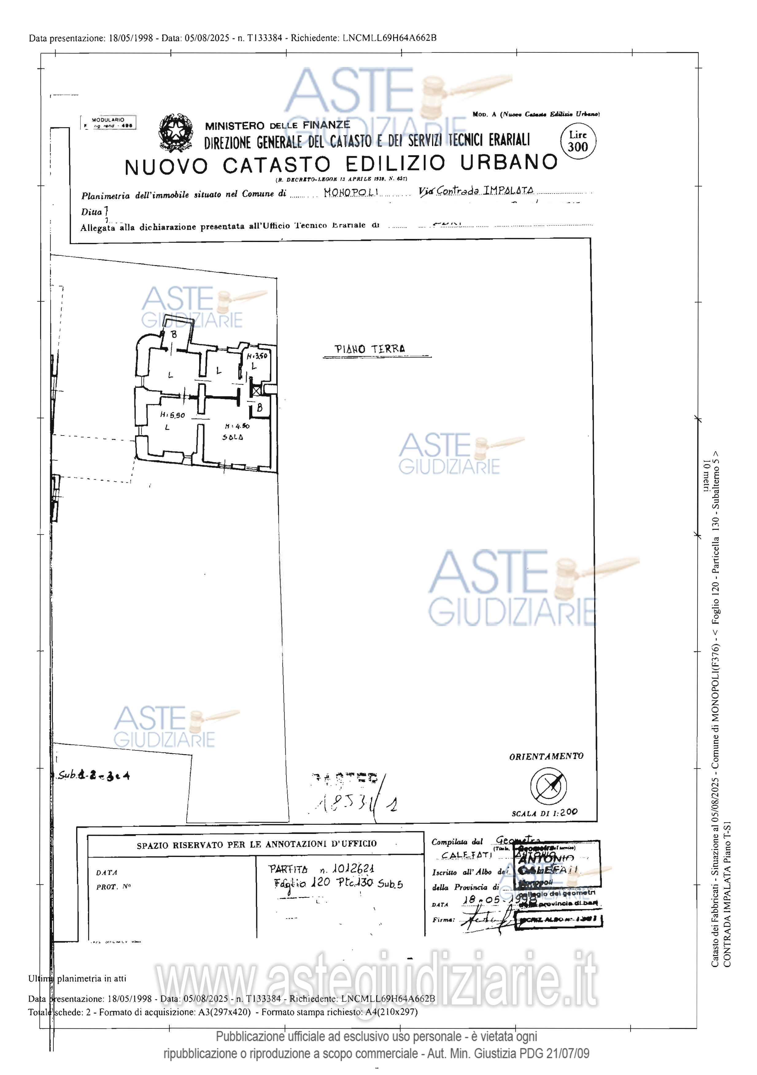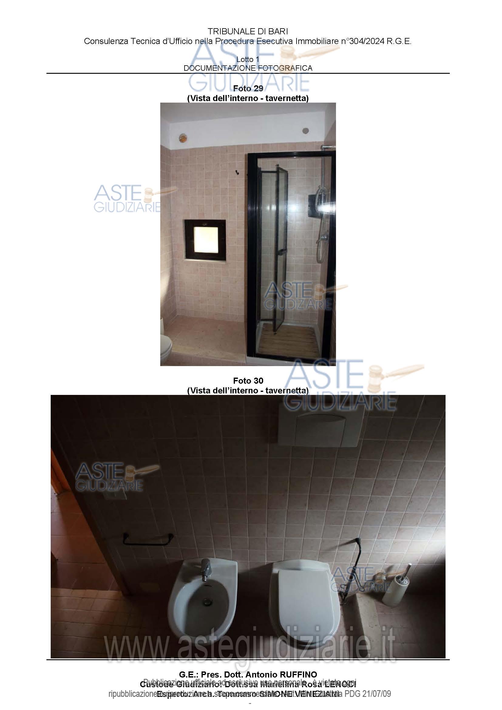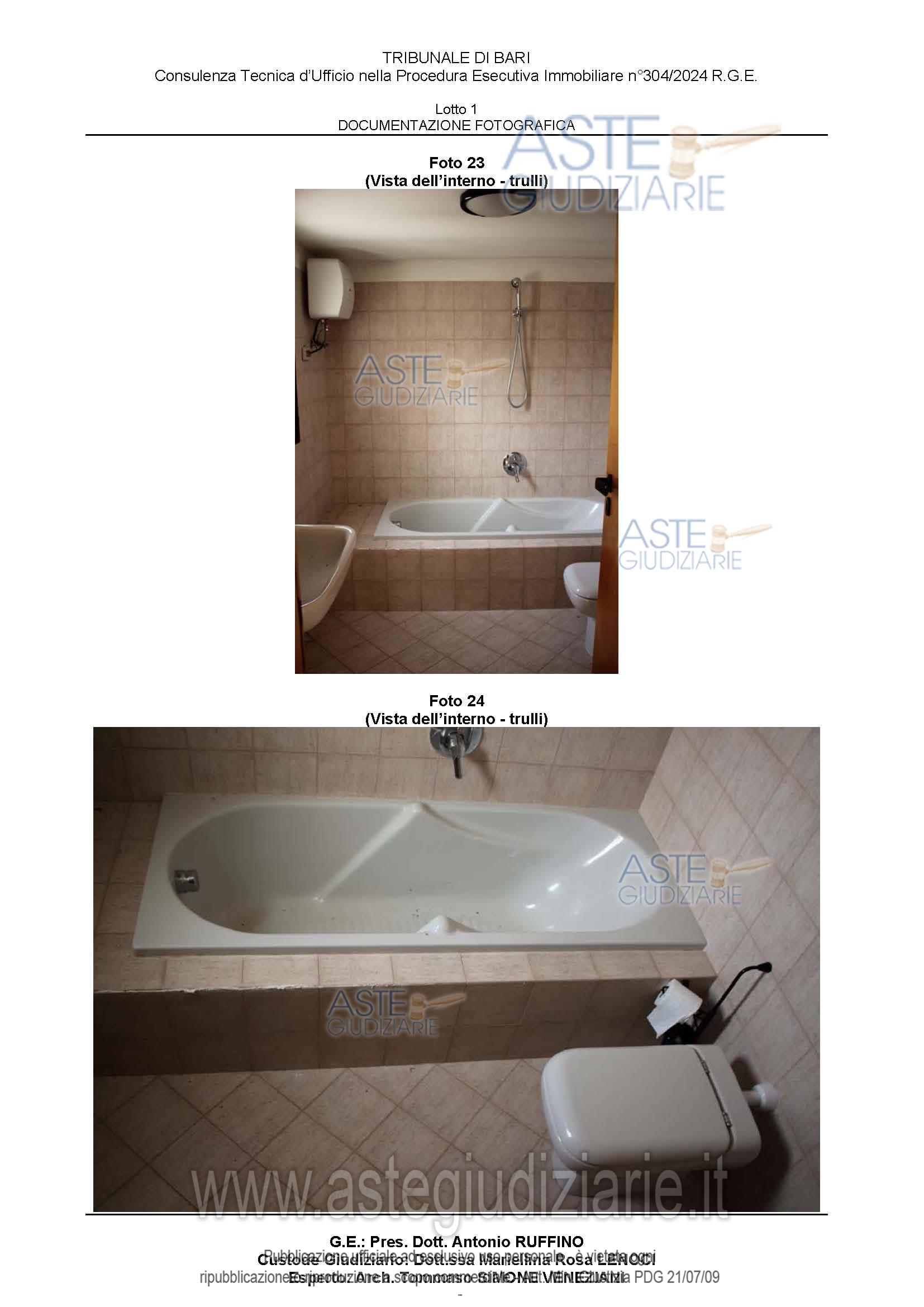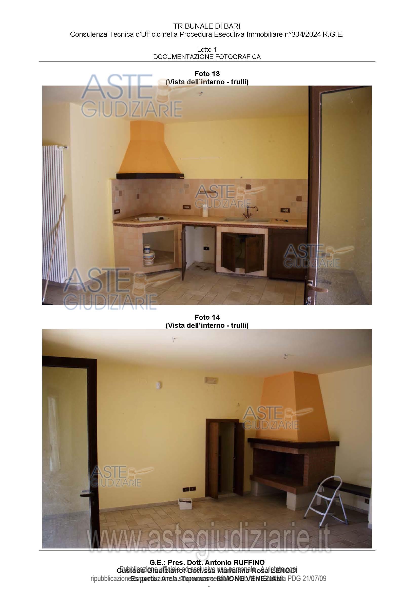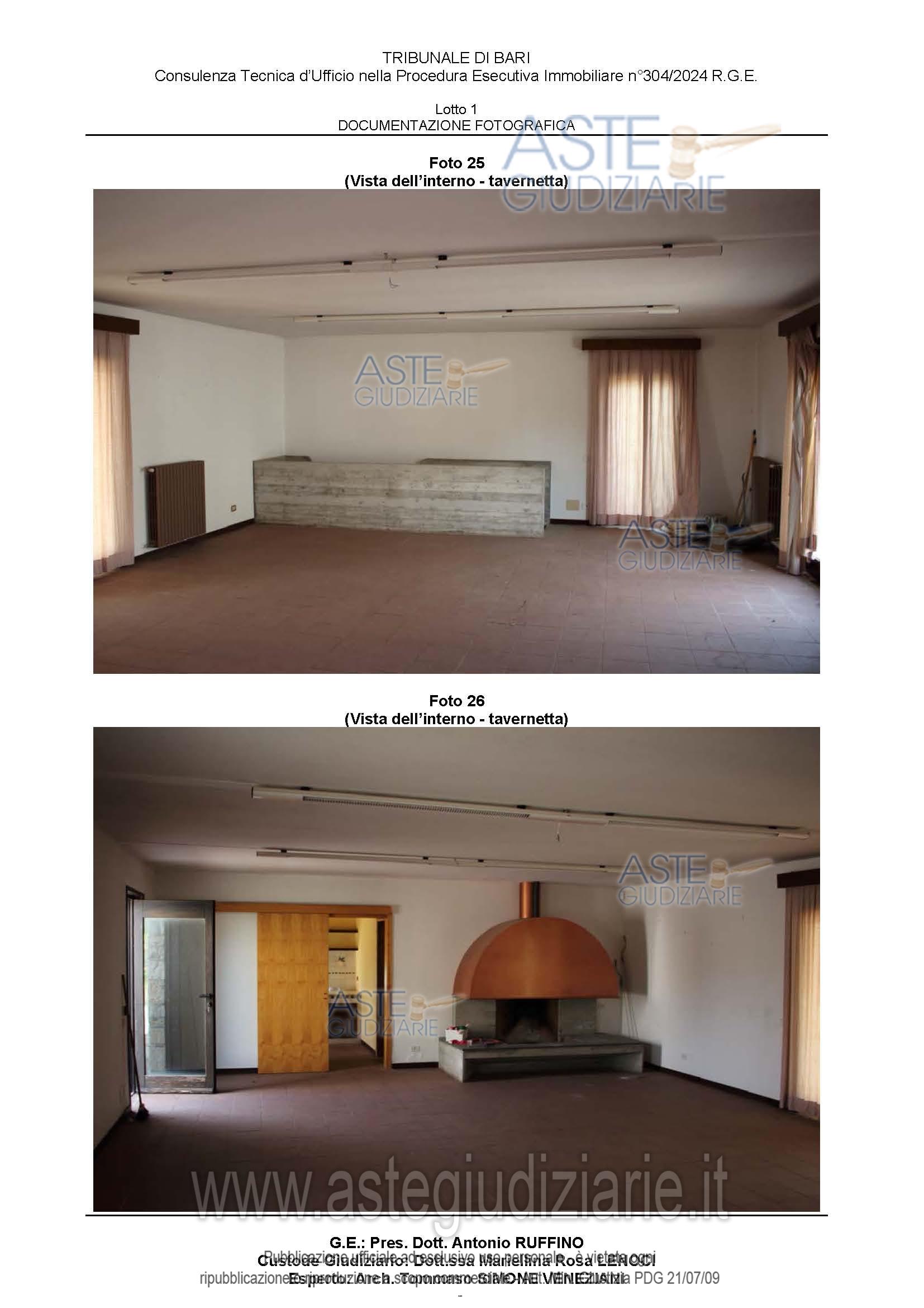 Vendita all'asta Senza incanto, con gara telematica asincrona - LOTTO 1: Piena proprietà dell’unità immobiliare a destinazione abitativa sita a Monopoli alla contrada Impalata n.c. composta da vani principali a trullo al piano terra con pertinenziale corpo di fabbrica adibito a tavernetta al piano terra e locale macchine e cisterna al piano interrato, compresa l'area esterna coperta, scoperta e piscina. Prezzo base € 134.000,00 (offerta minima € 100.500,00). Data inizio operazioni di vendita: 22/01/2026 ore 17:15. Giudice Dott. Antonio Ruffino. Professionista delegato alla vendita Not. Mariellina Rosa Lenoci - Email "mlenoci@notariato.it". Custode Giudiziario Not. Mariellina Rosa Lenoci - Email "mlenoci@notariato.it"; Tel. 0805289033. Rif. Tribunale di Bari - Espropriazione immobiliare (cartabia) n. 304/2024