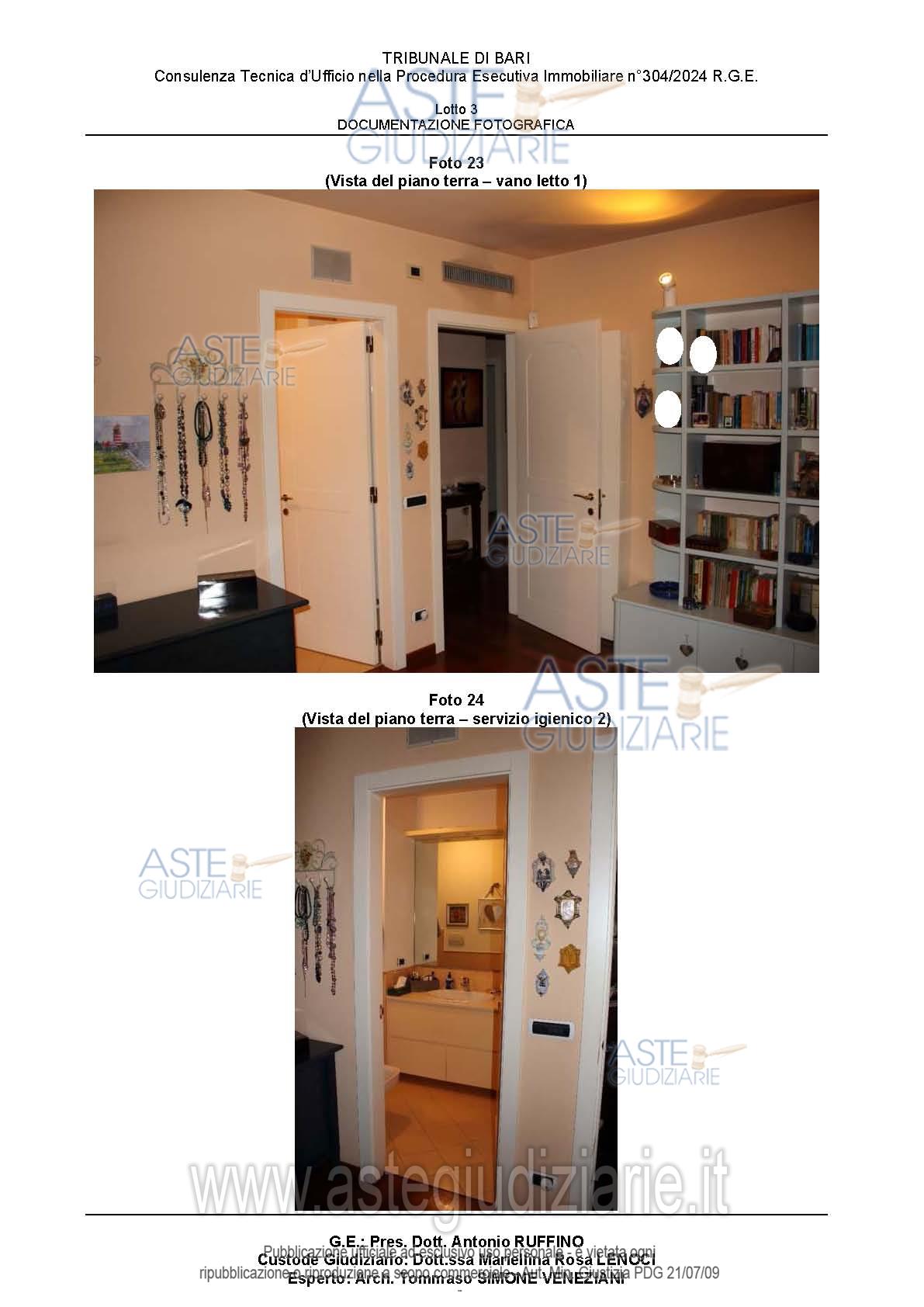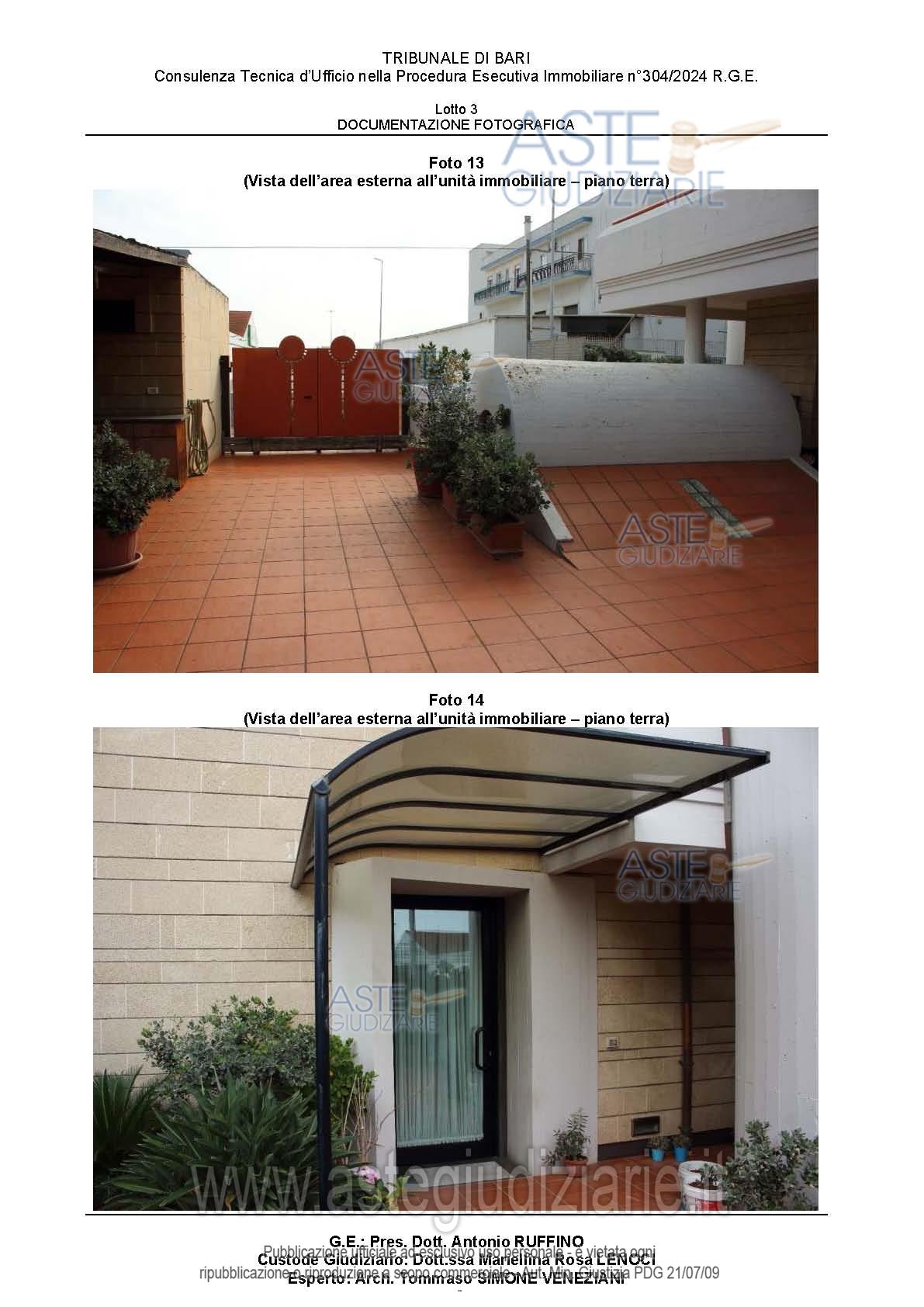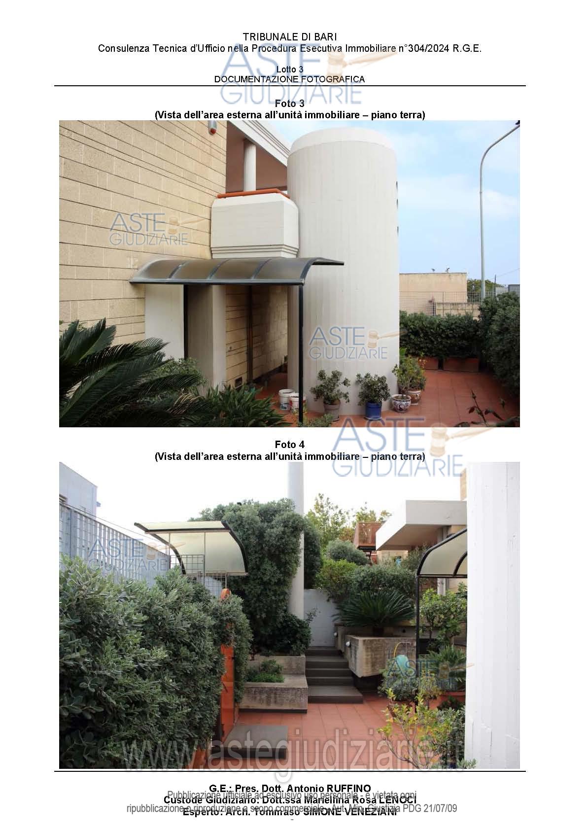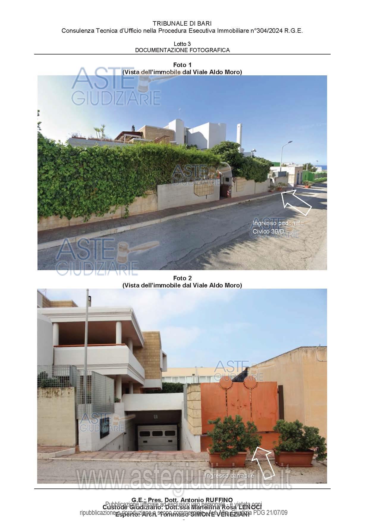 Vendita all'asta Senza incanto, con gara telematica asincrona - LOTTO 3: Piena proprietà dell’unità immobiliare ad uso abitativo sita a Monopoli con accesso dal civico n.30/D di via Aldo Moro, composta da piano interrato e piano terra con pertinenziale area esterna coperta e scoperta. Prezzo base € 280.000,00 (offerta minima € 210.000,00). Data inizio operazioni di vendita: 22/01/2026 ore 17:15. Giudice Dott. Antonio Ruffino. Professionista delegato alla vendita Not. Mariellina Rosa Lenoci - Email "mlenoci@notariato.it". Custode Giudiziario Not. Mariellina Rosa Lenoci - Email "mlenoci@notariato.it"; Tel. 0805289033. Rif. Tribunale di Bari - Espropriazione immobiliare (cartabia) n. 304/2024