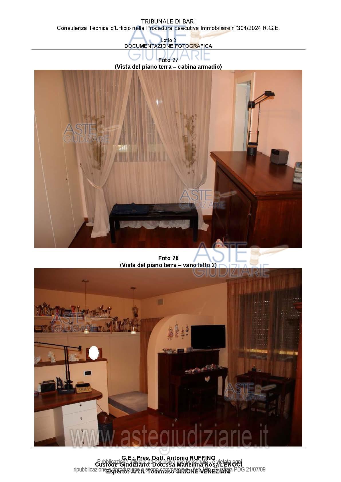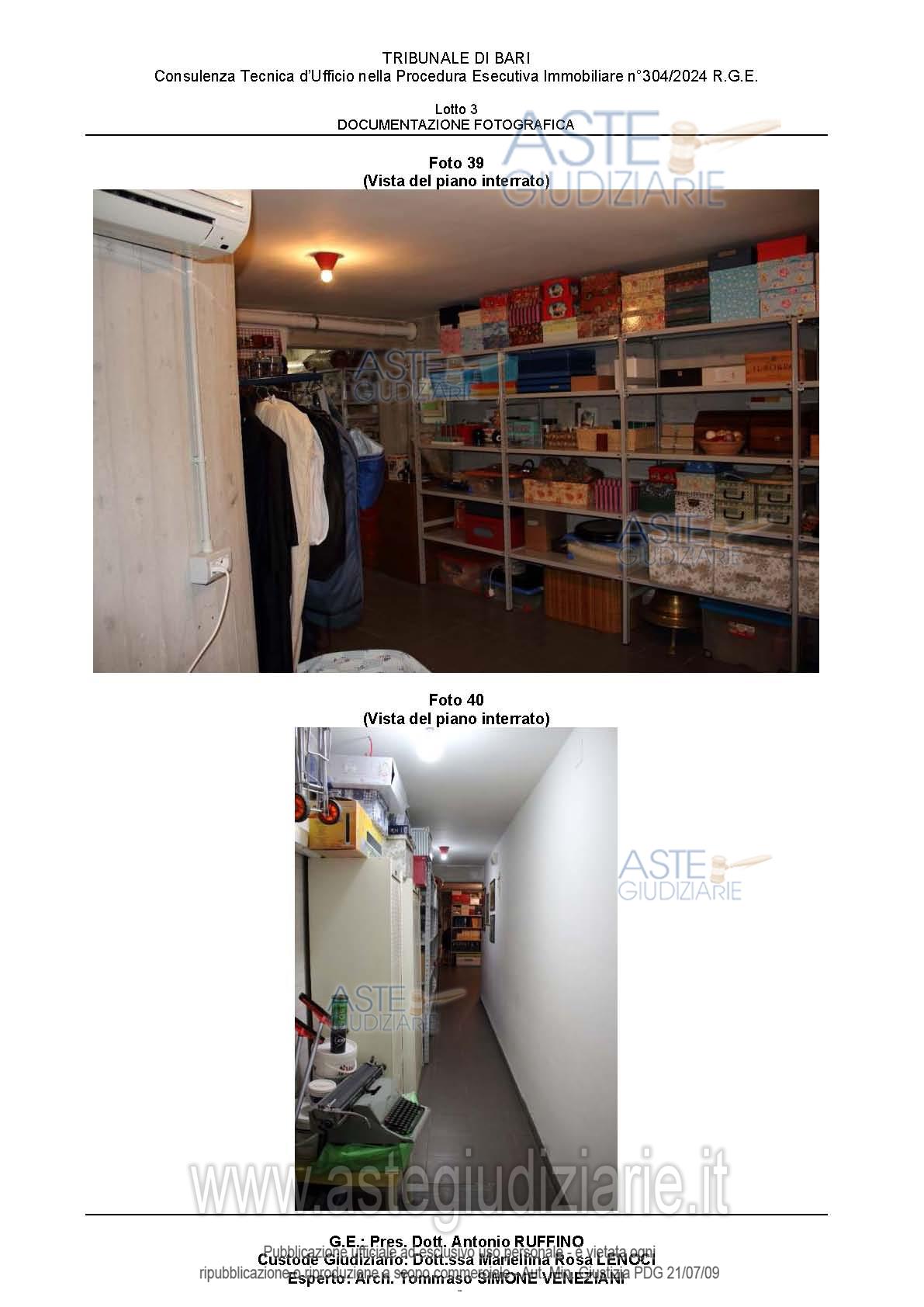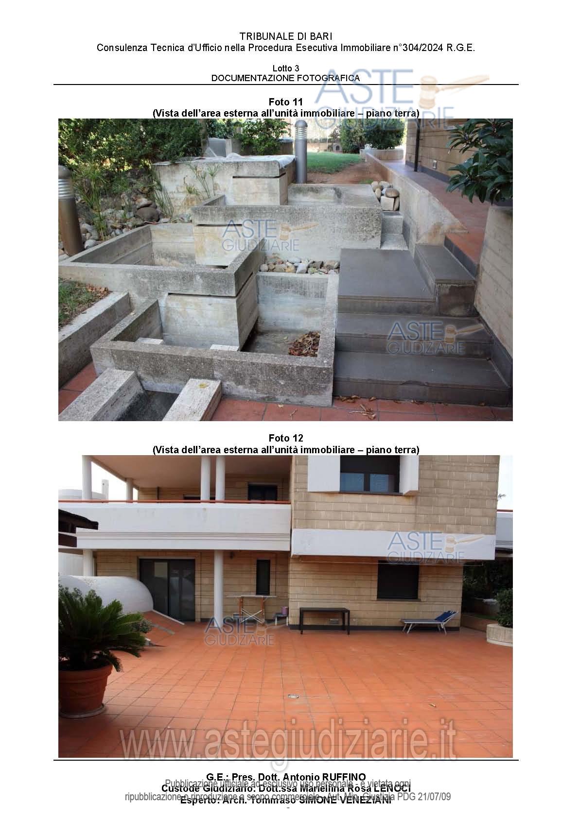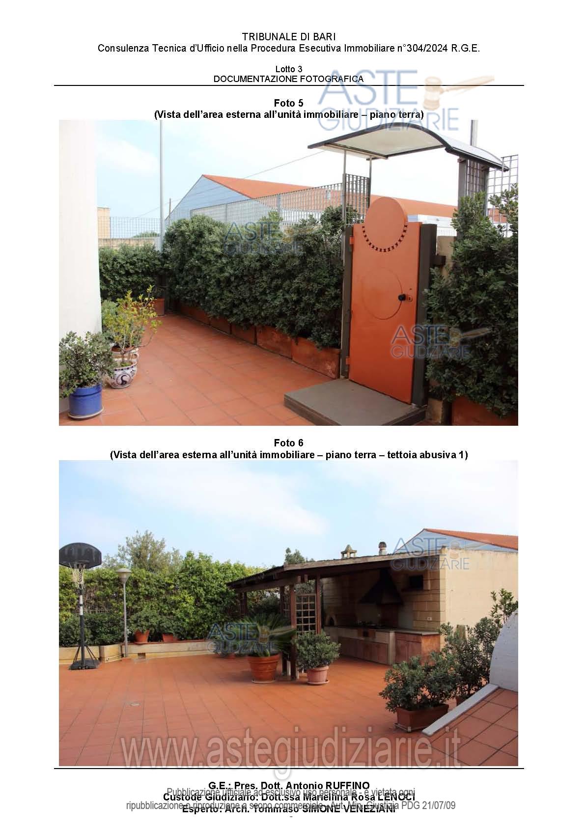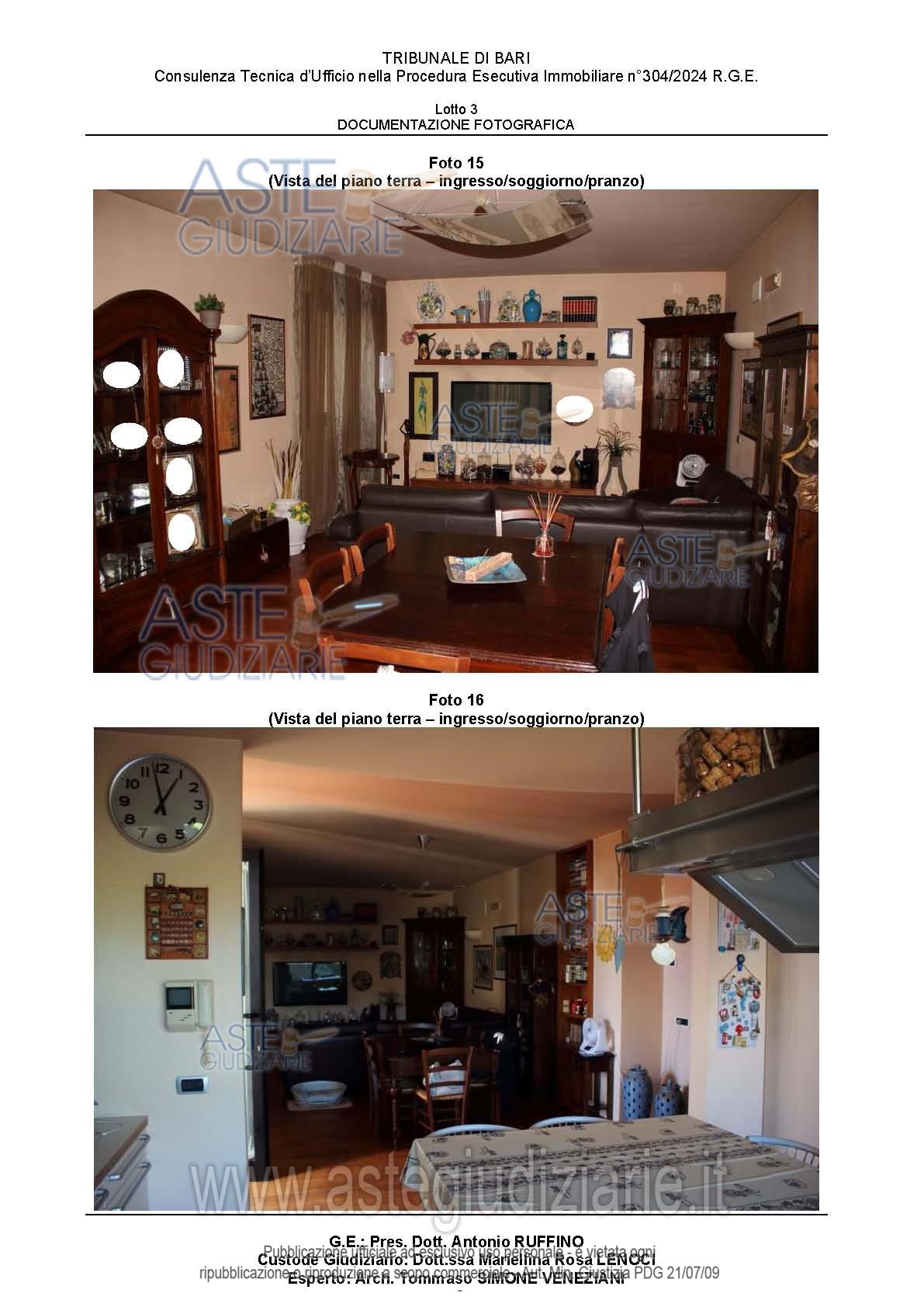 Vendita all'asta Senza incanto, con gara telematica asincrona - LOTTO 3: Piena proprietà dell’unità immobiliare ad uso abitativo sita a Monopoli con accesso dal civico n.30/D di via Aldo Moro, composta da piano interrato e piano terra con pertinenziale area esterna coperta e scoperta. Prezzo base € 280.000,00 (offerta minima € 210.000,00). Data inizio operazioni di vendita: 22/01/2026 ore 17:15. Giudice Dott. Antonio Ruffino. Professionista delegato alla vendita Not. Mariellina Rosa Lenoci - Email "mlenoci@notariato.it". Custode Giudiziario Not. Mariellina Rosa Lenoci - Email "mlenoci@notariato.it"; Tel. 0805289033. Rif. Tribunale di Bari - Espropriazione immobiliare (cartabia) n. 304/2024