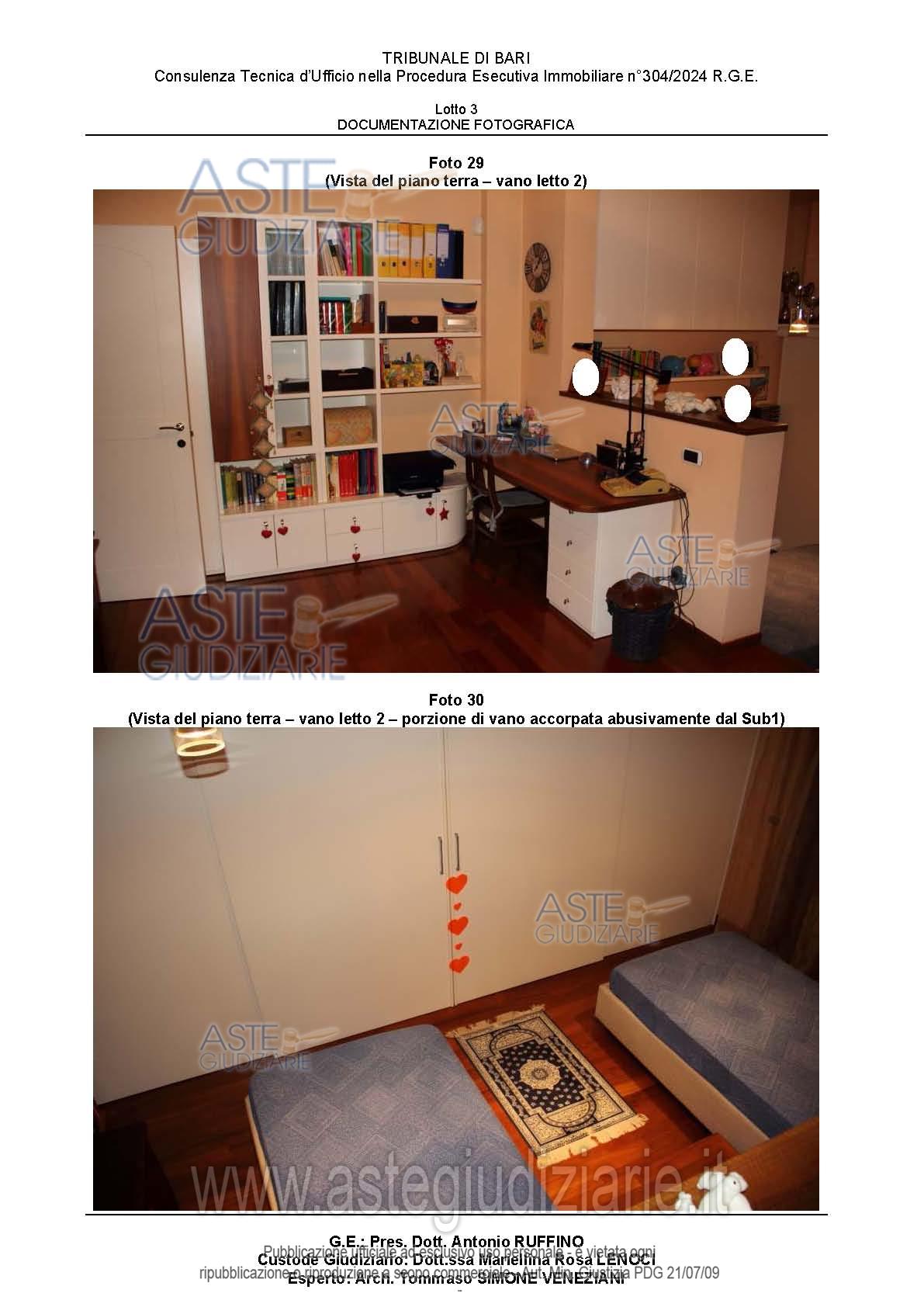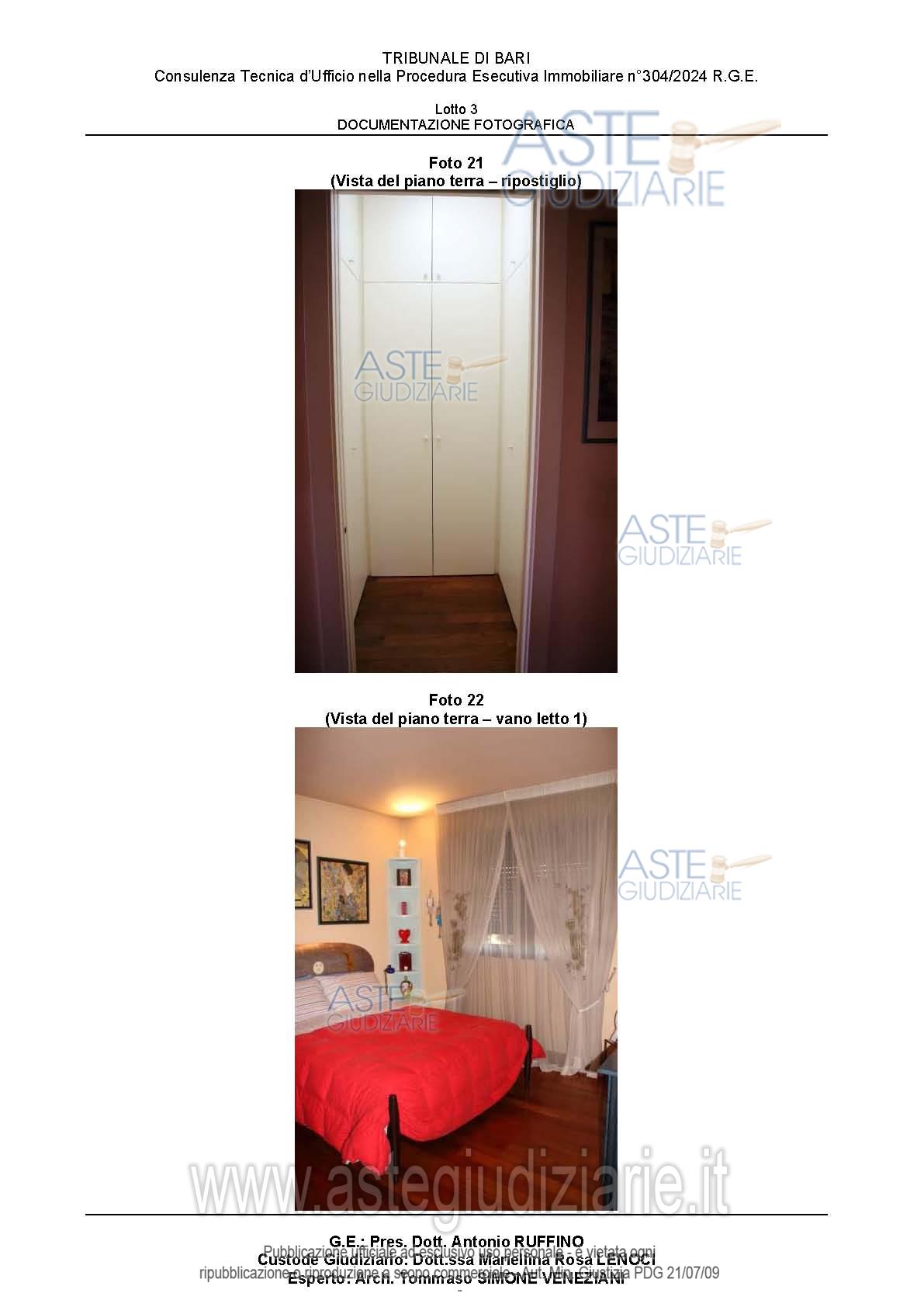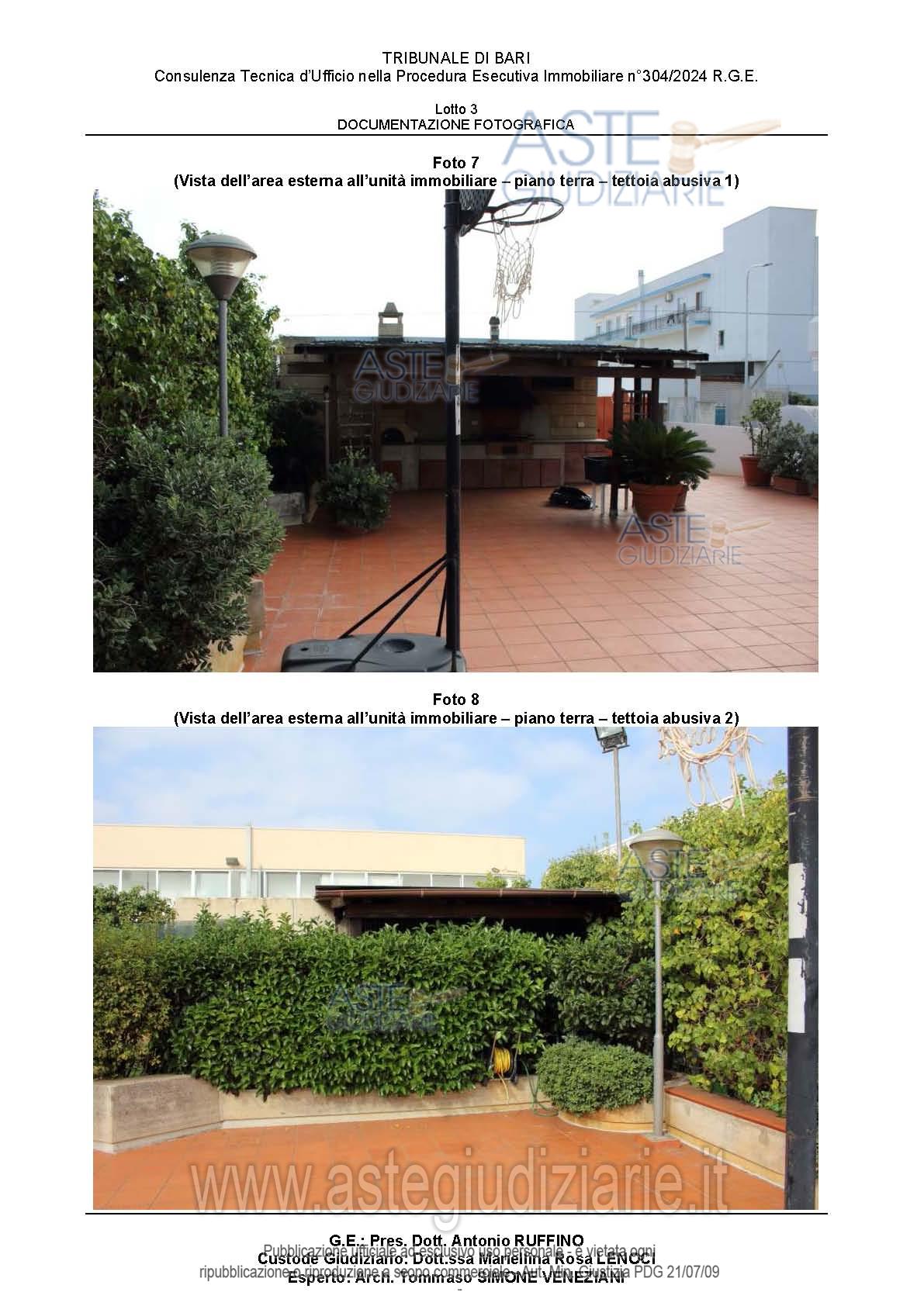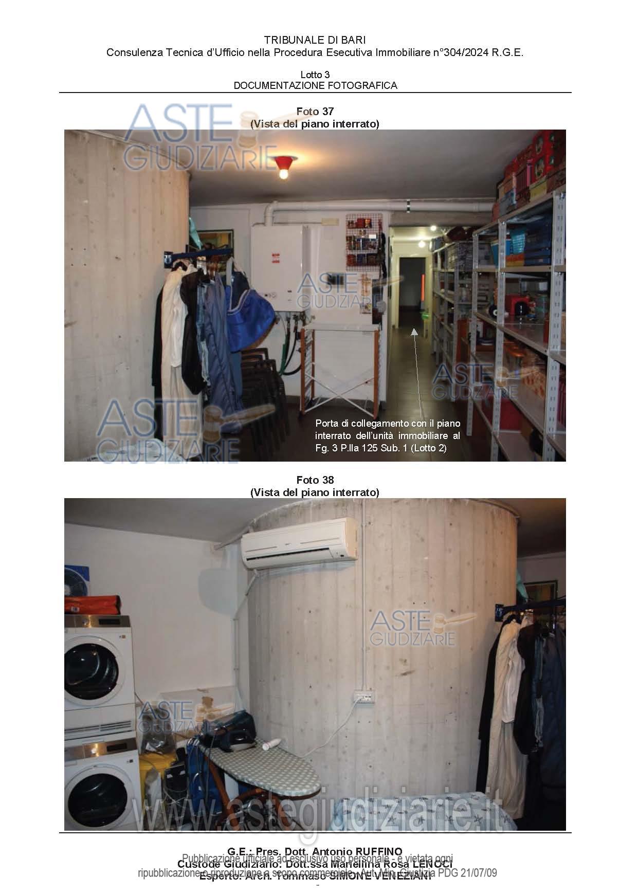 Vendita all'asta Senza incanto, con gara telematica asincrona - LOTTO 3: Piena proprietà dell’unità immobiliare ad uso abitativo sita a Monopoli con accesso dal civico n.30/D di via Aldo Moro, composta da piano interrato e piano terra con pertinenziale area esterna coperta e scoperta. Prezzo base € 280.000,00 (offerta minima € 210.000,00). Data inizio operazioni di vendita: 22/01/2026 ore 17:15. Giudice Dott. Antonio Ruffino. Professionista delegato alla vendita Not. Mariellina Rosa Lenoci - Email "mlenoci@notariato.it". Custode Giudiziario Not. Mariellina Rosa Lenoci - Email "mlenoci@notariato.it"; Tel. 0805289033. Rif. Tribunale di Bari - Espropriazione immobiliare (cartabia) n. 304/2024