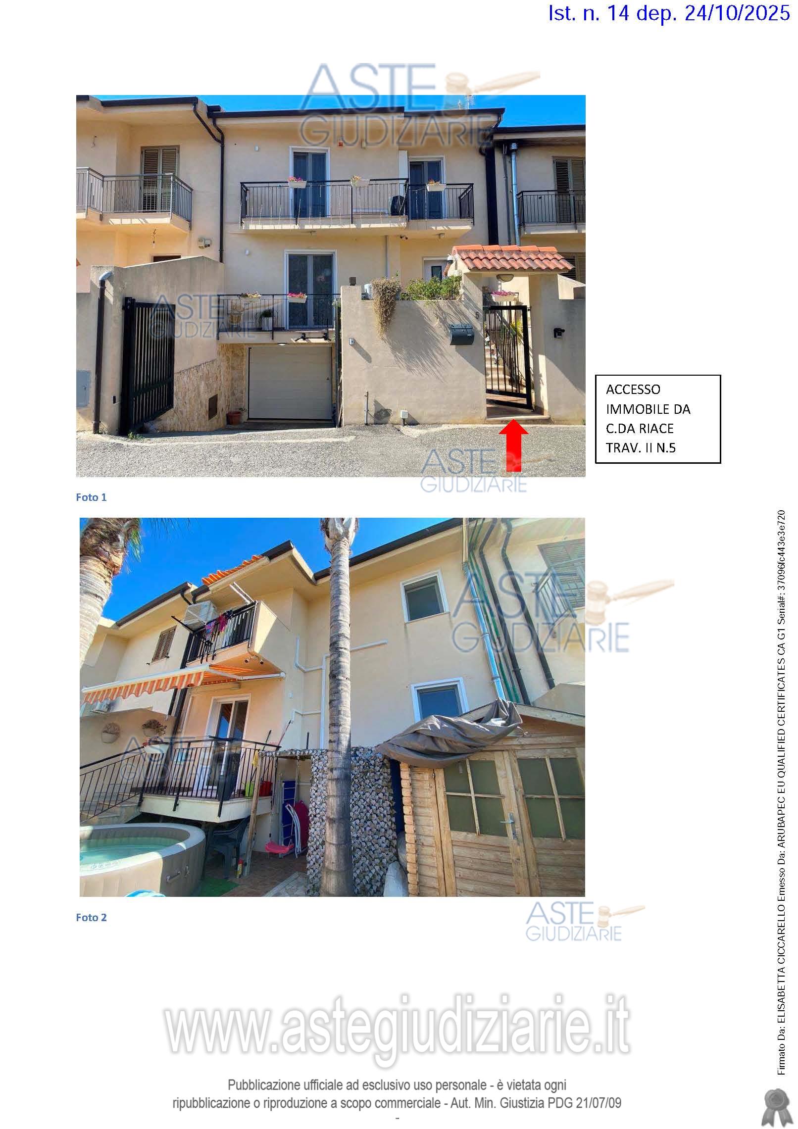 Vendita all'asta Senza incanto, con gara telematica asincrona - LOTTO 1: Villino sito in Montebello Jonico, Loc. Riace della frazione Saline Joniche. Prezzo base € 102.000,00 (offerta minima € 76.500,00). Data inizio operazioni di vendita: 19/05/2026 ore 15:00. Giudice Dott. Stefano Cantone. Professionista delegato alla vendita Roberto Messina - Email "messina.roberto@yahoo.com"; Tel. 3280139783. Custode Giudiziario Roberto Messina - Email "messina.roberto@yahoo.com"; Tel. 3280139783. Rif. Tribunale di Reggio di Calabria - Espropriazione immobiliare (cartabia) n. 104/2024