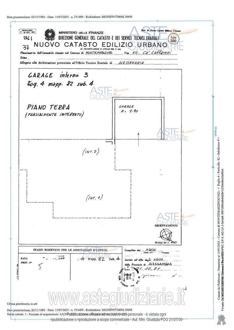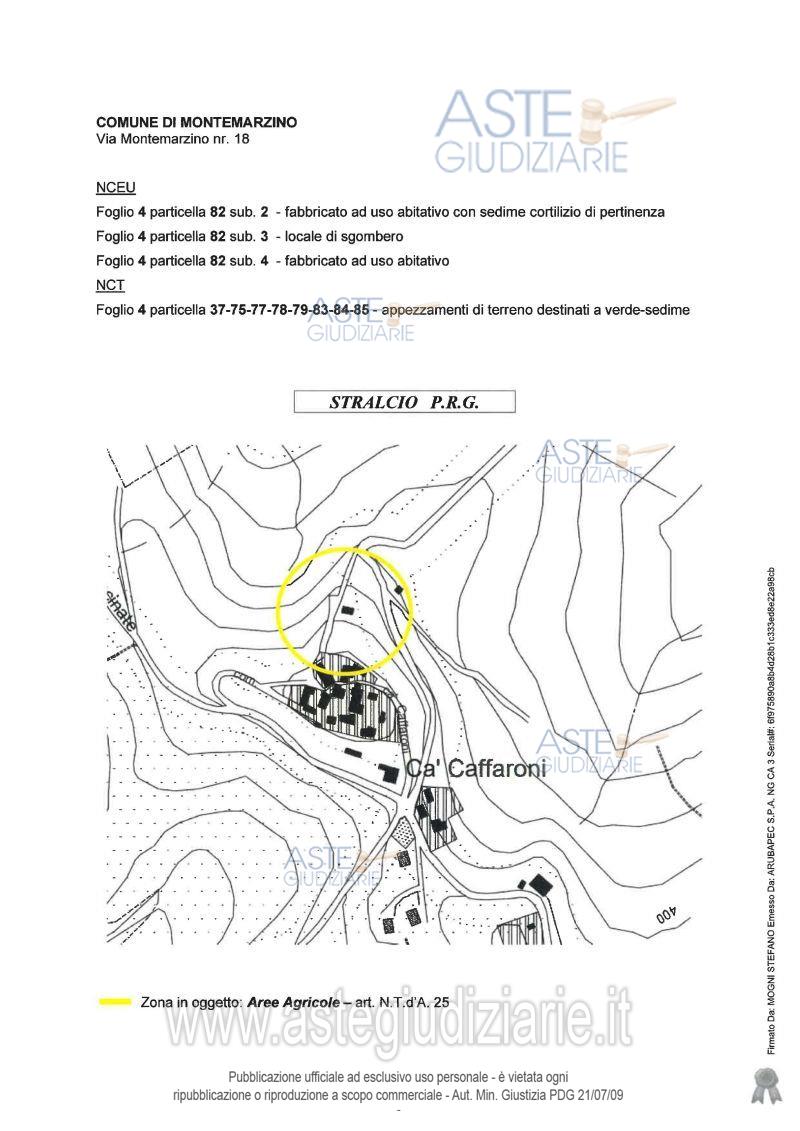 Vendita all'asta Competitiva, con gara telematica asincrona - LOTTO 2: Piena proprietà di villetta ad uso abitativo con sedime cortilizio di pertinenza, box, locale di sgombero, e otto appezzamenti di terreno boschivo, con entro stanti portico aperto e sotto-stanti locali di deposito e tettoia aperta destinata a ricovero animali (da rimuovere), situato in un versante collinare del Comune di Montemarzino, in Località Ca' Caffarone. Prezzo base € 165.000,00 (offerta minima € 123.750,00). Data inizio operazioni di vendita: 20/05/2026 ore 10:00. Professionista delegato alla vendita Dott. Pierluigi Caniggia - Email "pierluigi.caniggia@studiocaniggia.it"; Tel. 0131861342. Custode Giudiziario Dott. Pierluigi Caniggia - Email "pierluigi.caniggia@studiocaniggia.it"; Tel. 0131861342. Rif. Tribunale di Alessandria - Espropriazione immobiliare (cartabia) n. 162/2025