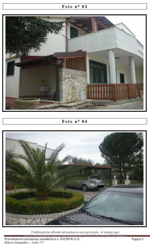 Vendita all'asta Senza incanto, con gara telematica asincrona - LOTTO 3: Villino costituito da cucina, soggiorno, porticato esterno coperto e W.C. al piano terra, e due vani letto, disimpegno e bagno al primo piano, oltre adarea di pertinenza esterna destinata a giardino. Prezzo base € 31.163,48 (offerta minima € 23.372,61). Data inizio operazioni di vendita: 26/11/2025 ore 15:00. Giudice Dott. Chiara Cutolo. Professionista delegato alla vendita Avv. Alessandro Luigi De Felice - Email "studio.defelice@libero.it"; Tel. 0805232836. Custode Giudiziario Avv. Alessandro Luigi De Felice - Email "studio.defelice@libero.it"; Tel. 0805232836. Rif. Tribunale di Bari - Esecuzione immobiliare post legge 80 n. 434/2009