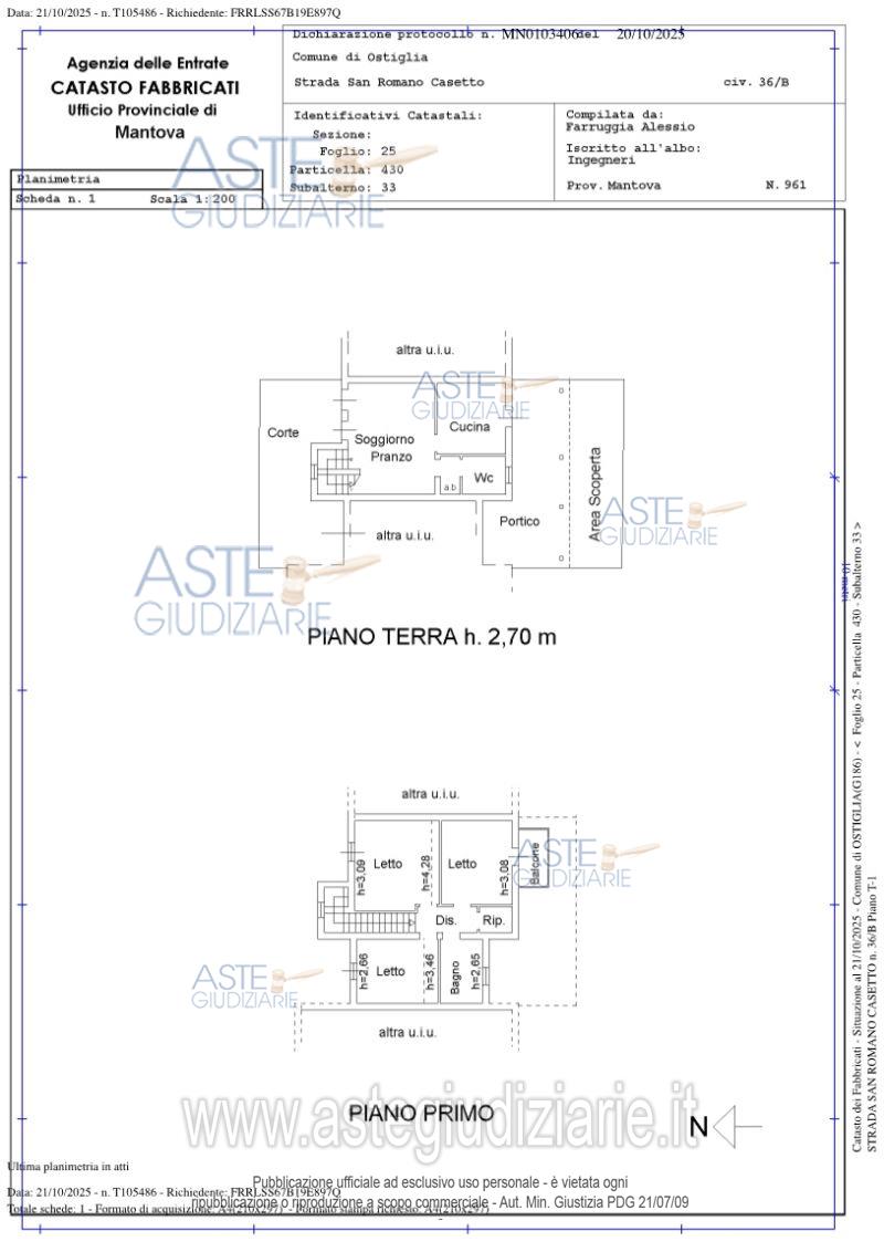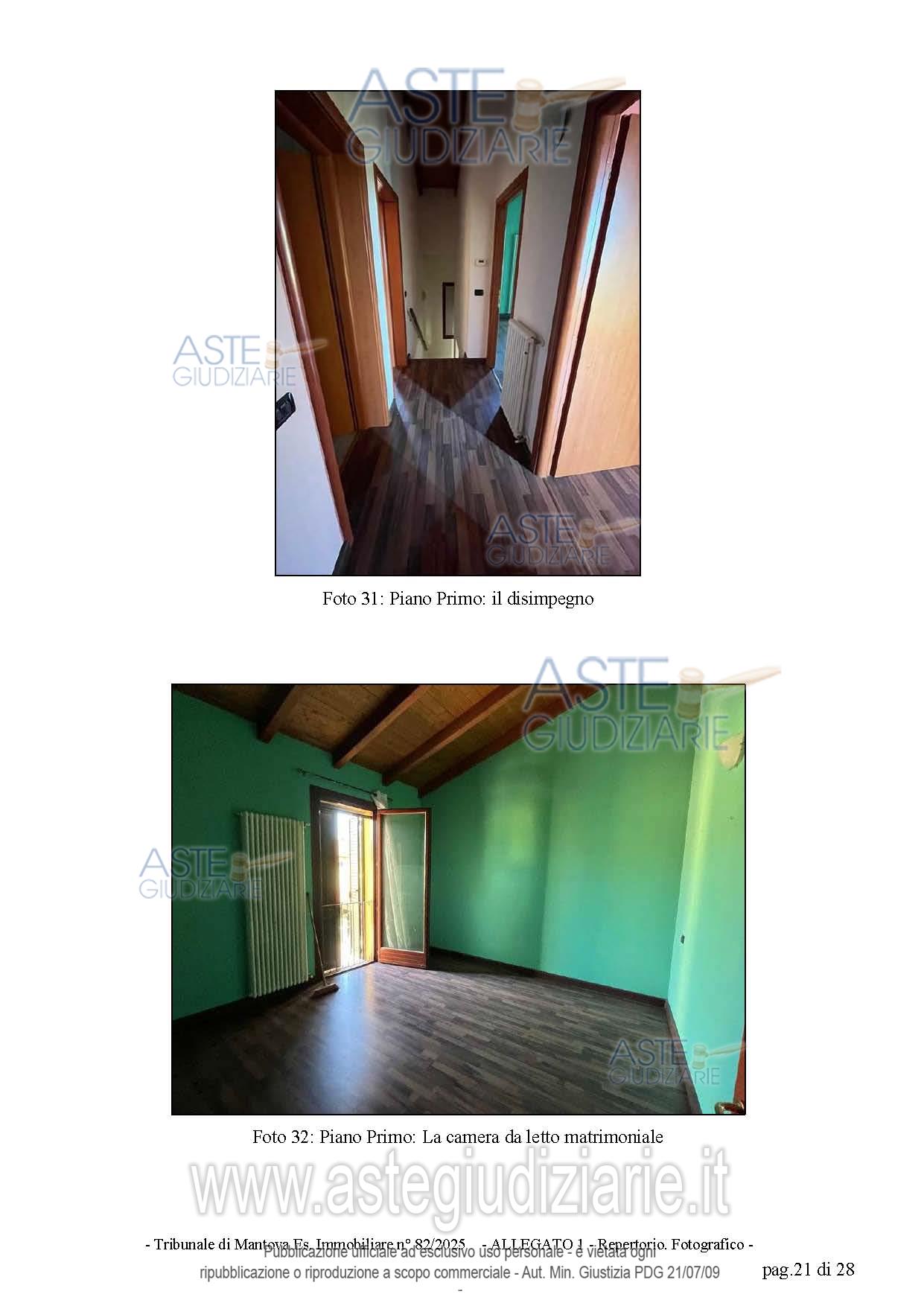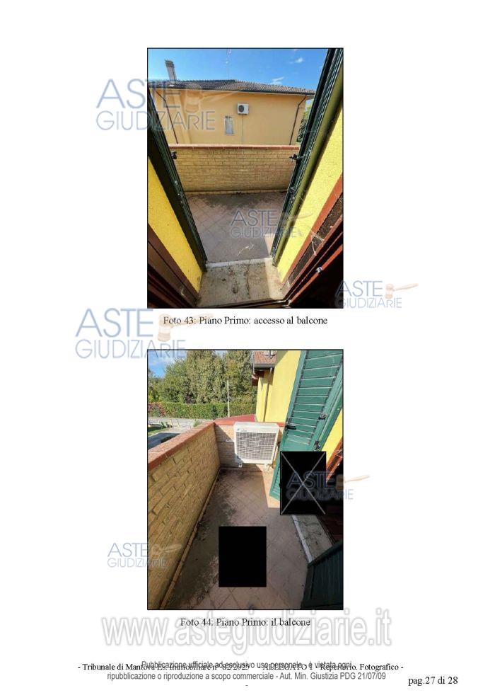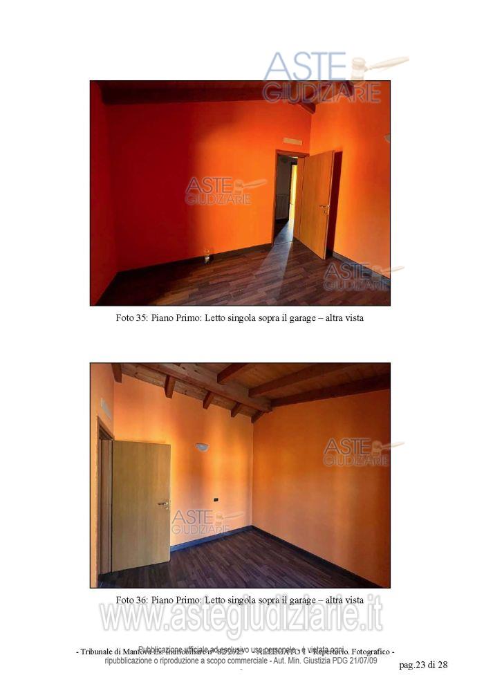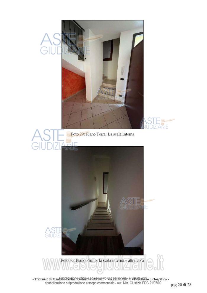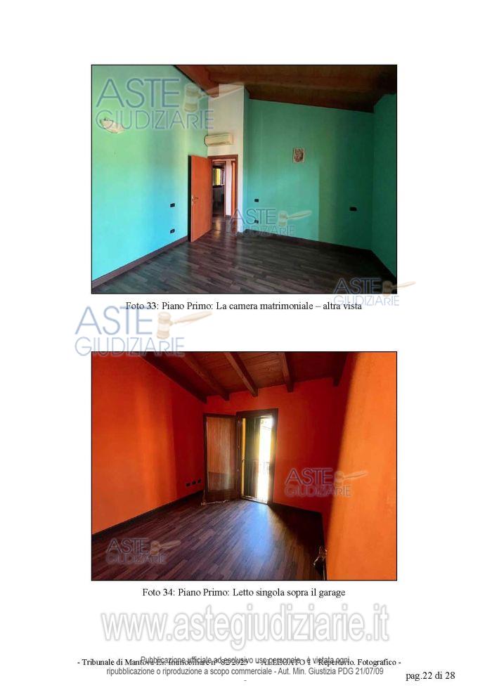 Vendita all'asta Senza incanto, con gara telematica sincrona mista - LOTTO UNICO: Intera piena proprietà di villetta a schiera sviluppantesi su due piani fuori terra, facente parte di complesso residenziale e composta: al piano terra, da ingresso-soggiorno-pranzo con vano scale, cucina, antibagno, bagno e portico; al piano primo, da vano scale, disimpegno, ripostiglio, tre camere da letto, bagno e balcone; con annesse area cortilive antistante e retrostante; garage pertinenziale posto al piano terra del medesimo corpo di fabbrica dellavilletta. Prezzo base € 96.900,00 (offerta minima € 72.675,00). Data vendita 13/03/2026 ore 16:00. Giudice Dott. Francesca Arrigoni. Professionista delegato alla vendita Avv. Franco Benassi. Custode Giudiziario Sovemo Istituto Vendite Giudiziarie Di Mantova - Email "immobiliaremantova@sovemo.com"; Tel. 0376220694. Rif. Tribunale di Mantova - Espropriazione immobiliare (cartabia) n. 82/2025