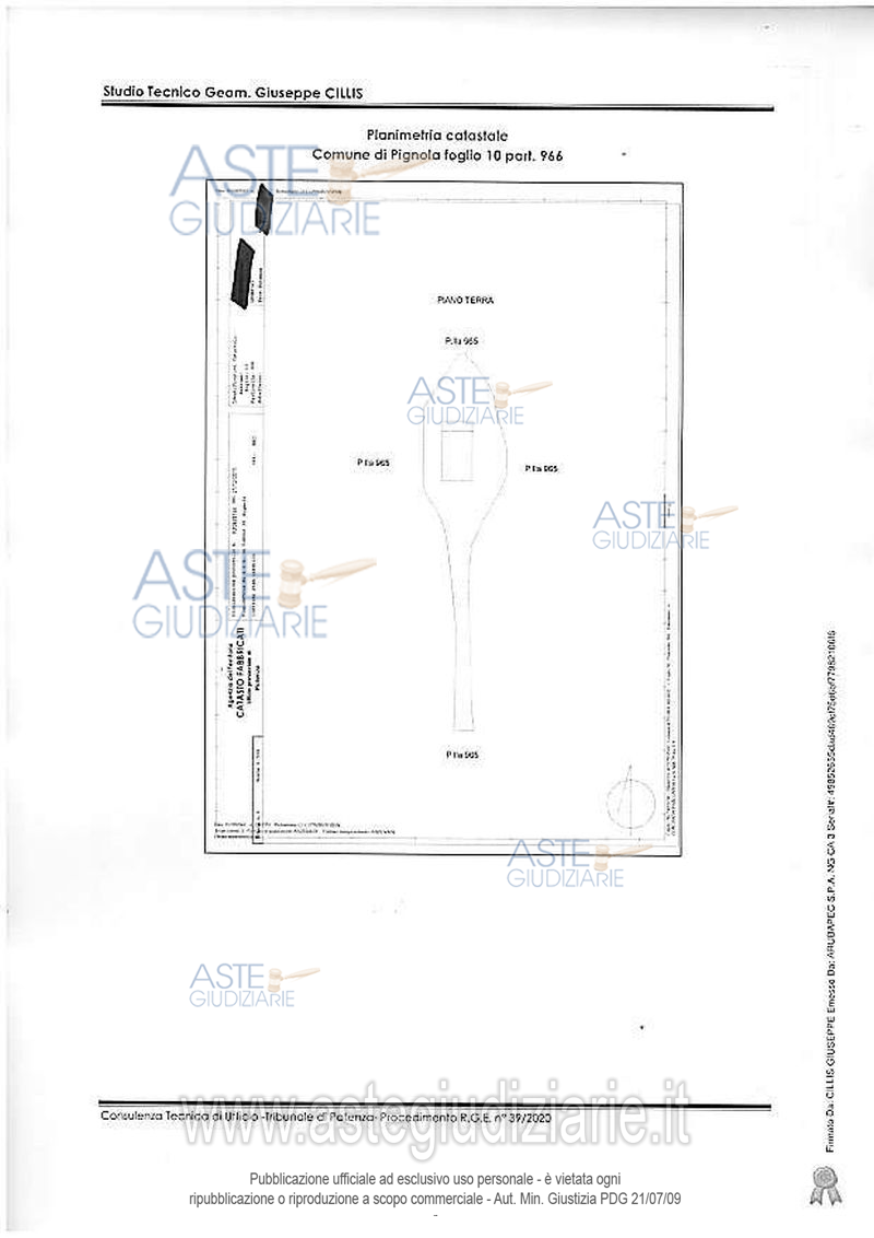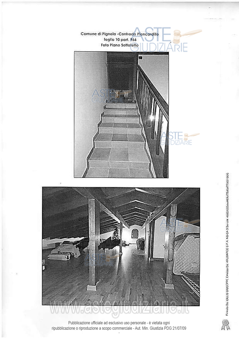 Vendita all'asta Senza incanto, con gara telematica asincrona - LOTTO UNICO: 1/1 piena proprietà di abitaz. in villino e circost. terreno(area pertin.)nel Comune di Pignola(PZ) C.da Piancardillo,in C.F. fg. 10 part. 966,cat.A/7,cl. 2,cons. 12,5 vani,nonché di terreni nel Comune di Pignola (PZ) C.da Piancardillo riportati nel C.T. di detto Comune al fg. 10 part. 965,qual. semin.,cl. 3,sup. 1 ha 09 are 26 ca,al fg. 10 part. 347,qual. semin.,cl. 3,sup. 16 are 92 ca,al fg. 10 part. 346,qual. pascolo,cl. 3,sup. 59 are 51 ca,e al fg. 10 part. 105,qual. pascolo,cl. 3,sup. 72 are 88 ca. Prezzo base € 170.775,00 (offerta minima € 128.081,25). Data inizio operazioni di vendita: 03/12/2025 ore 10:00. Professionista delegato alla vendita Avv. Michele Mascolo - Email "michelemascolo@tiscali.it"; Cell. 3286953907; Tel. 3286953907. Custode Giudiziario Avv. Michele Mascolo - Email "michelemascolo@tiscali.it"; Cell. 3286953907; Tel. 3286953907. Rif. Tribunale di Potenza - Esecuzione immobiliare post legge 80 n. 39/2020