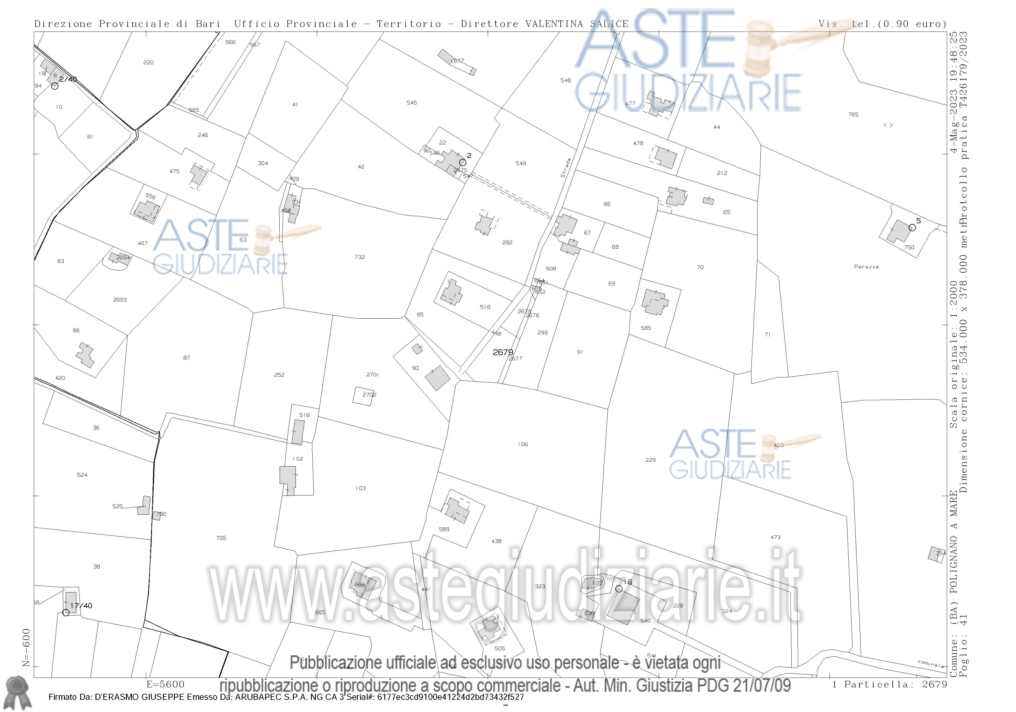 Vendita all'asta Senza incanto, con gara telematica asincrona - LOTTO 1: Diritto di nuda proprietà della quota 1/1 del villino ad uso residenziale con pertinenziale area esterna e vano accessorio, con sovrastante vano adibito a deposito. Prezzo base € 109.297,50 (offerta minima € 81.973,13). Data inizio operazioni di vendita: 09/02/2026 ore 16:00. Giudice Dott. Marina Cavallo. Professionista delegato alla vendita Avv. Giuseppina Longo - Email "avv.giusilongo@libero.it". Custode Giudiziario Avv. Giuseppina Longo - Email "avv.giusilongo@libero.it". Rif. Tribunale di Bari - Esecuzione immobiliare post legge 80 n. 496/2022