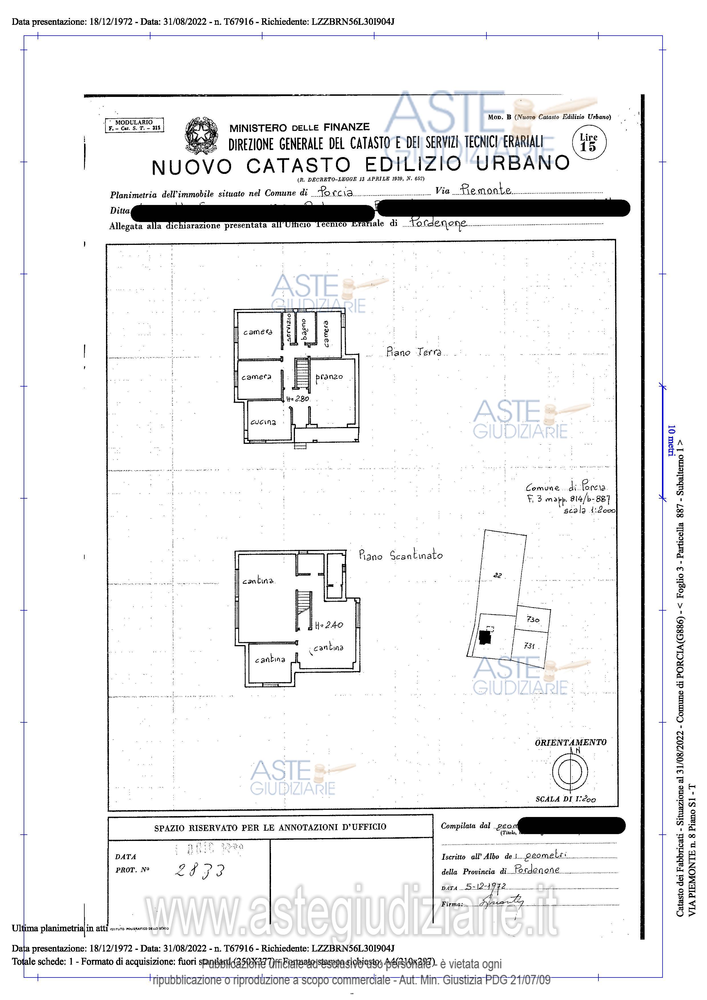 Vendita all'asta Senza incanto, con gara telematica sincrona - LOTTO UNICO: Fabbricato residenziale unifamiliare, isolato con circostante terreno pertinenziale tenuto a giardino, su unico piano f.t. e sottostante scantinato; il sottotetto è impraticabile. L’autorimessa è interrata. Il P.T. comprende: zona giorno con ingresso, cucina, soggiorno; zona notte disimpegnate, 3 camere e doppi servizi igienici. Il P. scantinato comprende: deposito, cucina, taverna con caminetto, servizio igienico con box doccia e ripostiglio. Libero. Difformità catastali/edilizie sanabili. Prezzo base € 139.360,00 (offerta minima € 104.520,00). Data vendita 19/03/2026 ore 15:00. Giudice Dott. Elisa Tesco. Professionista delegato alla vendita Dott. Anna Milan - Email "fabiobailot@gmail.com". Custode Giudiziario Custode Giudiziario - Email "custodi@associazionenotarile.pn.it"; Tel. 3294536349. Rif. Tribunale di Pordenone - Contenzioso civile n. 630/2023