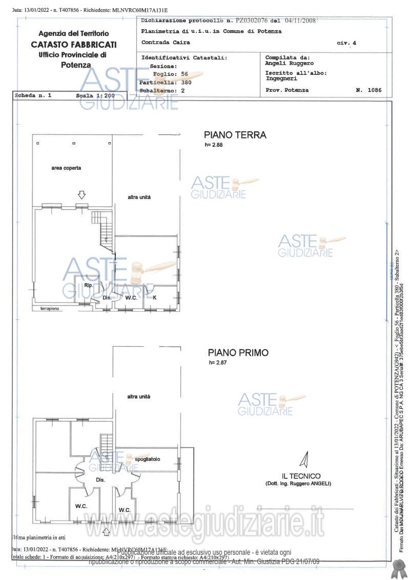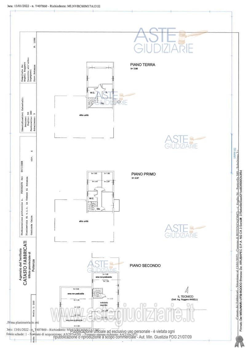 Vendita all'asta Senza incanto - LOTTO UNICO: Piena ed intera proprietà di una villa unifamiliare su più livelli con annessa area pertinenziale, ubicata nel comune di Potenza alla C.da Soranna/Caira individuato in N.C.E.U. al Foglio 56, Particella 380, sub1 - sub 2 - sub 3, consistenza 19,5 vani catastali – mq. 448. Prezzo base € 128.250,00 (offerta minima € 96.188,00). Data vendita 09/04/2026 ore 17:00. Professionista delegato alla vendita Avv. Francesco Sarno - Email "franc.sarno@gmail.com"; Cell. 3294957290; Tel. 09711566759. Custode Giudiziario Avv. Francesco Sarno - Email "franc.sarno@gmail.com"; Cell. 3294957290; Tel. 09711566759. Rif. Tribunale di Potenza - Esecuzione immobiliare post legge 80 n. 25/1998
