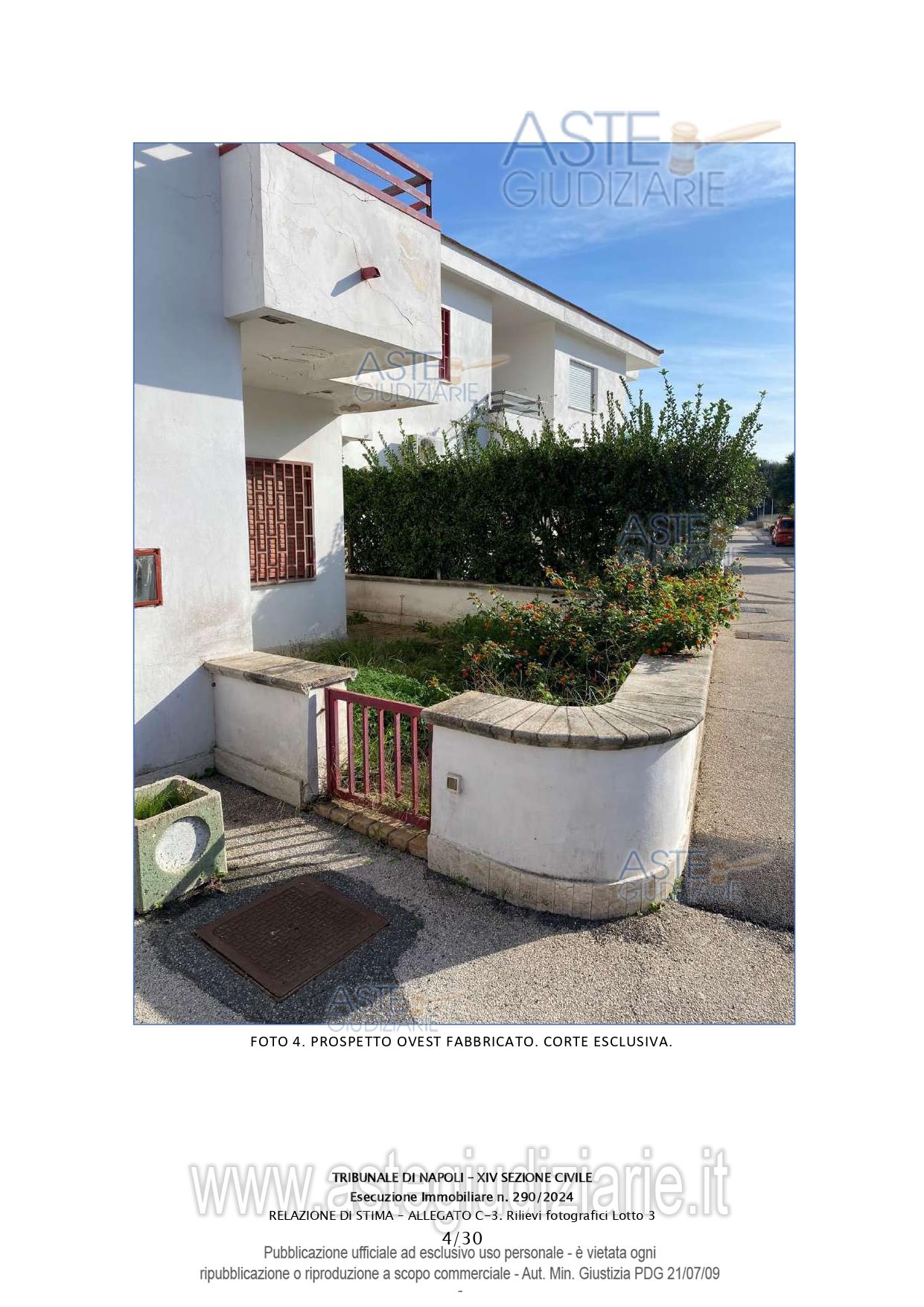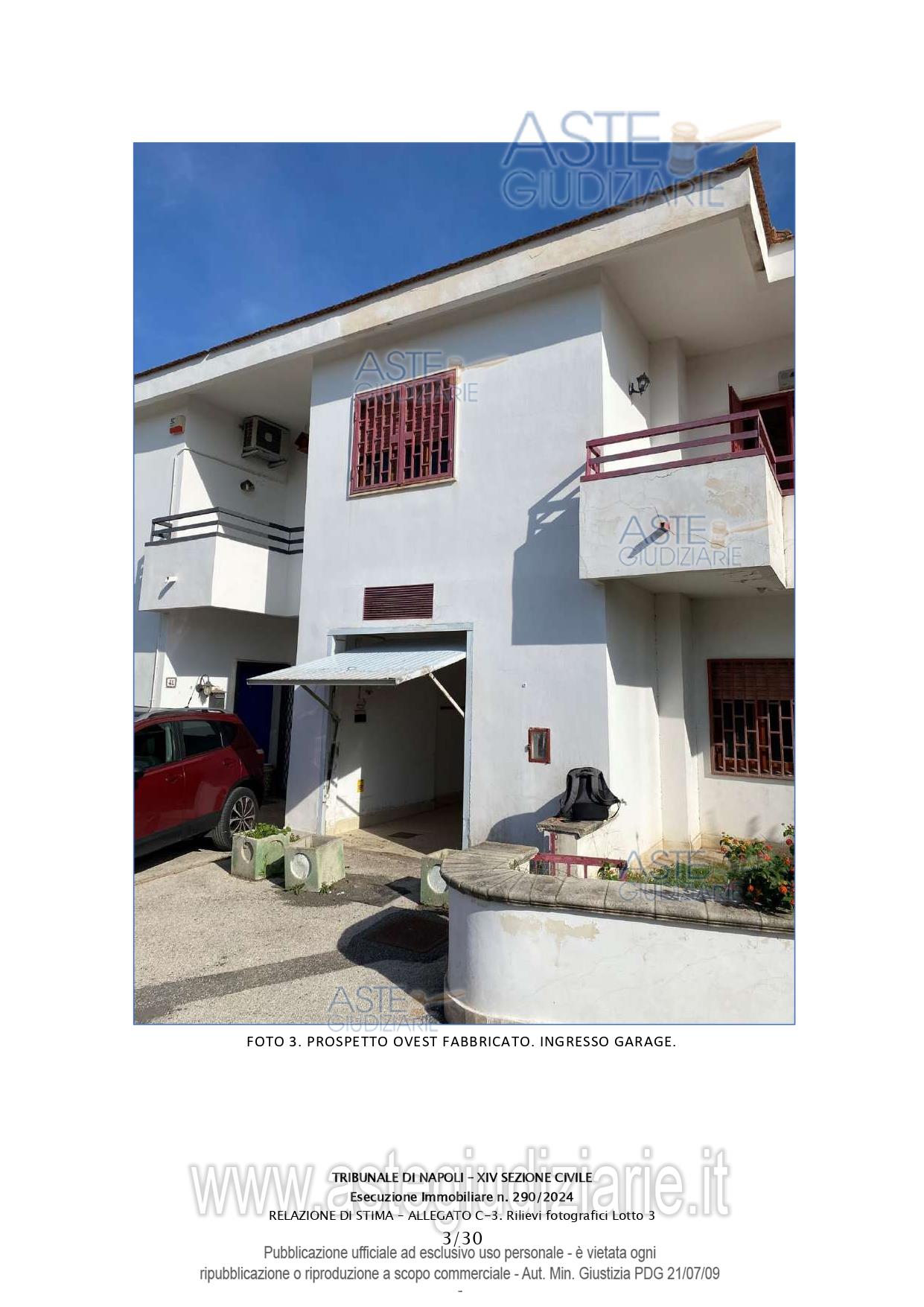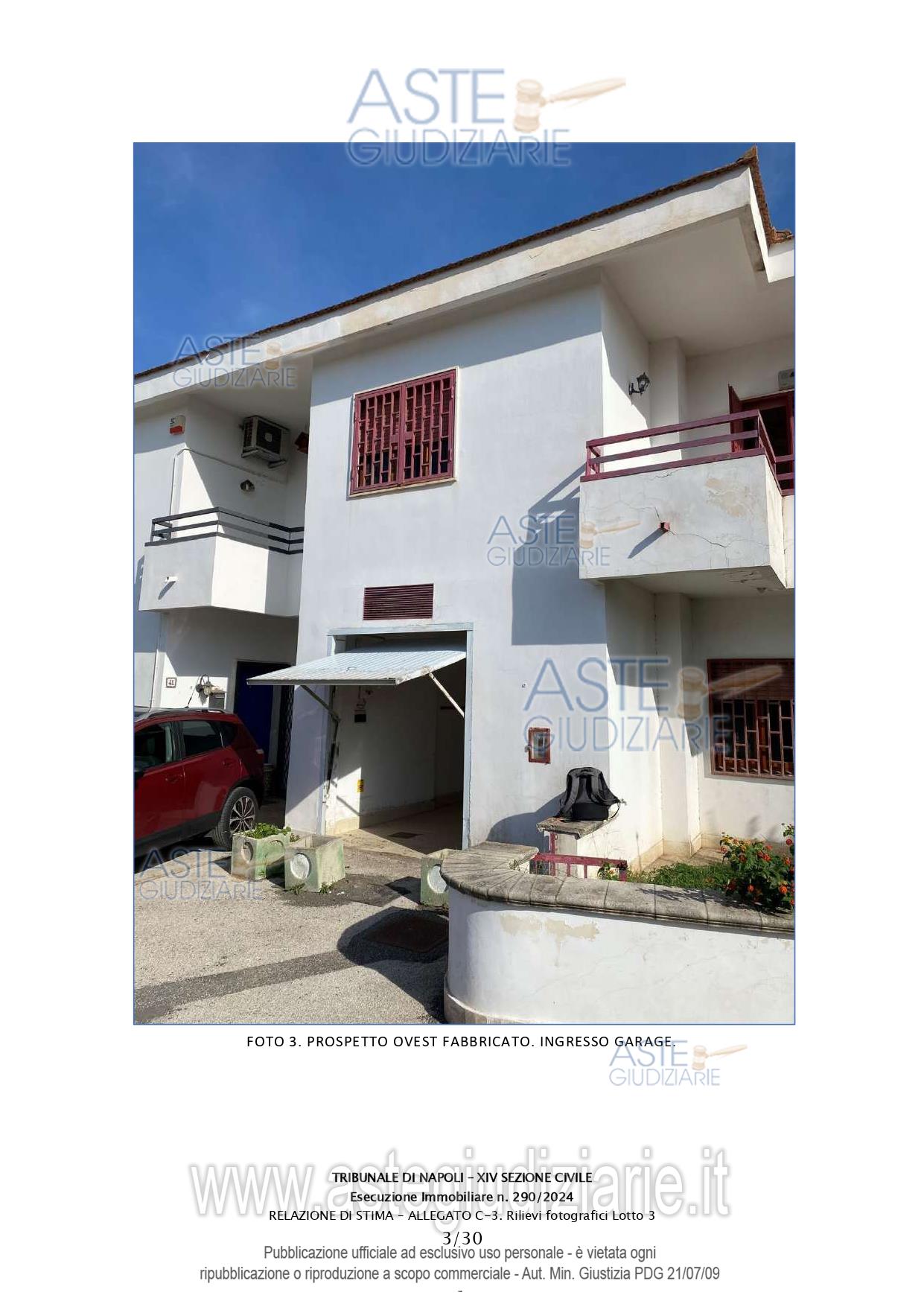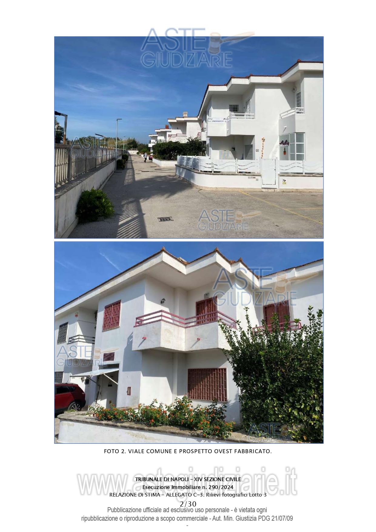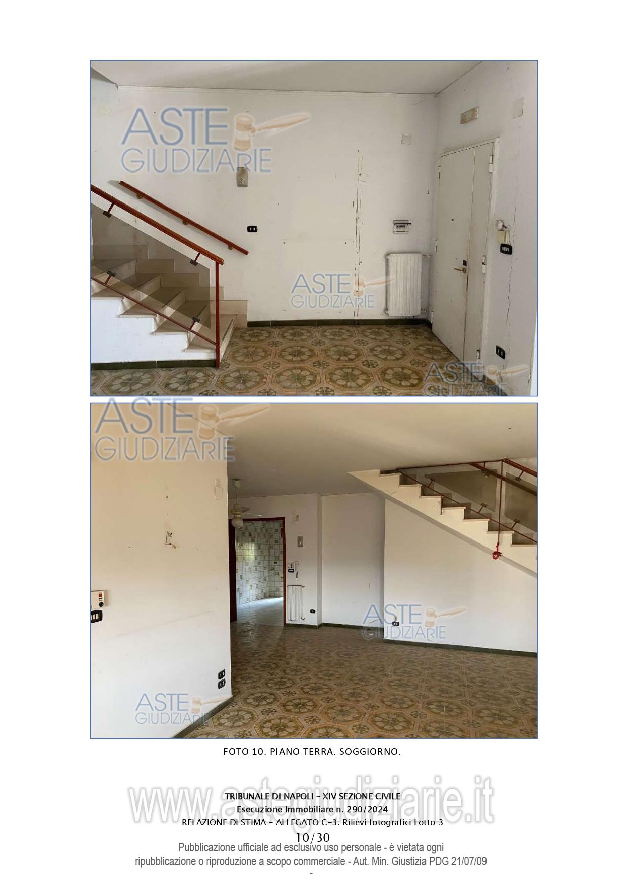 Vendita all'asta Senza incanto, con gara telematica asincrona - LOTTO 3: Abitazione in villino su tre livelli della consistenza di 208 mq commerciali. Prezzo base € 268.000,00 (offerta minima € 201.000,00). Data inizio operazioni di vendita: 24/03/2026 ore 16:00. Giudice Dott. Miriam Valenti. Professionista delegato alla vendita Dott. Salvatore Bonagura - Email "studiobonagura@libero.it"; Cell. 3286530845; Tel. 0815518985. Custode Giudiziario Dott. Salvatore Bonagura - Email "studiobonagura@libero.it"; Cell. 3286530845; Tel. 0815518985. Rif. Tribunale di Napoli - Espropriazione immobiliare (cartabia) n. 290/2024
