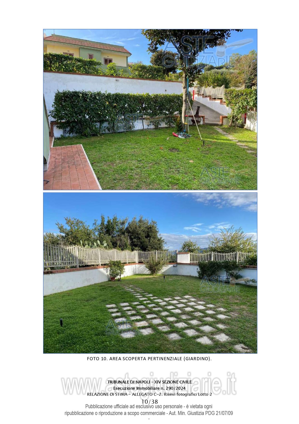 Vendita all'asta Senza incanto, con gara telematica asincrona - LOTTO 2: Abitazione in villino su tre livelli della consistenza di 330 mq commerciali. Prezzo base € 707.000,00 (offerta minima € 530.250,00). Data inizio operazioni di vendita: 31/03/2026 ore 16:00. Giudice Dott. Miriam Valenti. Professionista delegato alla vendita Dott. Salvatore Bonagura - Email "studiobonagura@libero.it"; Cell. 3286530845; Tel. 0815518985. Custode Giudiziario Dott. Salvatore Bonagura - Email "studiobonagura@libero.it"; Cell. 3286530845; Tel. 0815518985. Rif. Tribunale di Napoli - Espropriazione immobiliare (cartabia) n. 290/2024