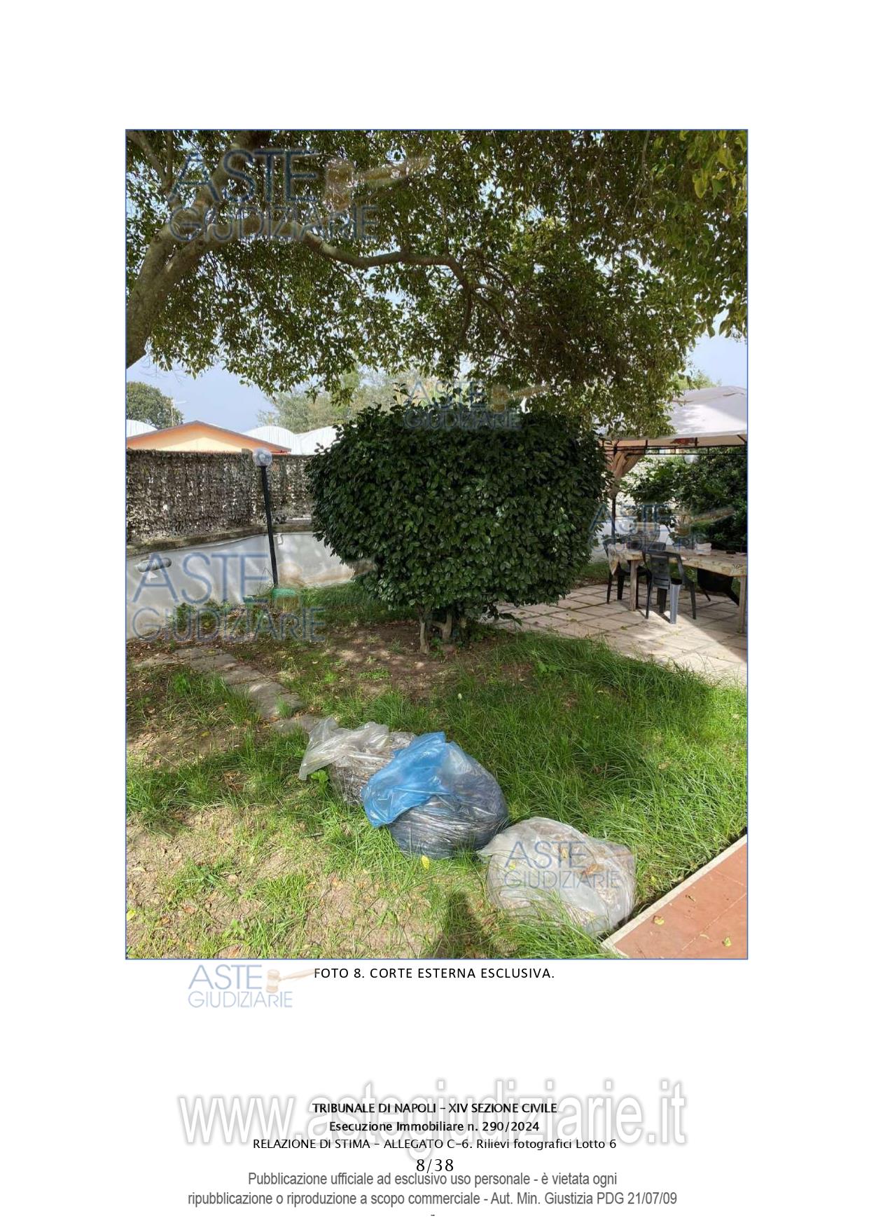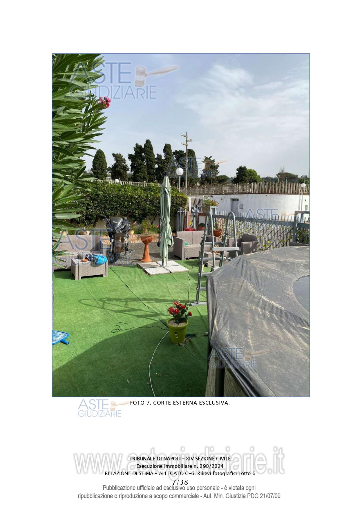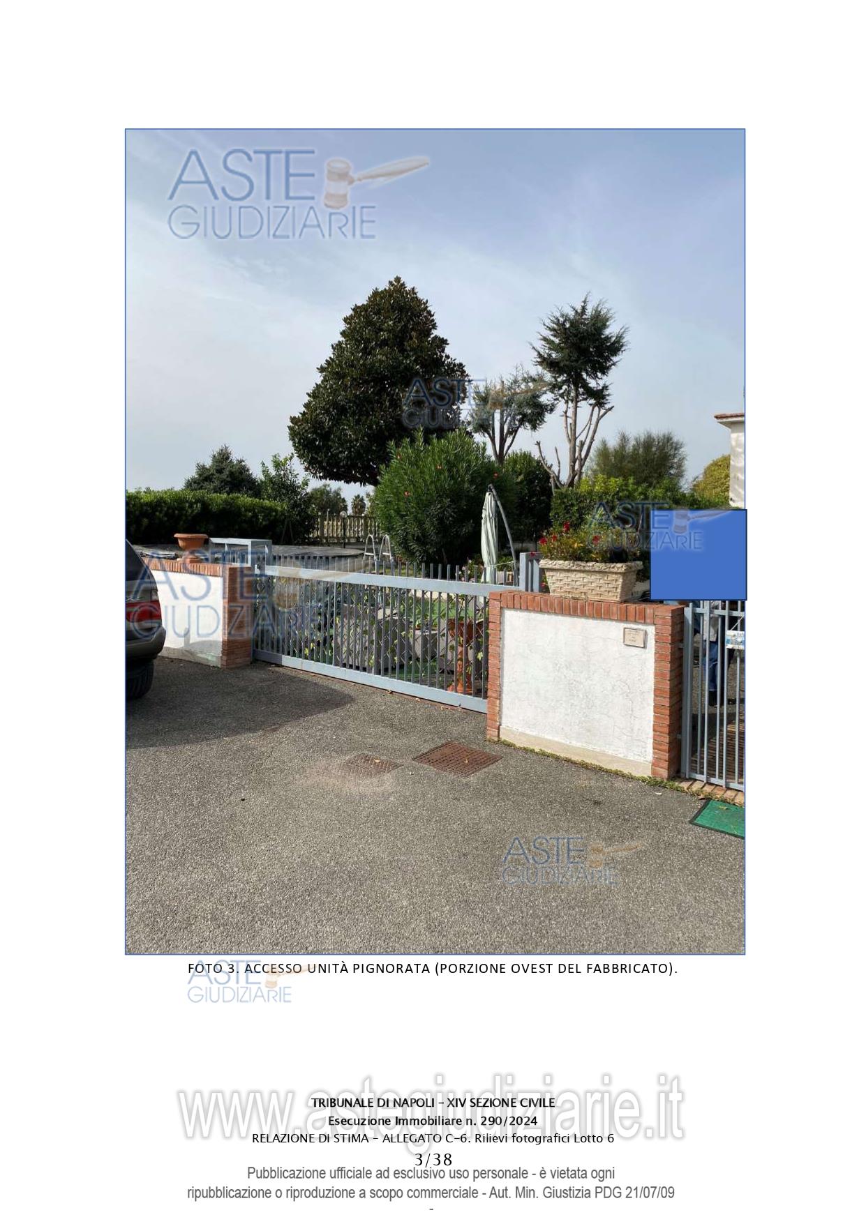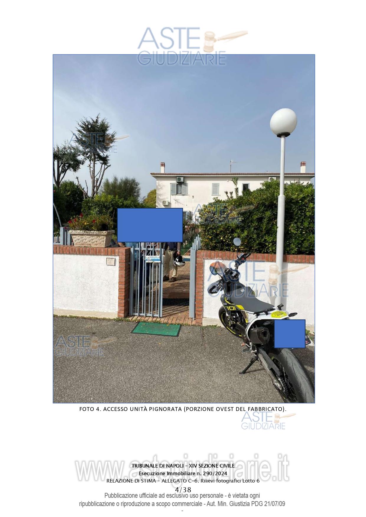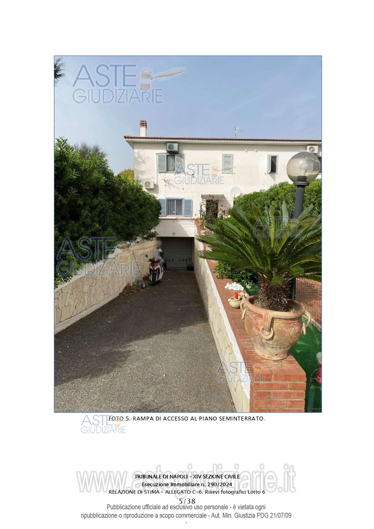 Vendita all'asta Senza incanto, con gara telematica asincrona - LOTTO 6: Abitazione in villino della consistenza di 343 mq commerciali. Prezzo base € 442.000,00 (offerta minima € 331.500,00). Data inizio operazioni di vendita: 31/03/2026 ore 16:00. Giudice Dott. Miriam Valenti. Professionista delegato alla vendita Dott. Salvatore Bonagura - Email "studiobonagura@libero.it"; Cell. 3286530845; Tel. 0815518985. Custode Giudiziario Dott. Salvatore Bonagura - Email "studiobonagura@libero.it"; Cell. 3286530845; Tel. 0815518985. Rif. Tribunale di Napoli - Espropriazione immobiliare (cartabia) n. 290/2024