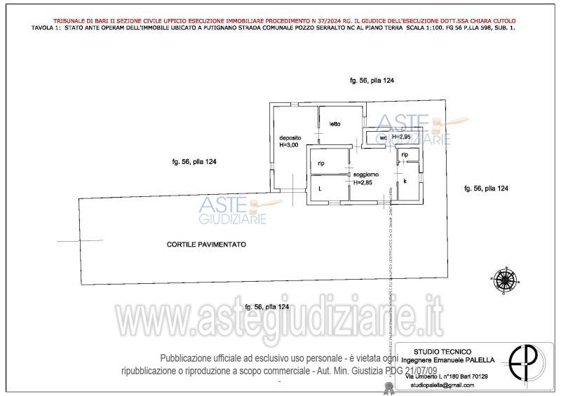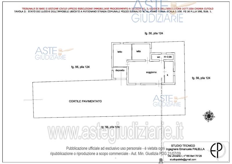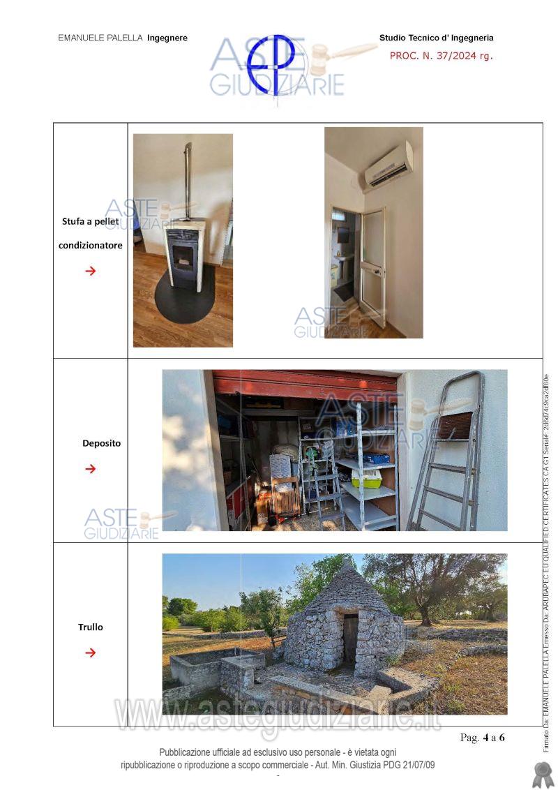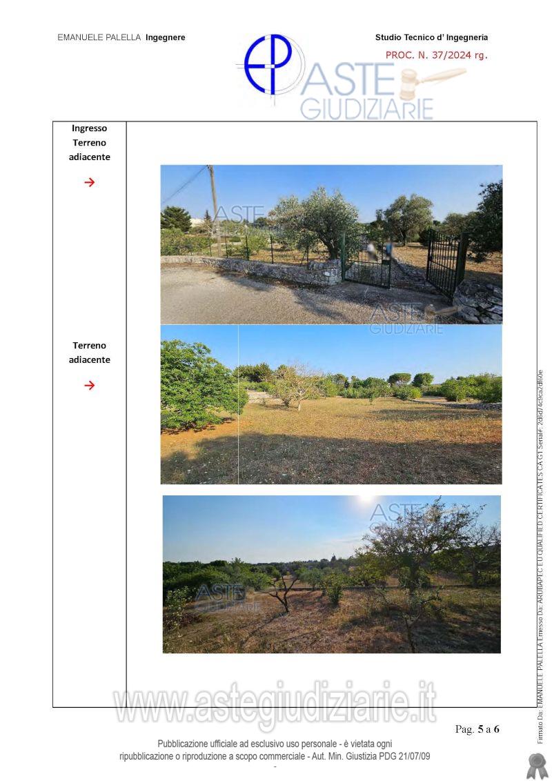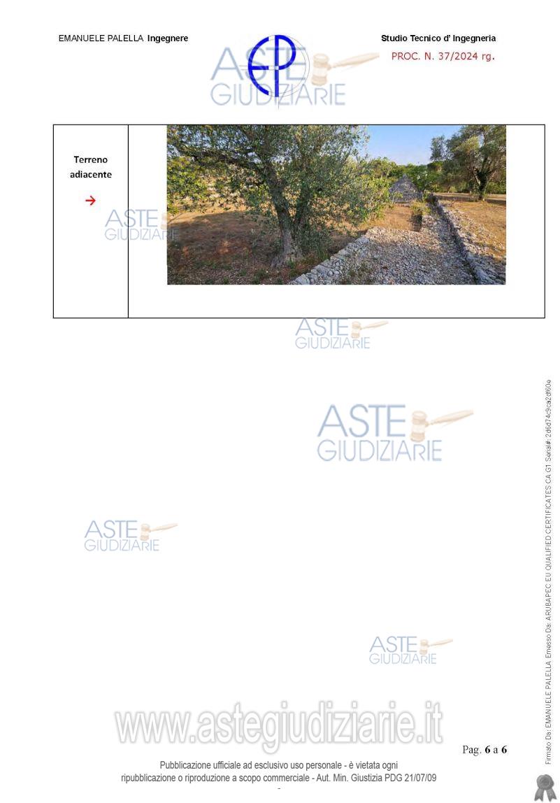 Vendita in attesa dell'emissione del nuovo bando d'asta. LOTTO UNICO: Piena proprietà di villetta composta da un corpo di fabbrica principale adibito ad abitazione costituito da ingresso nel soggiorno pranzo, un cucinino, 2 camere da letto, 1 bagno principale ed 1 deposito con accesso dall'esterno, oltre terreno adiacente. Ultimo prezzo base € 138.815,50 (offerta minima € 104.112,00). Giudice Dott. Chiara Cutolo. Professionista delegato alla vendita Avv. Giovanni Chimienti - Email "avv.giovannichimienti@hotmail.it"; Tel. 3205304612. Custode Giudiziario Avv. Giovanni Chimienti - Email "avv.giovannichimienti@hotmail.it"; Tel. 3205304612. Rif. Tribunale di Bari - Espropriazione immobiliare (cartabia) n. 37/2024