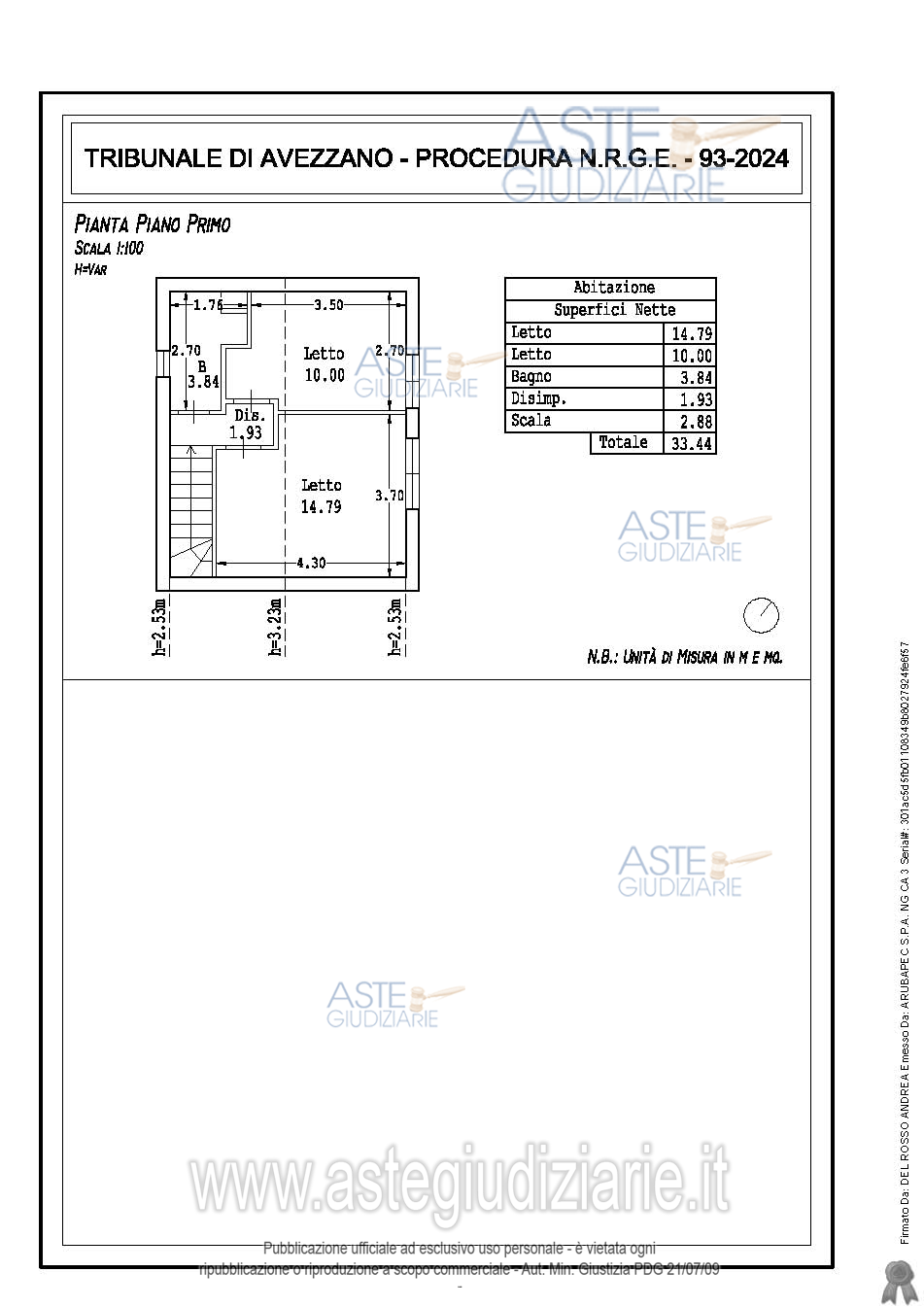Vendita all'asta Senza incanto, con gara telematica asincrona - LOTTO UNICO: Villetta. Prezzo base € 53.332,13 (offerta minima € 39.999,10). Data inizio operazioni di vendita: 15/04/2026 ore 17:00. Professionista delegato alla vendita Avv. Gabriele Catarinacci - Email "avvcatarinacci@yahoo.it"; Tel. 0863413727. Custode Giudiziario Avv. Gabriele Catarinacci - Email "avvcatarinacci@yahoo.it"; Tel. 0863413727. Rif. Tribunale di Avezzano - Espropriazione immobiliare (cartabia) n. 93/2024