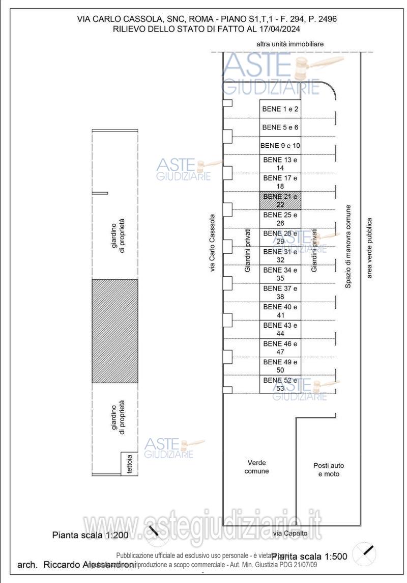 Vendita all'asta Senza incanto, con gara telematica asincrona - LOTTO 6: Villetta ubicata a Roma (RM) - Via Carlo Cassola snc, interno 6, piano S1 - T – 1 svilluppantesi su 3 livelli. Con annessi due giardini di proprietà (giardino anteriore e posteriore). Con Garage interno 6, piano S1; Posto auto interno 6, piano T; Posto moto o bici interno A, piano T. Il tutto per una superficie convenzionale complessiva di mq. 102,81 circa (Villetta e giardino); mq. 7,75 circa (garage); mq. 2,60 circa (posto auto); 0,80 circa (posto moto o bici). Prezzo base € 112.640,00 (offerta minima € 84.480,00). Data inizio operazioni di vendita: 26/03/2026 ore 10:00. Giudice Iappelli. Professionista delegato alla vendita Avv. Roberto Tartaglia - Tel. 068082749. Custode Giudiziario Ivg Di Roma Srl - Email "pvp@visiteivgroma.it"; Tel. 0689569801. Rif. Tribunale di Roma - Espropriazione immobiliare (cartabia) n. 747/2023