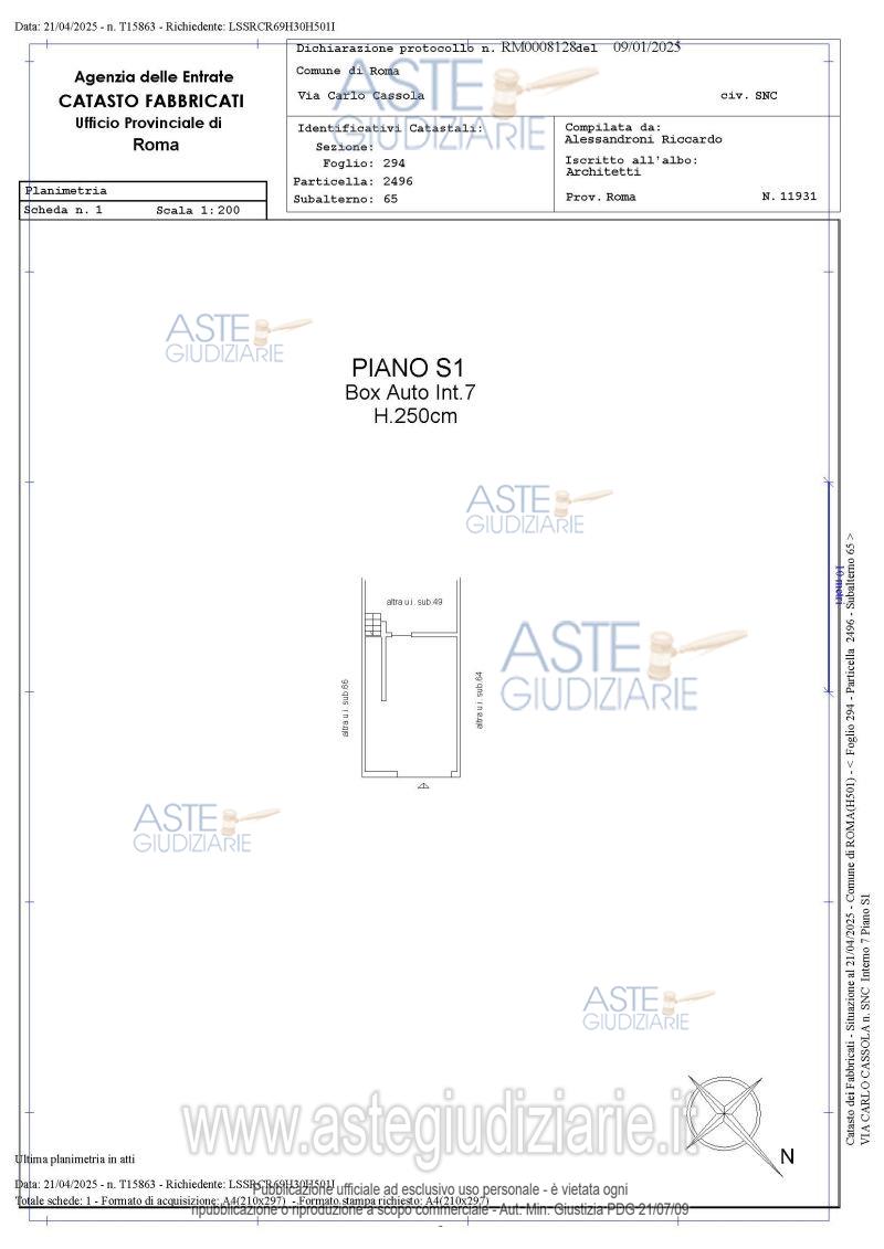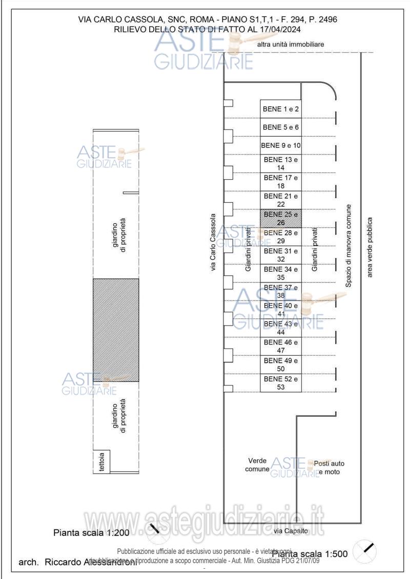 Vendita all'asta Senza incanto, con gara telematica asincrona - LOTTO 7: Villetta ubicata a Roma (RM) - Via Carlo Cassola snc, interno 7, piano S1 - T – 1 sviluppantesi su tre livelli. Con annessi due giardini di proprietà (giardino anteriore e posteriore). Con Garage interno 7, piano S1; Posto auto interno 5, piano T. Il tutto per una superficie convenzionale complessiva di mq. 102,81 circa (Villetta e giardino); mq. 7,75 circa (garage); mq. 2,60 circa (posto auto). Prezzo base € 111.360,00 (offerta minima € 83.520,00). Data inizio operazioni di vendita: 26/03/2026 ore 10:00. Giudice Iappelli. Professionista delegato alla vendita Avv. Roberto Tartaglia - Tel. 068082749. Custode Giudiziario Ivg Di Roma Srl - Email "pvp@visiteivgroma.it"; Tel. 0689569801. Rif. Tribunale di Roma - Espropriazione immobiliare (cartabia) n. 747/2023