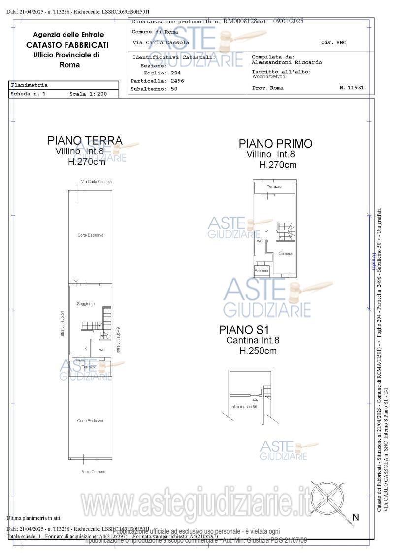 Vendita all'asta Senza incanto, con gara telematica asincrona - LOTTO 8: Villetta ubicata a Roma (RM) - Via Carlo Cassola snc, interno 8, piano S1 - T – 1 sviluppantesi su 3 livelli. Con annessi due giardini di proprietà (giardino anteriore e posteriore). Con Garage interno 8, piano S1 e Posto auto interno 4, piano T. Il tutto per una superficie convenzionale complessiva di mq. 102,81 circa (Villetta e giardino); mq. 7,75 circa (garage); mq. 2,60 circa (posto auto). Prezzo base € 111.360,00 (offerta minima € 83.520,00). Data inizio operazioni di vendita: 26/03/2026 ore 10:00. Giudice Iappelli. Professionista delegato alla vendita Avv. Roberto Tartaglia - Tel. 068082749. Custode Giudiziario Ivg Di Roma Srl - Email "pvp@visiteivgroma.it"; Tel. 0689569801. Rif. Tribunale di Roma - Espropriazione immobiliare (cartabia) n. 747/2023