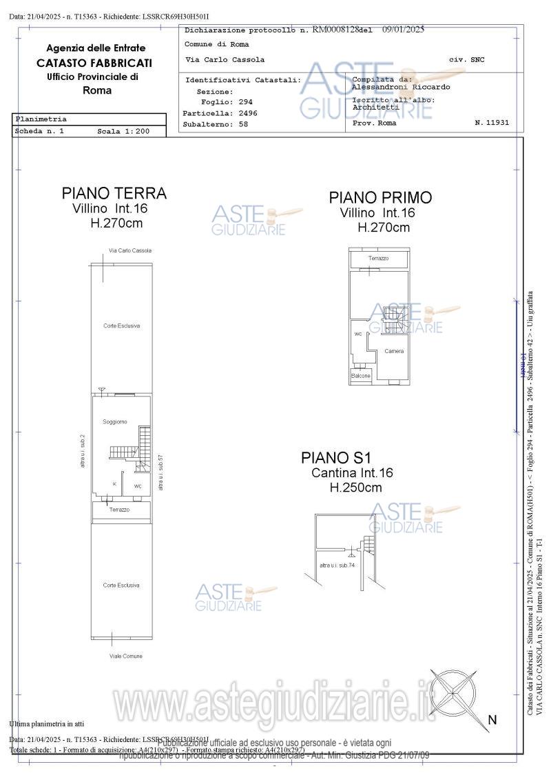 Vendita all'asta Senza incanto, con gara telematica asincrona - LOTTO 16: Villetta ubicata a Roma (rm) - via Carlo Cassola snc, interno 16, piano s1 - t – 1 sviluppantesi su 3 livelli, con annessi due giardini di proprietà (giardino anteriore e posteriore). Con Garage interno 16, piano S1 e Posto auto interno 12, piano T. Il tutto per una superficie convenzionale complessiva di mq. 102,81 circa (Villetta e giardino); mq. 7,75 circa (garage); mq. 2,60 circa (posto auto). Prezzo base € 111.360,00 (offerta minima € 83.520,00). Data inizio operazioni di vendita: 26/03/2026 ore 10:00. Giudice Iappelli. Professionista delegato alla vendita Avv. Roberto Tartaglia - Tel. 068082749. Custode Giudiziario Ivg Di Roma Srl - Email "pvp@visiteivgroma.it"; Tel. 0689569801. Rif. Tribunale di Roma - Espropriazione immobiliare (cartabia) n. 747/2023