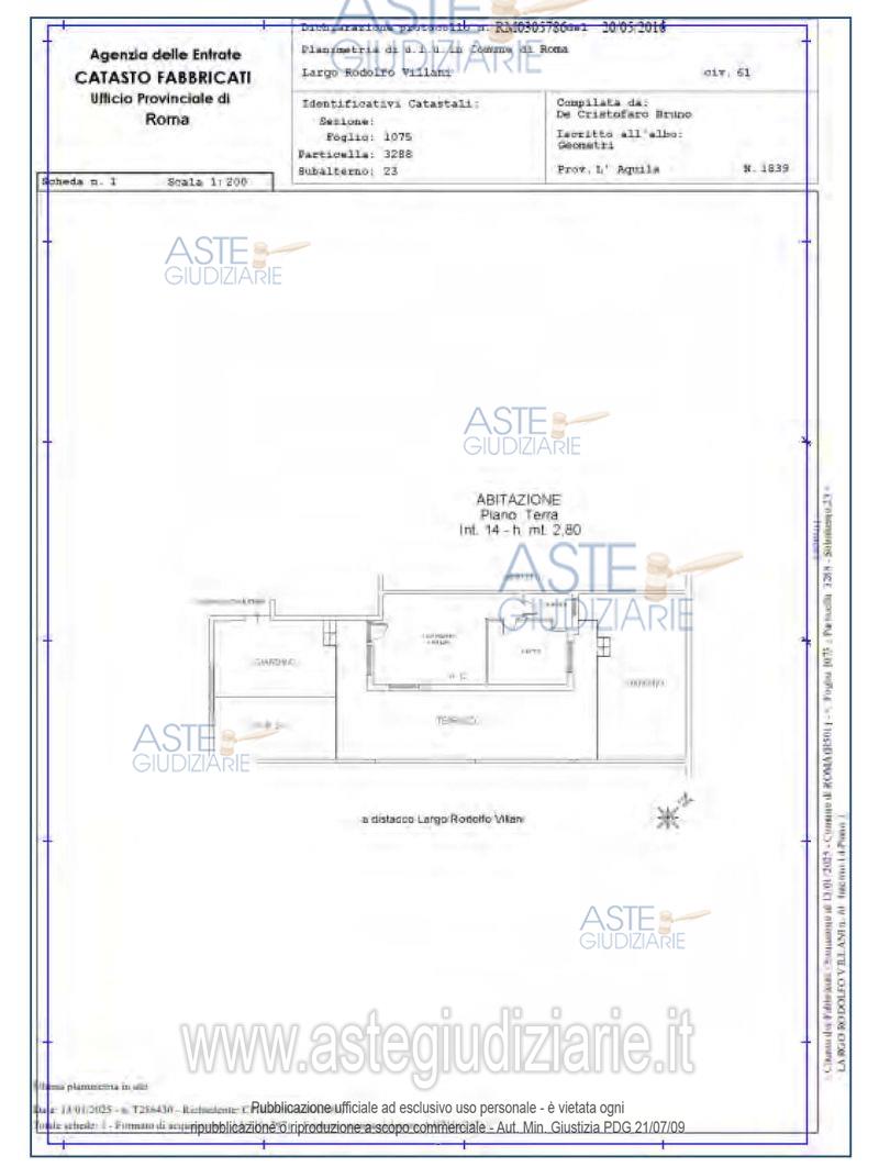 Vendita all'asta Senza incanto, con gara telematica asincrona - LOTTO 1: Propriété pleine et parfaite du compendium immobilier composé d'un appartement en rangée avec deux places de parking attenantes, situé à Acilia, dans la municipalité X, avec accès depuis Largo Rodolfo Villani n. 61, et plus précisément :