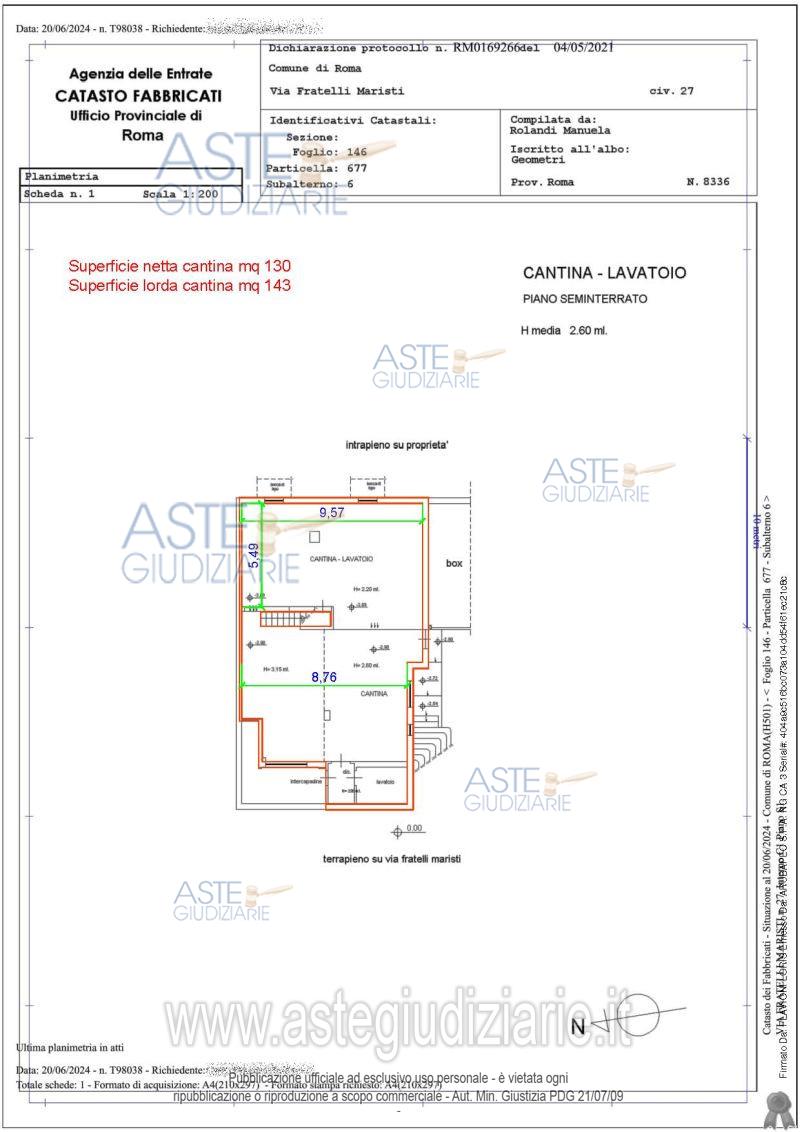Vendita all'asta Senza incanto, con gara telematica asincrona - LOTTO UNICO: Quota pari ad 1/1 del diritto di piena proprietà sui seguenti immobili siti in Roma (RM), Via Fratelli Maristi n. 25-27, interno C1: porzione di villino bifamiliare, ai piani T-1, con ampia corte pertinenziale, in parte pavimentata con piscina ed in parte a verde, locale cantina e box auto al piano S1. Prezzo base € 570.000,00 (offerta minima € 427.500,00). Data inizio operazioni di vendita: 08/01/2026 ore 14:00. Giudice Dott. Giuseppe Lauropoli. Professionista delegato alla vendita Avv. Letizia Sdrubolini. Custode Giudiziario Ivg Di Roma Srl - Email "pvp@visiteivgroma.it"; Tel. 0689569801. Rif. Tribunale di Roma - Espropriazione immobiliare (cartabia) n. 44/2024