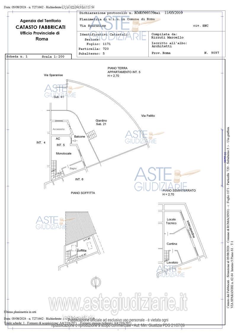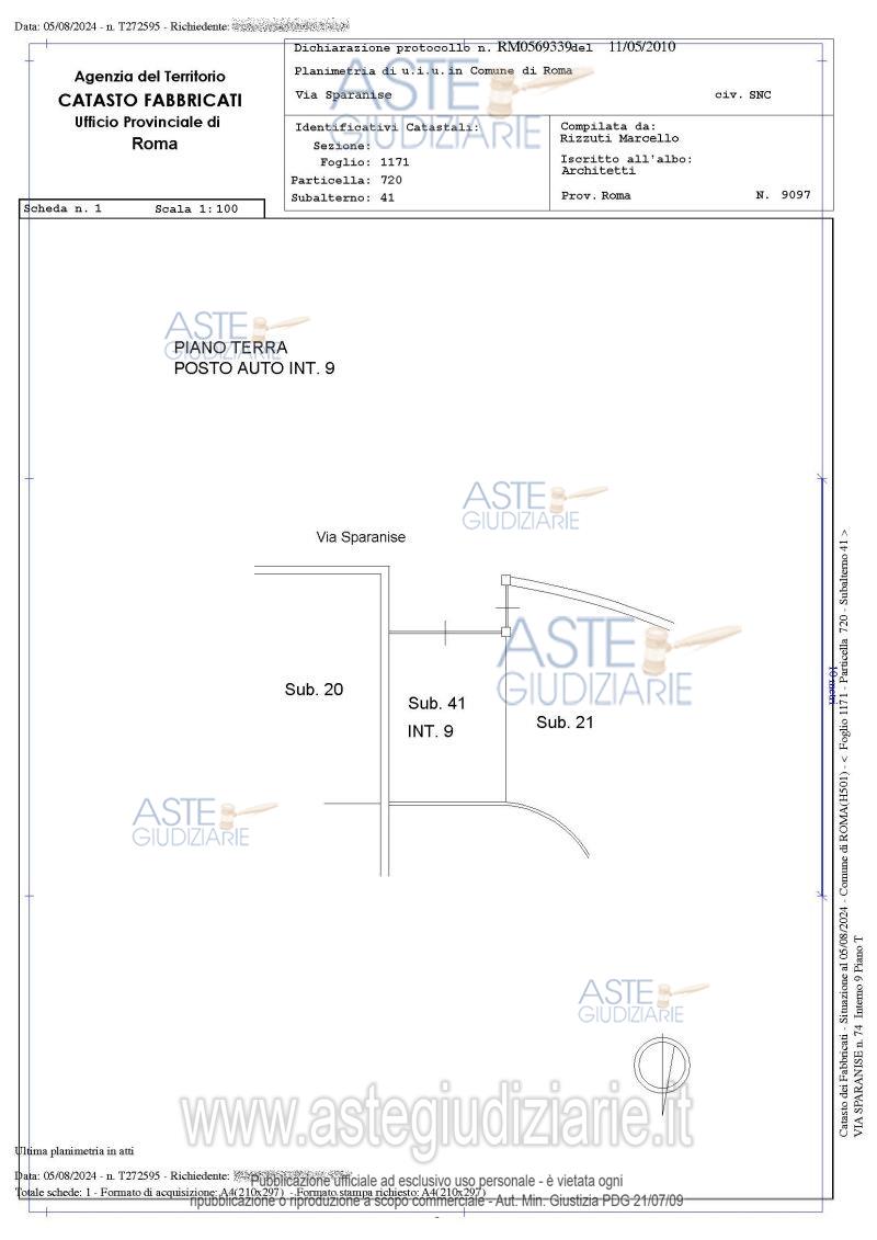 Vendita all'asta Senza incanto, con gara telematica asincrona - LOTTO UNICO: Quota 1/1 piena proprietà Villa in Roma, Via Sparanise 62-64, su tre piani (S1, T e 1) per circa mq 120 complessivi, con posto auto. Prezzo base € 183.000,00 (offerta minima € 137.250,00). Data inizio operazioni di vendita: 03/02/2026 ore 15:00. Giudice Dott. Fernando Scolaro. Professionista delegato alla vendita Dott. Andrea Russo. Custode Giudiziario Ivg Di Roma S.R.L. - Email "pvp@visiteivgroma.it"; Tel. 0689569801. Rif. Tribunale di Roma - Espropriazione immobiliare (cartabia) n. 1007/2023