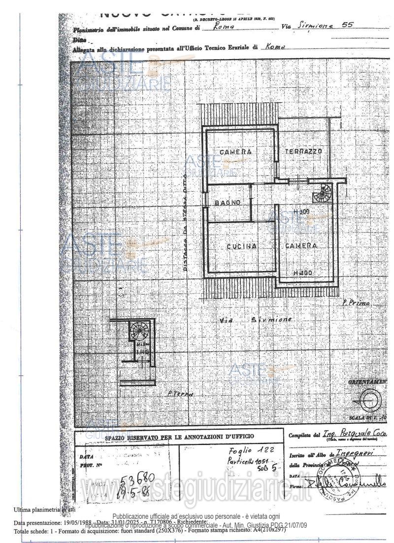 Vendita all'asta Senza incanto, con gara telematica asincrona - LOTTO 1: Quota pari a 1/1 del diritto di piena proprietà su appartamento posto al primo piano sotto il tetto di copertura a falde inclinate della palazzina sita in Via Sirmione n. 55 a Roma, quartiere Labaro, con accesso tramite una scala da un piccolo vano ubicato al piano terra. L'appartamento, della superficie convenzionale di 87,58 mq, è composto da un disimpegno, due camere da letto, una cucina, un bagno ed un terrazzo che affaccia in direzione est con vista sul Tevere. Prezzo base € 102.000,00 (offerta minima € 76.500,00). Data inizio operazioni di vendita: 23/04/2026 ore 14:00. Giudice Federica D'ambrosio. Professionista delegato alla vendita Avv. Elisa Serrao. Custode Giudiziario Ivg Di Roma Srl - Email "INFO@IVGROMA.IT"; Tel. 0683751500. Rif. Tribunale di Roma - Espropriazione immobiliare (cartabia) n. 1089/2024
