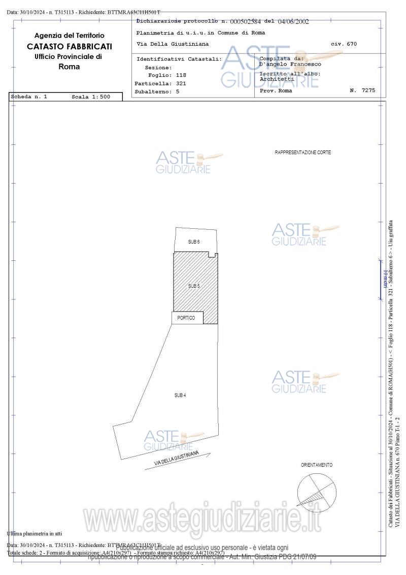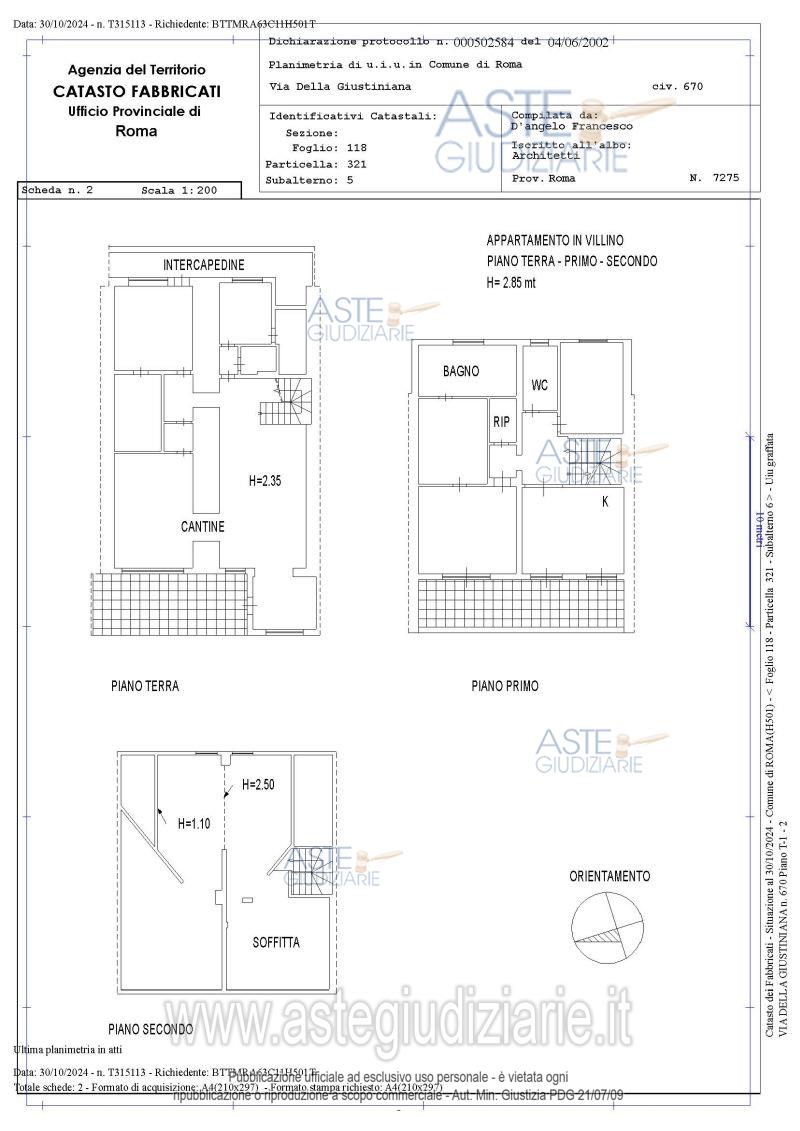 Vendita all'asta Senza incanto, con gara telematica asincrona - LOTTO UNICO: Quota pari a 1/1. del diritto di piena proprietà su villetta cielo terra sita in Roma – Via della Giustiniana 670 H, piano terra -1-sottotetto, oltre corte esclusiva per complessivi mq. 307,38. Prezzo base € 590.000,00 (offerta minima € 442.500,00). Data inizio operazioni di vendita: 09/07/2026 ore 11:00. Giudice Dott. Raffaele Russo. Professionista delegato alla vendita Avv. Massimo Capuano. Custode Giudiziario Ivg Di Roma Srl Procissi - Email "pvp@visiteivgroma.it"; Tel. 0689569801. Rif. Tribunale di Roma - Esecuzione immobiliare post legge 80 n. 572/2022