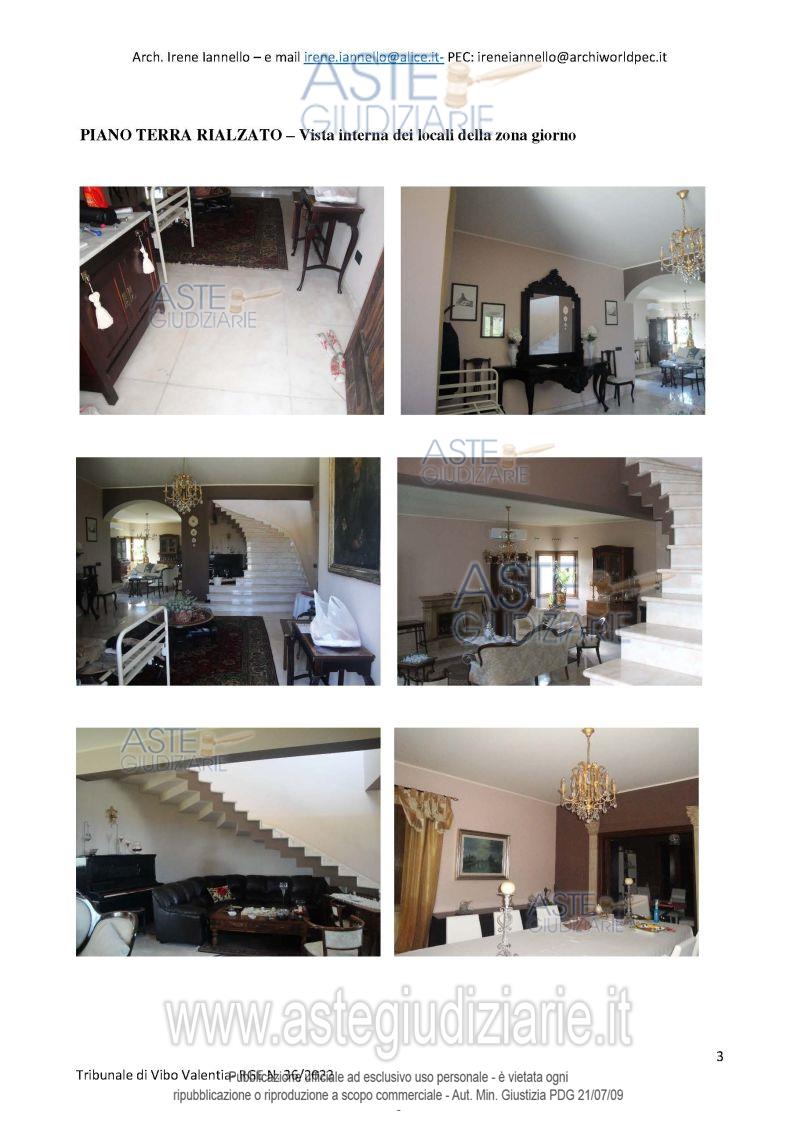 Vendita all'asta Senza incanto, con gara telematica sincrona mista - LOTTO UNICO: 1/1 di ABITAZIONE IN VILLINO CON CIRCOSTANTE AREA LIBERA SCOPERTA PERTINENZIALE cat. A/7, cl. U, 14 vani, mq. 383 escluso aree scoperte mq 363, Piano T-1-2-;. Prezzo base € 298.496,25 (offerta minima € 223.872,19). Data vendita 29/04/2026 ore 15:30. Giudice Dott. Giulia Orefice. Professionista delegato alla vendita Avv. Alfredo Dagostino - Email "alfredo.dagostino.j@gmail.com"; Tel. 3291339225. Custode Giudiziario Avv. Alfredo Dagostino - Email "alfredo.dagostino.j@gmail.com"; Tel. 3291339225. Rif. Tribunale di Vibo Valentia - Contenzioso civile n. 1331/2024