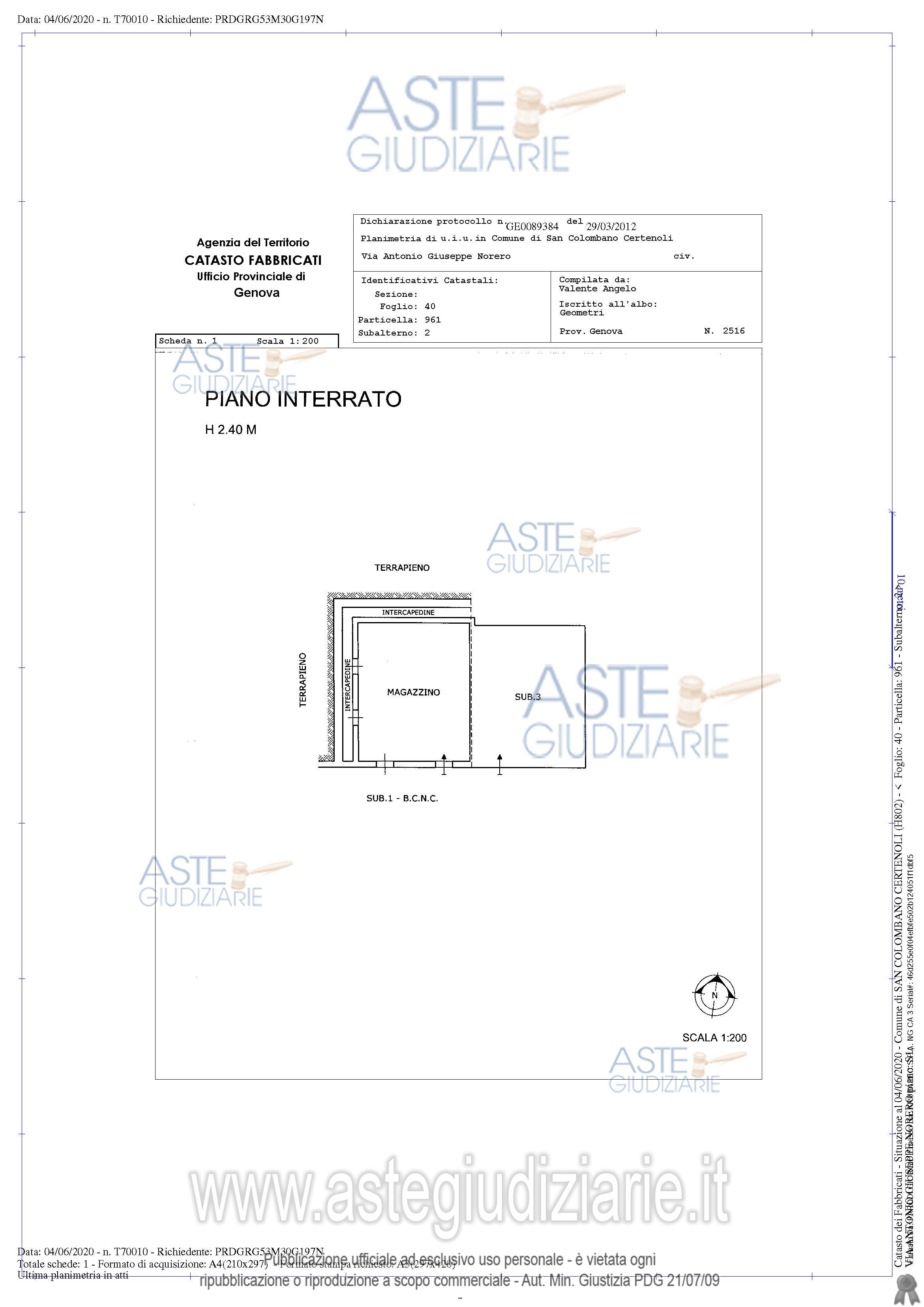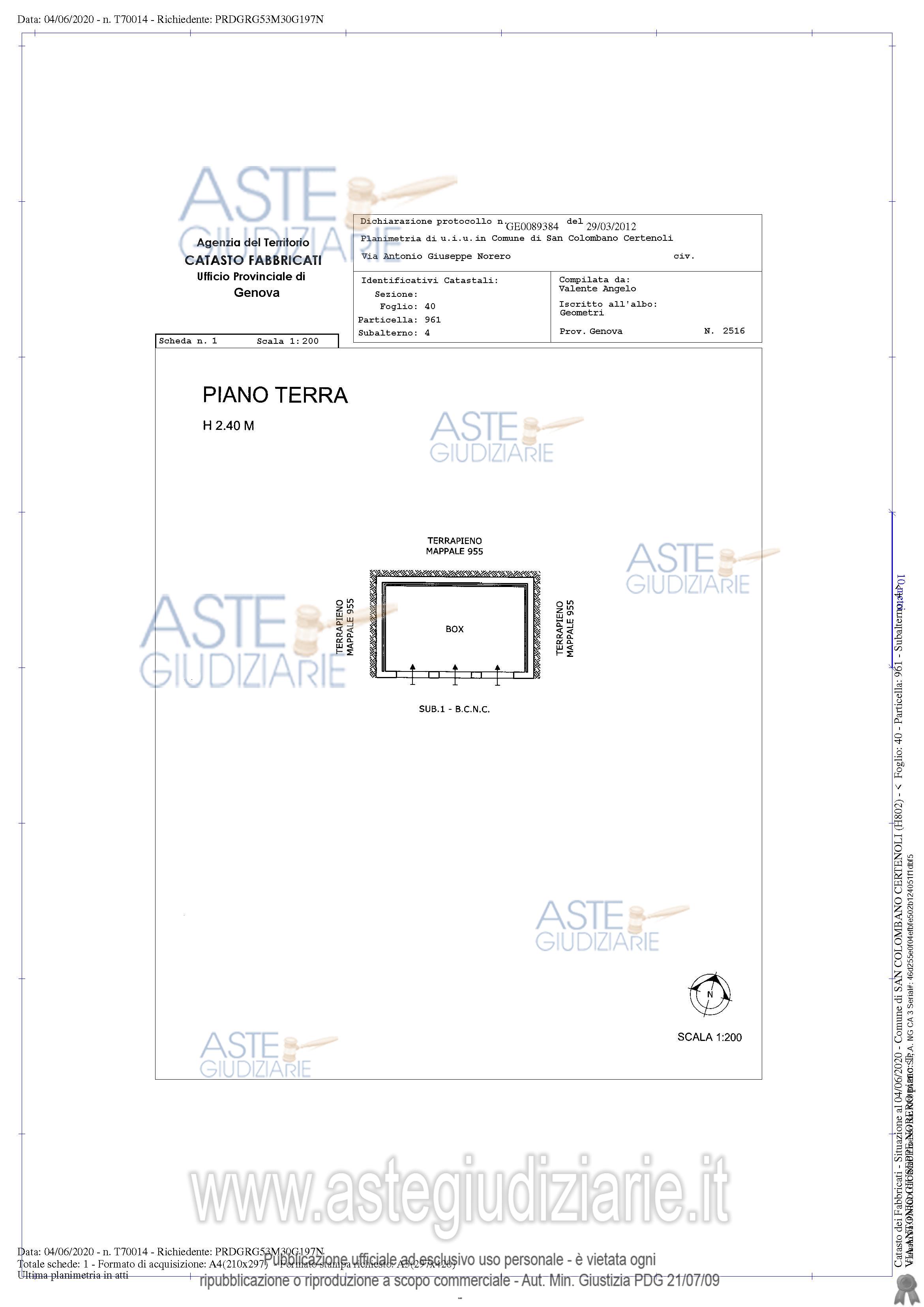 Vendita all'asta Senza incanto, con gara telematica sincrona mista - LOTTO 1: Abitazione in villino con annesse pertinenze (magazzino ed autorimessa) circondata da area verde sistemata a terrazza e giardino, accessibile tramite vialetto carrabile collegato alla strada pubblica e terreni circostanti e non. Prezzo base € 182.979,00 (offerta minima € 137.235,00). Data vendita 17/12/2025 ore 13:30. Professionista delegato alla vendita Rag. Roberto Adamo - Email "procedure@studioadamoroberto.it"; Cell. 3429871846; Tel. 0185313451. Custode Giudiziario Dott. Sovemo Srl - Email "immobiliare@sovemo.com"; Tel. 0105299253. Rif. Tribunale di Genova - Esecuzione immobiliare post legge 80 n. 537/2019