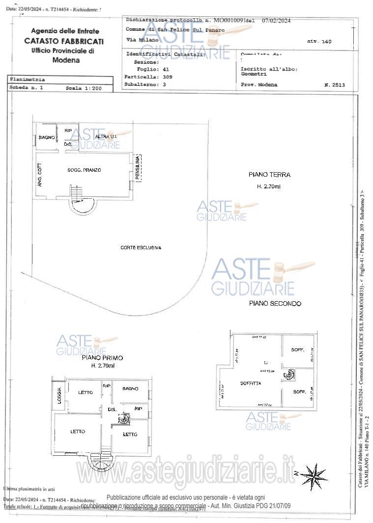 Vendita all'asta Senza incanto, con gara telematica asincrona - LOTTO UNICO: Piena proprietà su porzioni immobiliari in San Felice sul Panaro,via Milano140 costituite da:abitazione composta al PT da soggiorno pranzo angolo cottura, bagno, disimpegno, ripostiglio;al piano1,disimpegno,bagno,3camere,ripostigli,scala interna di collegamento al sottotetto e loggia;al piano2-sottotetto,locali soffitta;autorimessa al PT;oltre area di pertinenza e proporzionali diritti di comproprietà sulle parti comuni come per legge.Il tutto identificato al CF al foglio41,mappale309,sub3(A/7)e sub.4(C/6). Prezzo base € 186.000,00 (offerta minima € 139.500,00). Data inizio operazioni di vendita: 08/01/2026 ore 15:00. Professionista delegato alla vendita Avv. Guido Giusti - Email "guidogiusti@giustiassociati.it"; Tel. 059222115. Custode Giudiziario Alex Manelli - Email "visiteimmobili@ivgmodena.it"; Tel. 059847301. Rif. Tribunale di Modena - Espropriazione immobiliare (cartabia) n. 184/2023