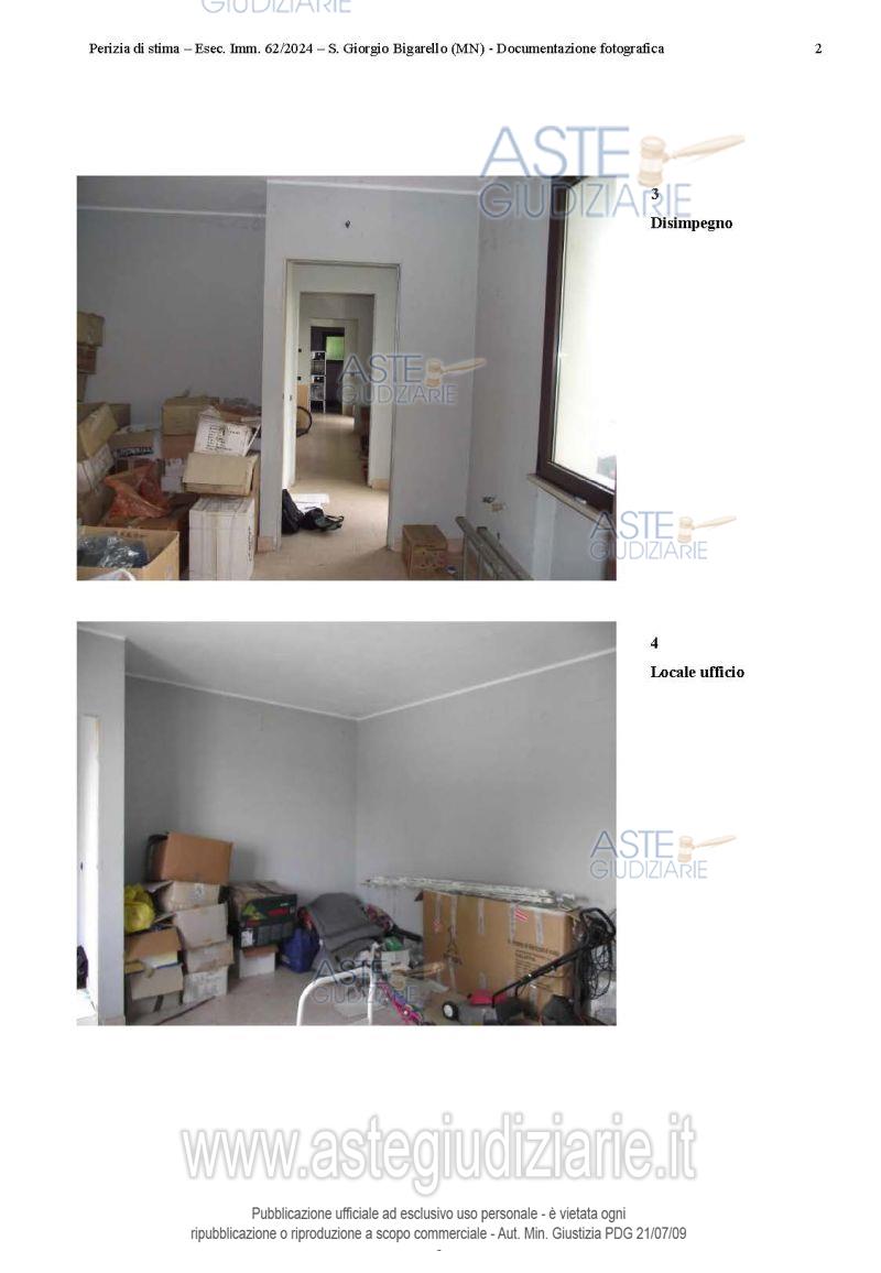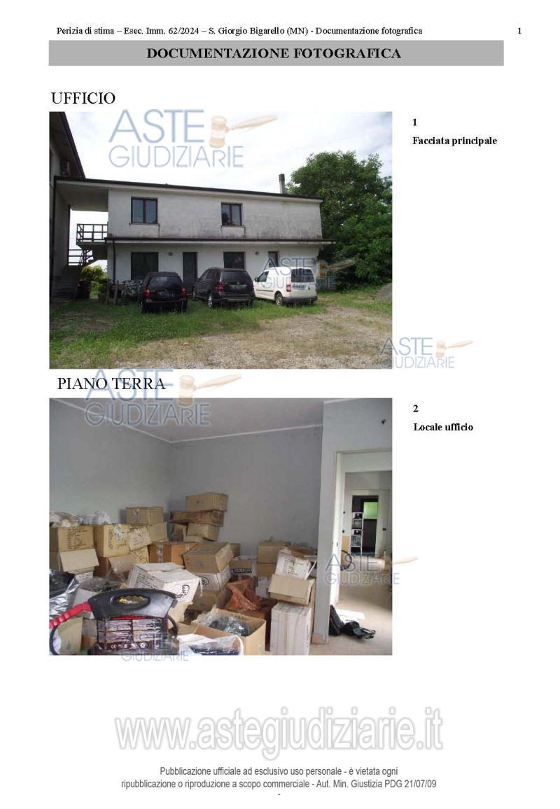 Vendita all'asta Senza incanto, con gara telematica sincrona mista - LOTTO UNICO: Lotto unico costituito da: Bene 1 - ufficio al piano terra composto da 2 locali, disimpegno, spogliatoio, camera e bagno, oltre a rustico al primo piano; Bene 2 - autorimessa composta da un unico locale al piano terra; Bene 3 – autorimessa con centrale termica e ripostiglio al piano seminterrato; Bene 4 - Villetta costituita al piano terra da soggiorno, cucina, e bagno e al primo piano da disimpegno, due camere da letto matrim., due bagni ed un ripostiglio, con area cortiva di pertinenza. Prezzo base € 140.515,00 (offerta minima € 105.386,00). Data vendita 17/12/2025 ore 11:00. Professionista delegato alla vendita Dott. Arianna Poltronieri - Email "arianna.poltronieri@gmail.com"; Cell. 3394537679; Tel. 3394537679. Custode Giudiziario Ivg Mantova - So.Ve.Mo Srl - Email "immobiliaremantova@sovemo.com"; Tel. 0376220694. Rif. Tribunale di Mantova - Espropriazione immobiliare (cartabia) n. 62/2024