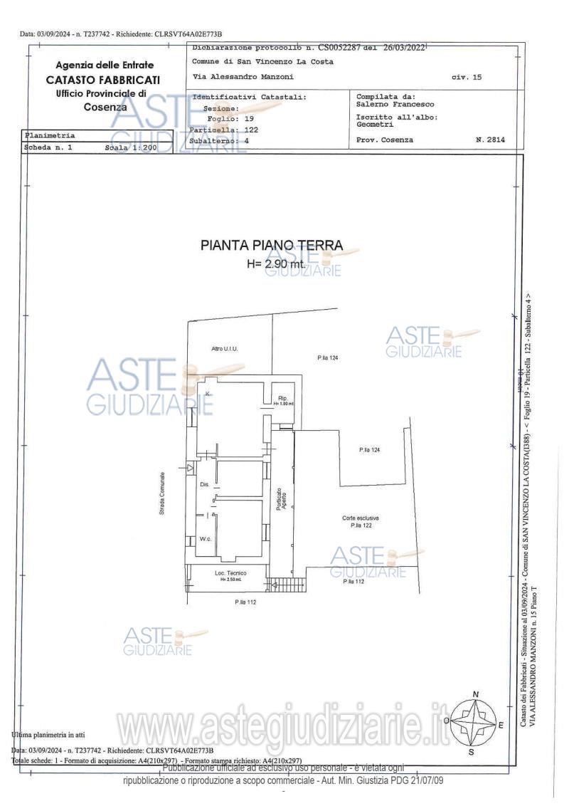 Vendita all'asta Senza incanto, con gara telematica sincrona mista - LOTTO 2: In catasto fabbricati, al 03 escluse mq 301 di aree scoperte - occupato. Meglio descritto nella consulenza estimativa in atti, che deve essere consultata dall’offerente ed alla quale si fa espresso rinvio anche per tutto ciò che concerne l’esistenza di eventuali oneri e pesi a qualsiasi titolo gravanti sui beni e per ciò che concerne le indicazioni relative alla normativa urbanistica. Prezzo base € 202.000,00 (offerta minima € 151.500,00). Data vendita 02/07/2026 ore 10:30. Giudice Dott. Giuseppe Sicilia. Professionista delegato alla vendita Rag. Francesco Campisi - Email "campisi.francesco67@gmail.com"; Tel. 3389831911. Custode Giudiziario Rag. Francesco Campisi - Email "campisi.francesco67@gmail.com"; Tel. 3389831911. Rif. Tribunale di Cosenza - Espropriazione immobiliare (cartabia) n. 82/2024
