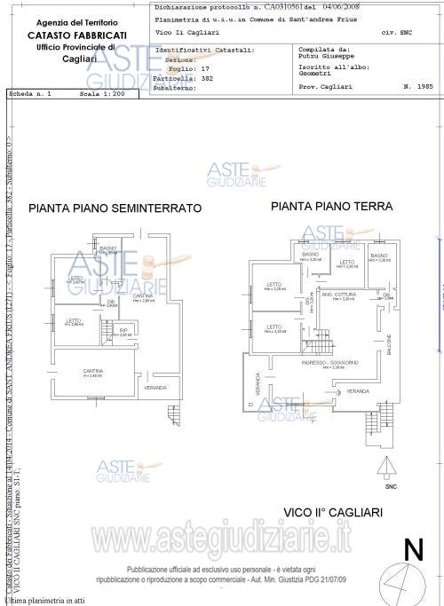 Vendita all'asta Senza incanto, con gara telematica asincrona - LOTTO UNICO: In Comune di Sant’Andrea Frius: Piena proprietà di fabbricato per civile abitazione avente accesso dal Vico II Cagliari n.11 composto al piano seminterrato/terra da due camere, bagno, due cantine, ; al piano primo da bagno, ingresso soggiorno con angolo cottura, tre camere, un bagno. Prezzo base € 112.800,00 (offerta minima € 84.600,00). Data inizio operazioni di vendita: 13/05/2026 ore 09:00. Giudice Valentina Frongia. Professionista delegato alla vendita Not. Giovanni Gorini - Email "ufficiouniconotai@pec.it"; Tel. 07060222574. Custode Giudiziario Ivg Cagliari - Email "ivg.visiteimmobili@tiscali.it"; Tel. 0702299036. Rif. Tribunale di Cagliari - Esecuzione immobiliare post legge 80 n. 9/2012