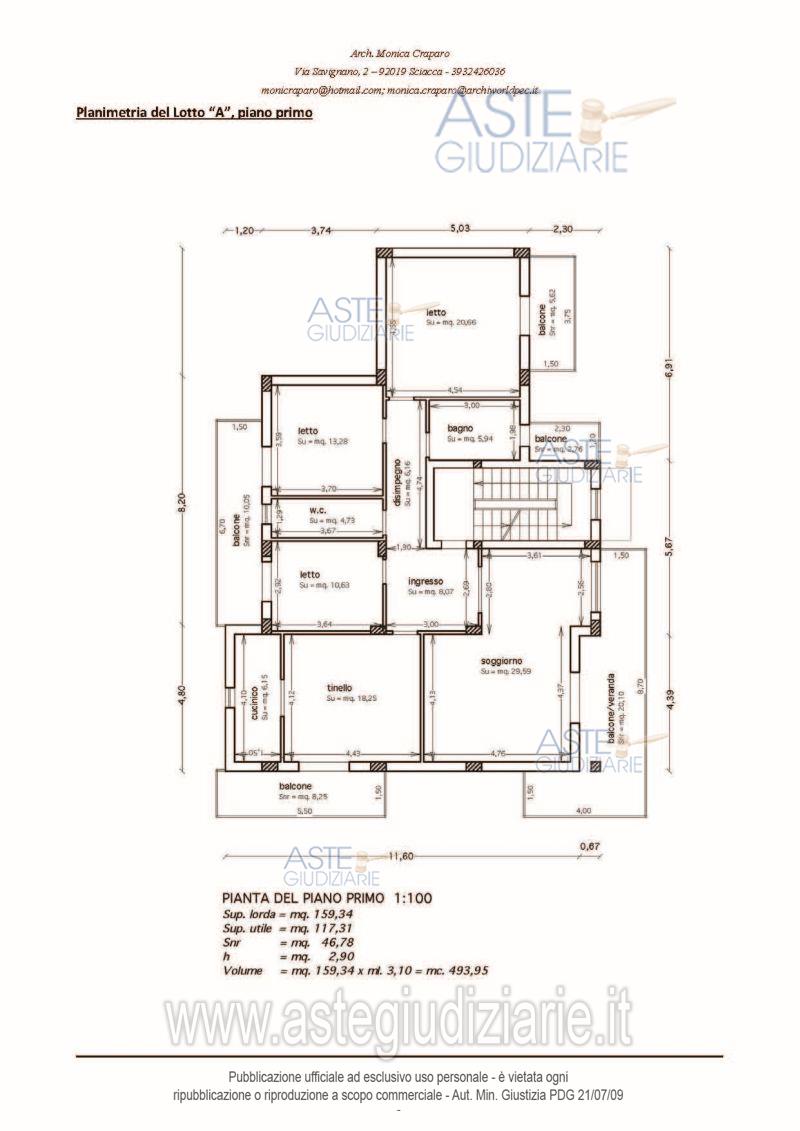 Vendita in attesa dell'emissione del nuovo bando d'asta. LOTTO 1: P. P. imm uso Abitazione in Sciacca (AG) Via Basilicata, snc, cat cens Fg 138, part 183, sub. 9 e 11, P.T. e I - Categoria: A/7 (Abitazioni in villini) Classe: 3 Cons cat: 7 vani Superficie catastale: 170 m2 (Tot escl aree scoperte 154 m2) R. C. € 632,66. La predetta ha a disp la metà dell’app di terreno su cui insiste l’int imm che è pari ad 835 mq; dunque la sup est di pert del Lotto A risulta mq 417,50 (835,00/2). Non vi è A.P.E. Risulta vuoto ad eccezione di alcuni beni mobili del debitore. Ultimo prezzo base € 70.800,00 (offerta minima € 53.100,00). Giudice Veronica Messana. Professionista delegato alla vendita Avv. Maria Rita Stassi - Email "mariaritastassi@gmail.com"; Cell. 3287512709. Custode Giudiziario Avv. Maria Rita Stassi - Email "mariaritastassi@gmail.com"; Cell. 3287512709. Rif. Tribunale di Sciacca - Esecuzione immobiliare post legge 80 n. 25/2018