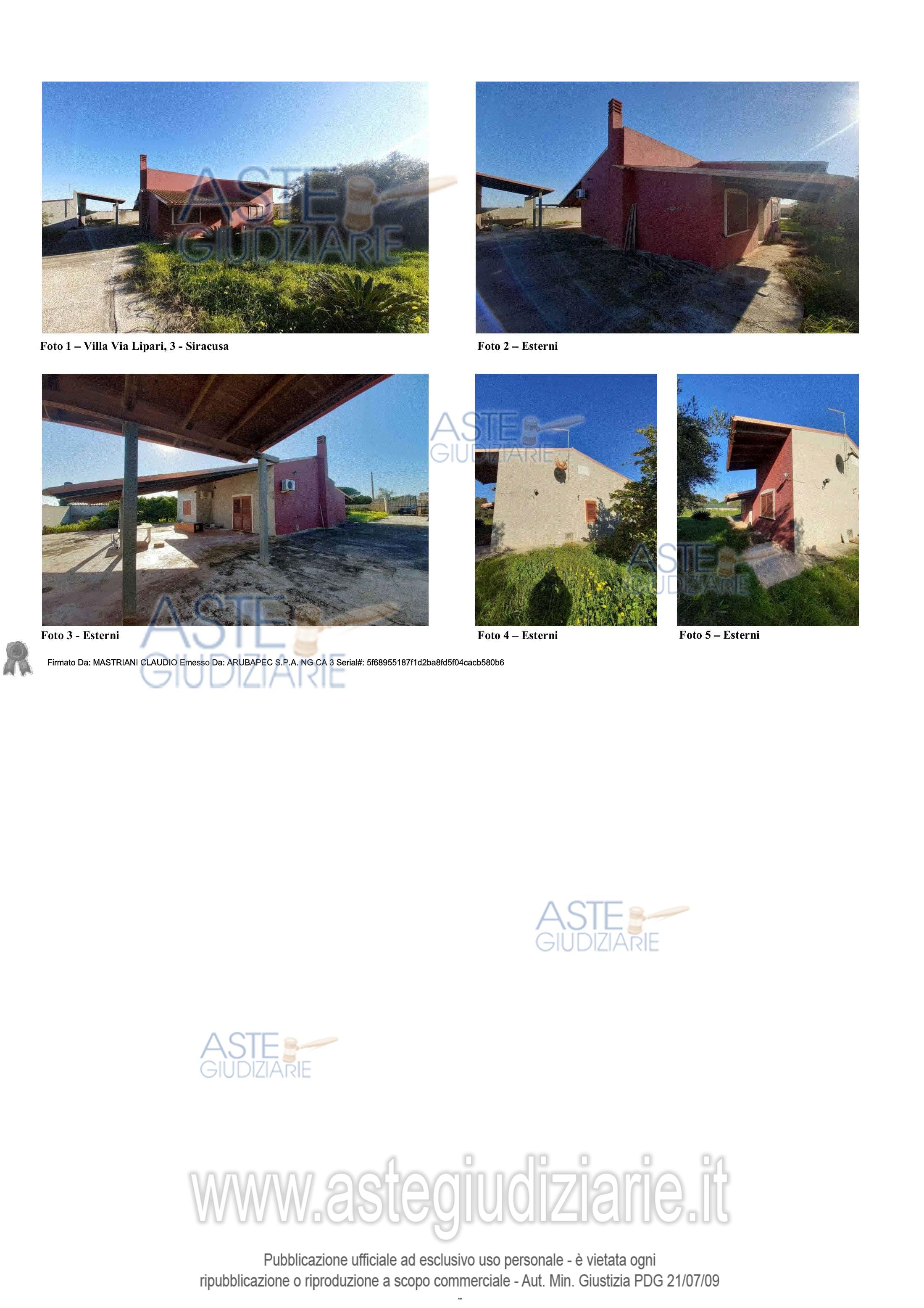 Vendita all'asta Senza incanto, con gara telematica sincrona mista - LOTTO UNICO: Piena ed intera proprietà di villino in Siracusa, Via Lipari n. 3, con annesso terreno di pertinenza di 1.096 mq, in N.C.E.U. al foglio 162, p.lla 684, cat. A/7, cl. 3, consistenza vani 4, superficie catastale totale mq 79-totale escluse aree scoperte mq 73, R.C. € 526,79, via Santa Teresa piano T, Classe Energetica “C”, giusta Attestato di Prestazione Energetica del 25/02/2022, a firma dell’esperto stimatore, Arch. Claudio Mastriani. Prezzo base € 67.879,69 (offerta minima € 50.909,77). Data vendita 24/03/2026 ore 11:00. Giudice Giuseppe Solarino. Professionista delegato alla vendita Avv. Paolo Munafò - Email "avv.paolomunafo@mbcg.it"; Cell. 3387429274; Tel. 09311562510. Custode Giudiziario Avv. Paolo Munafò - Email "avv.paolomunafo@mbcg.it"; Cell. 3387429274; Tel. 09311562510. Rif. Tribunale di Siracusa - Esecuzione immobiliare post legge 80 n. 304/2009