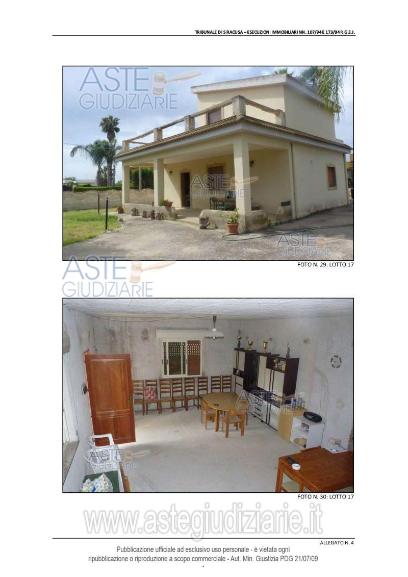 Vendita all'asta Senza incanto, con gara telematica sincrona mista - LOTTO 6: villino in Siracusa di mq 74 dotato di due verande coperte di mq 9,60 e 11,30 , tettoia esterna di mq 15 , locali deposito di mq 8 e con terreno di pertinenza di mq 580 avente accesso dal numero civico 28 di Via Isole Ellice identificato al foglio 146 p.lla 701 sub 2 Cat. A/7. Prezzo base € 60.000,00 (offerta minima € 45.000,00). Data vendita 19/12/2025 ore 10:00. Professionista delegato alla vendita Avv. Stella Messina - Email "stellamessina@alice.it"; Cell. 3397961479; Tel. 093168236. Custode Giudiziario Avv. Stella Messina - Email "stellamessina@alice.it"; Cell. 3397961479; Tel. 093168236. Rif. Tribunale di Siracusa - Esecuzione immobiliare post legge 80 n. 107/1994