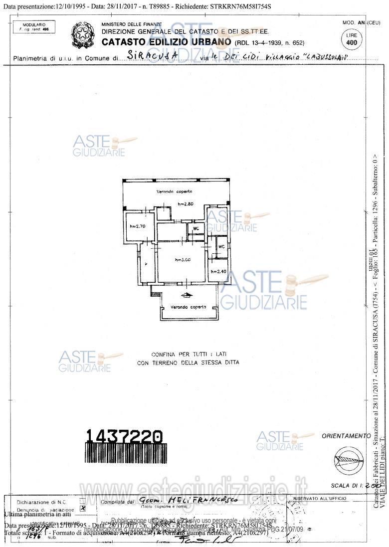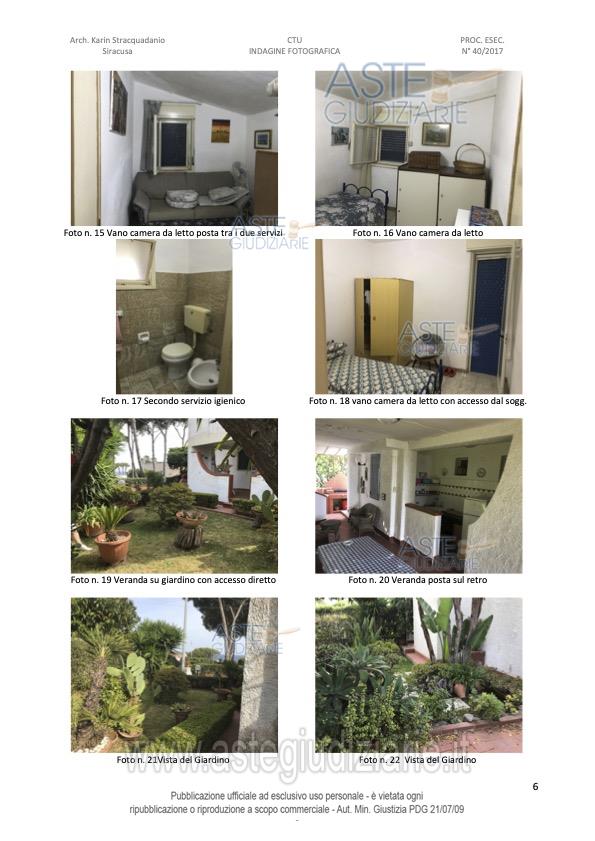 Vendita all'asta Senza incanto - LOTTO UNICO: Intera piena proprietà villetta in Siracusa, Viale Dei Lidi n. 433, p.t., is. 'P', int. 30, - all'interno del condominio 'La Bussola' -, su un unico livello per complessivi mq. 81,05 lordi su terreno di 204,21 mq., composta da cucina-soggiorno, n. 4 camere da letto, n. 2 bagni e n. 2 verande (di cui una attrezzata con angolo cottura), di complessivi 5 vani catastali ed accessori, con pertinenziale giardino ; in NCEU al Fg. 165, P.lla 1296, Cat. A/7, R.C. 610,71; confinante proprietà terzi e strada interna. Prezzo base € 191.900,00 (offerta minima € 143.925,00). Data vendita 28/05/2026 ore 12:00. Giudice Concita Cultrera. Professionista delegato alla vendita Avv. Danila Nunzia Gionfriddo - Email "avvdanilagionfriddo@gmail.com"; Cell. 368661357; Tel. 0931759818. Custode Giudiziario Avv. Danila Nunzia Gionfriddo - Email "avvdanilagionfriddo@gmail.com"; Cell. 368661357; Tel. 0931759818. Rif. Tribunale di Siracusa - Esecuzione immobiliare post legge 80 n. 40/2017