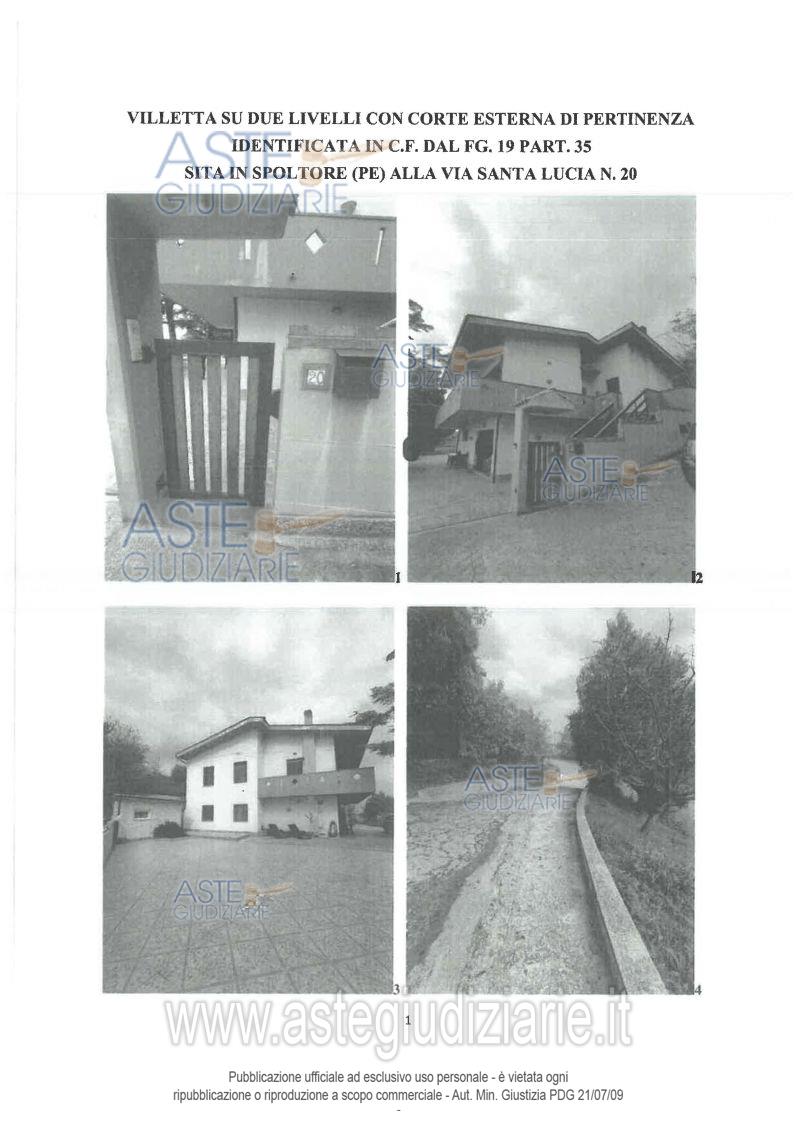 Vendita all'asta Senza incanto, con gara telematica asincrona - LOTTO UNICO: Villetta su due livelli con corte esterna di pertinenza ubicata in Spoltore (PE) alla via Santa Lucia n.20. Prezzo base € 196.721,35 (offerta minima € 147.541,01). Data inizio operazioni di vendita: 26/05/2026 ore 11:00. Giudice Anastasio Morelli. Professionista delegato alla vendita Avv. Arianna Maria Di Pietro. Custode Giudiziario Avv. Arianna Maria Di Pietro - Email "studiolegaledipietrolucchi@gmail.com"; Tel. 0859047864. Rif. Tribunale di Pescara - Espropriazione immobiliare (cartabia) n. 140/2024