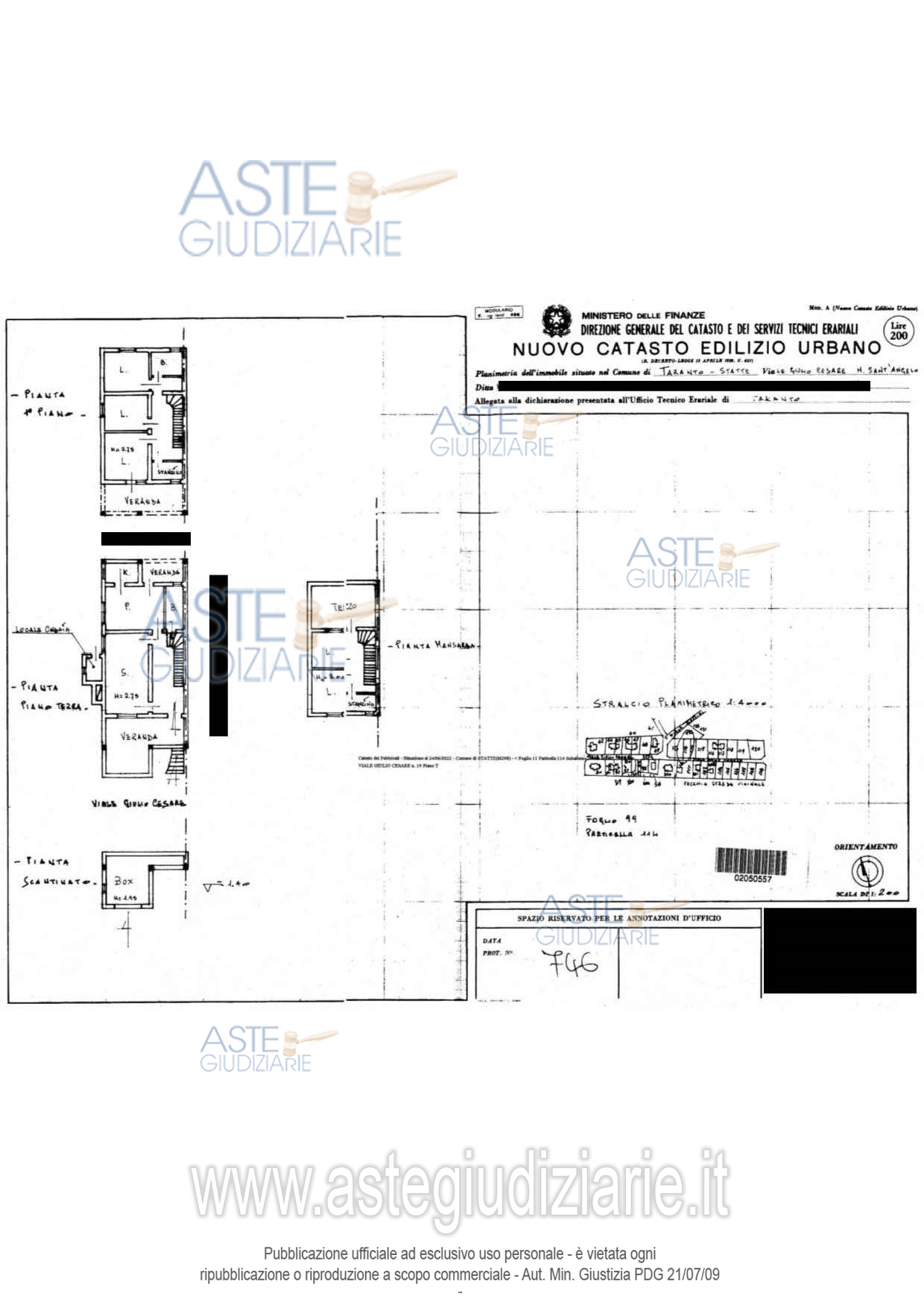 Vendita all'asta Senza incanto, con gara telematica asincrona - LOTTO UNICO: Piena ed esclusiva proprietà del villino disposto su più livelli collegati da una scala interna con un piano scantinato adibito a box auto; un piano rialzato adibito a zona giorno; un primo piano adibito a zona notte; una mansarda con terrazzino al secondo piano e giardino. Prezzo base € 251.000,00 (offerta minima € 188.250,00). Data inizio operazioni di vendita: 21/04/2026 ore 16:00. Giudice Andrea Paiano. Professionista delegato alla vendita Avv. Domenica Stigliano - Email "avv.dstigliano@gmail.com". Custode Giudiziario Avv. Domenica Stigliano - Email "avv.dstigliano@gmail.com"; Tel. 099373040. Rif. Tribunale di Taranto - Esecuzione immobiliare post legge 80 n. 288/2021