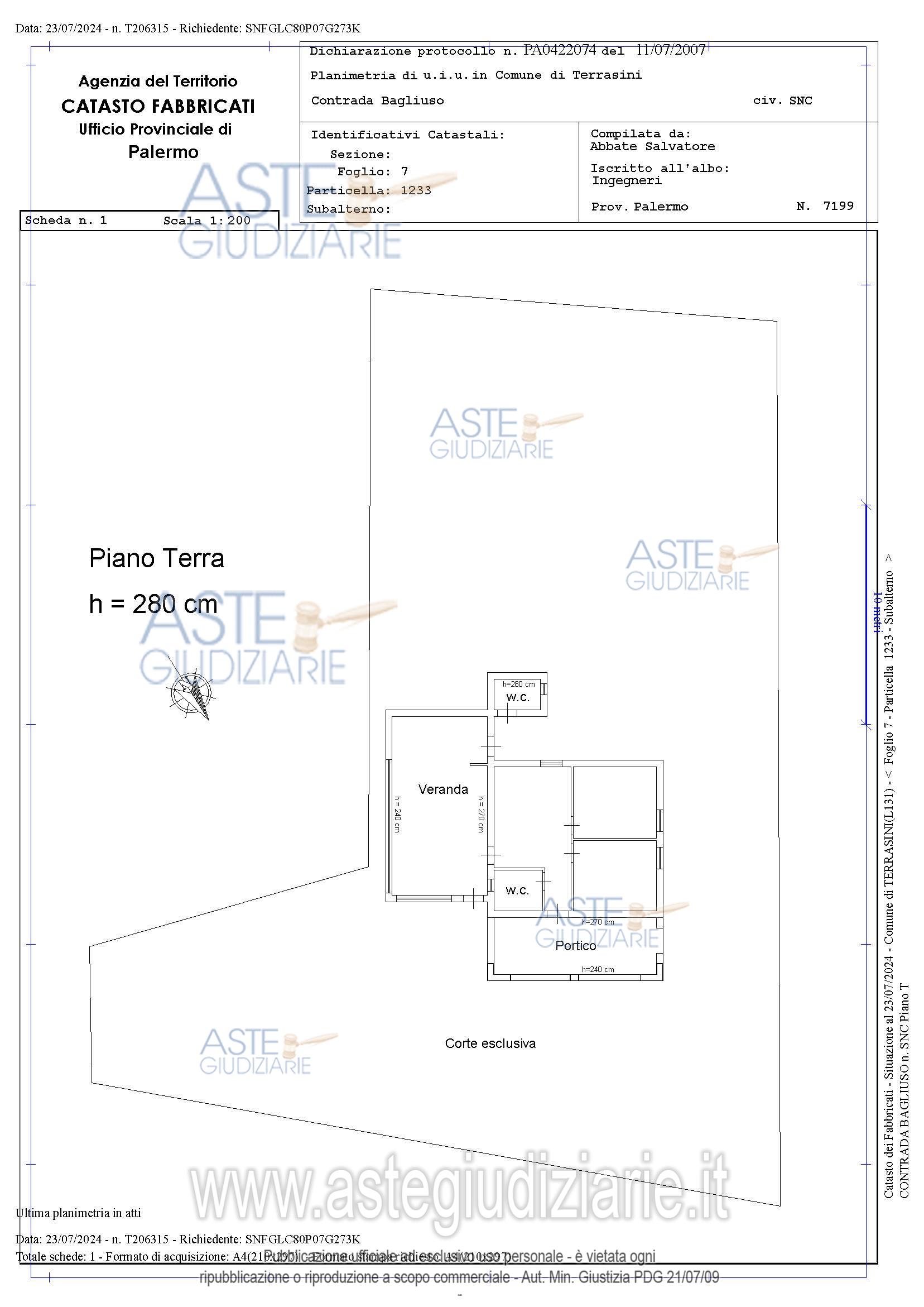 Vendita all'asta Senza incanto, con gara telematica sincrona mista - LOTTO UNICO: Valore d’uso dell’immobile di tipologia A/7 (abitazione in villini), ubicato nel Comune di Terrasini, in Contrada Frà Ludovico n.23 (ex Contrada Bagliuso).L’immobile è censito al Catasto Fabbricati del Comune di Terrasini al foglio 7, particella 1233, P.T., zona censuaria U, categoria A/7, classe 2, vani 5, superficie catastale mq 120, rendita catastale € 387,34. Prezzo base € 20.039,06 (offerta minima € 15.029,30). Data vendita 20/05/2026 ore 16:30. Professionista delegato alla vendita Avv. Marco Reina - Email "avvocatomarcoreina@gmail.com"; Cell. 3891440507; Tel. 091364000. Custode Giudiziario Avv. Marco Reina - Email "avvocatomarcoreina@gmail.com"; Cell. 3891440507; Tel. 091364000. Rif. Tribunale di Palermo - Espropriazione immobiliare (cartabia) n. 290/2023
